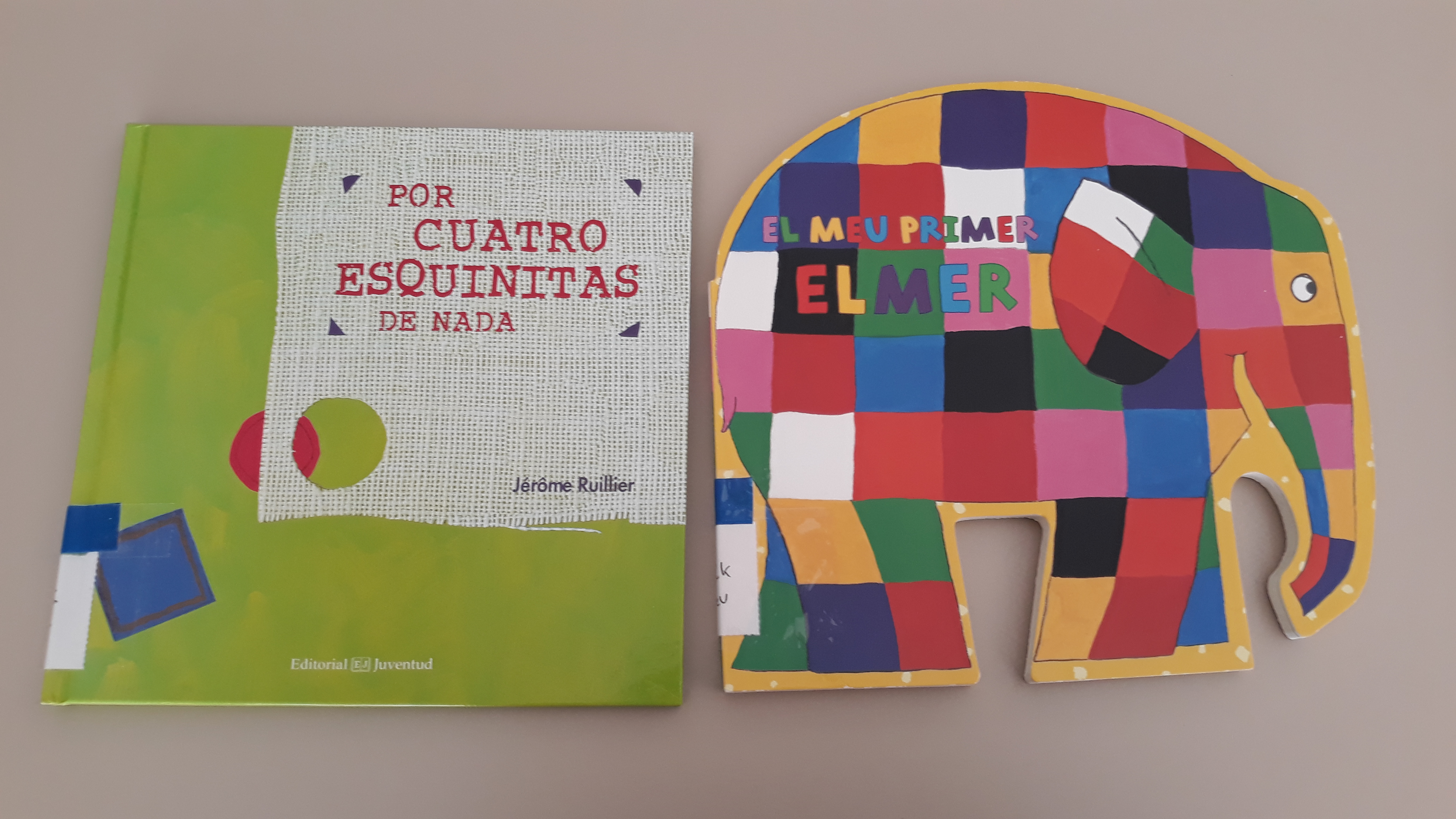 - De 4 a 6 años: Por cuatro esquinitas de nada, de Jérôme Ruillier, y El meu primer Elmer, de David McKee (clic aquí para ver fotografía).