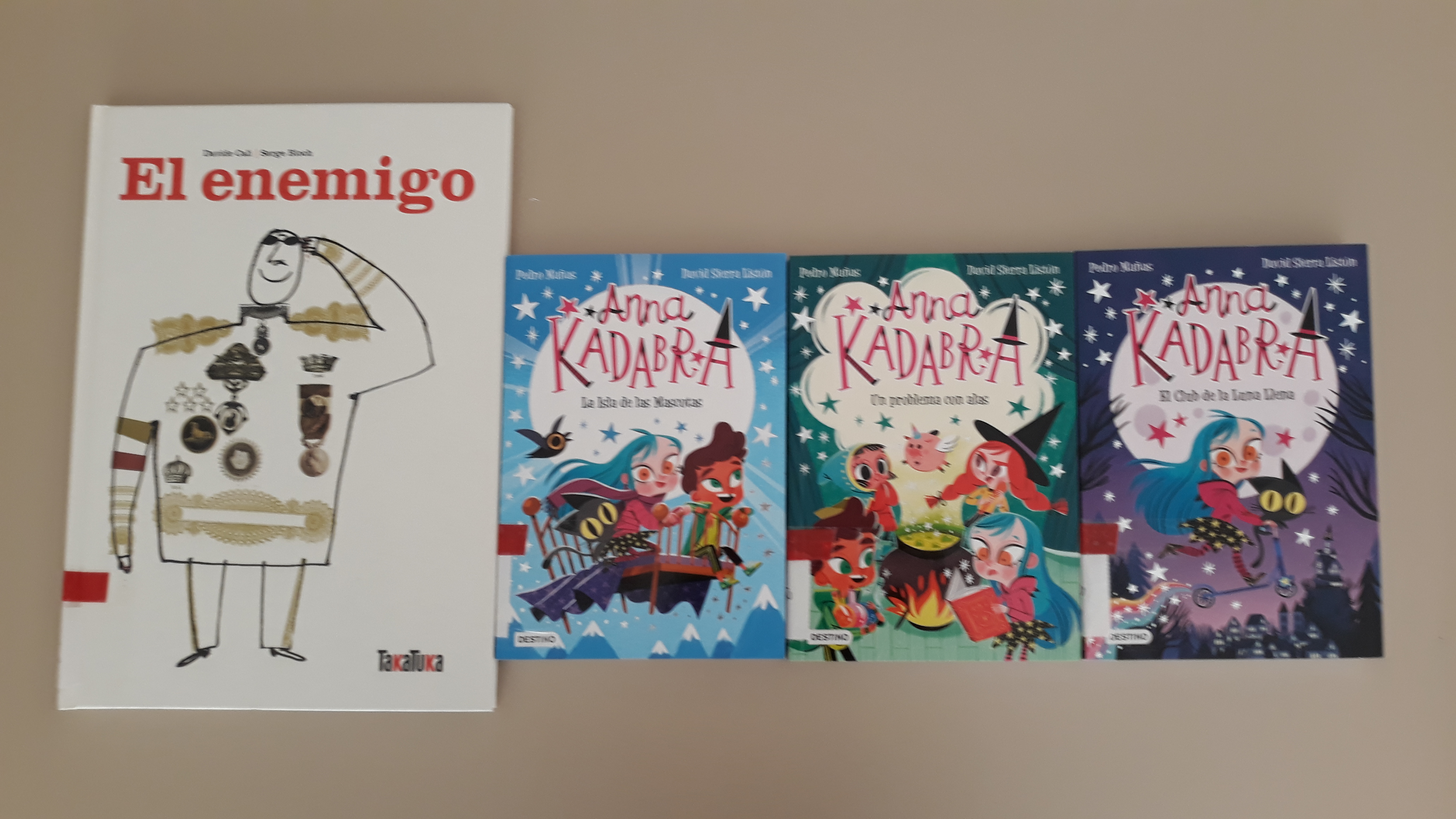 - De 7 a 10 años: El enemigo, de Davide Cali y Serge Bloch, y tres nuevos ejemplares de la colección Anna Kadabra, de Pedro Mañas y David Sierra, titulados La Isla de las Mascotas, Un problema con alas y El Club de la Luna Llena (clic aquí para ver fotografía).