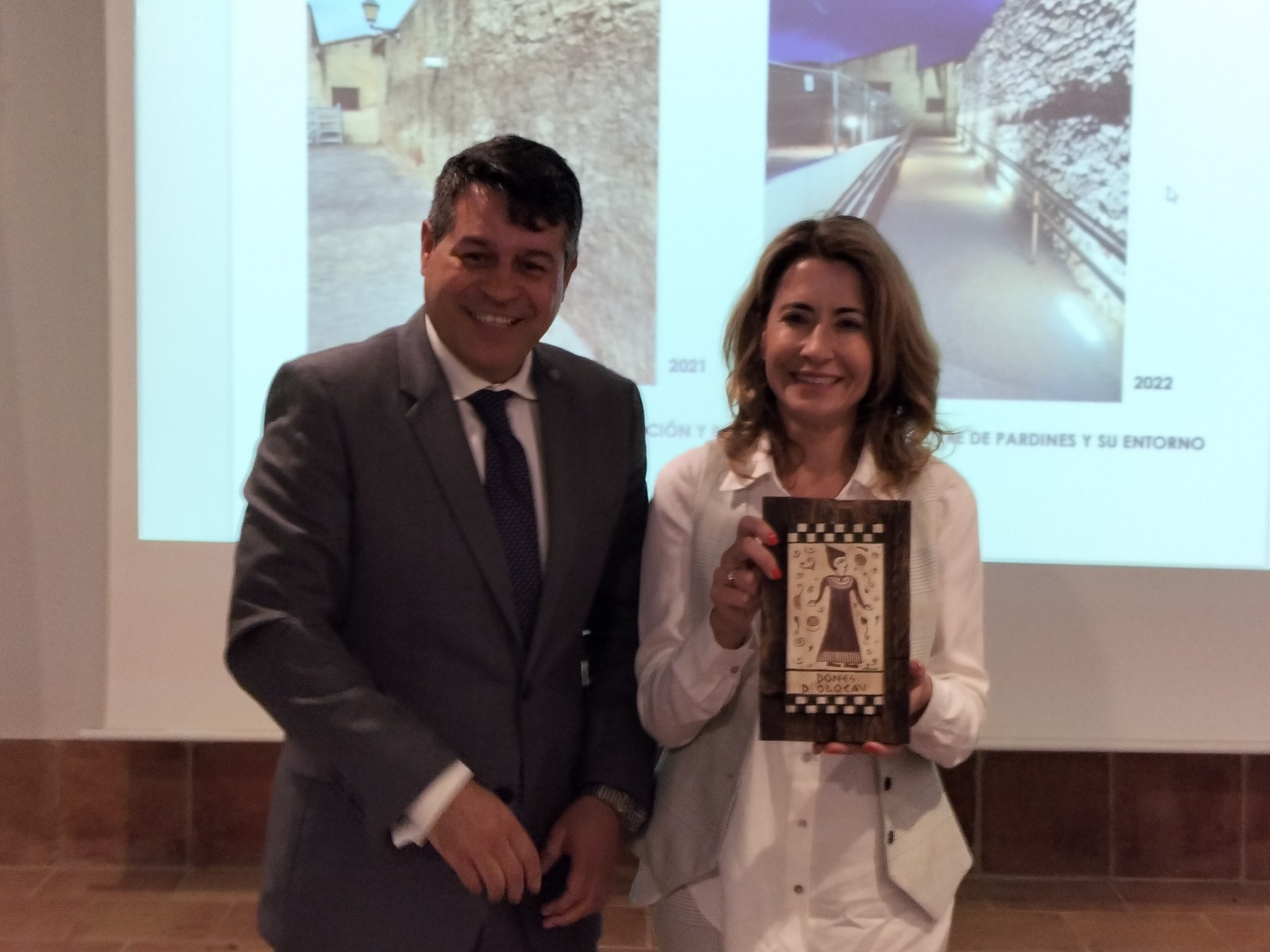 Antes de abandonar el recinto, Raquel Sánchez ha recibido tres presentes: una réplica en miniatura de la Torre de Pardines, realizada por Marisa Alabau i Javier López, de ACEO (Asociación de Comercios y Empresas de Olocau), una figura del guerrero Nauiba de parte del Ayuntamiento y un cuadro de socarrat de Dones d’Olocau elaborado por Ana Pascual.