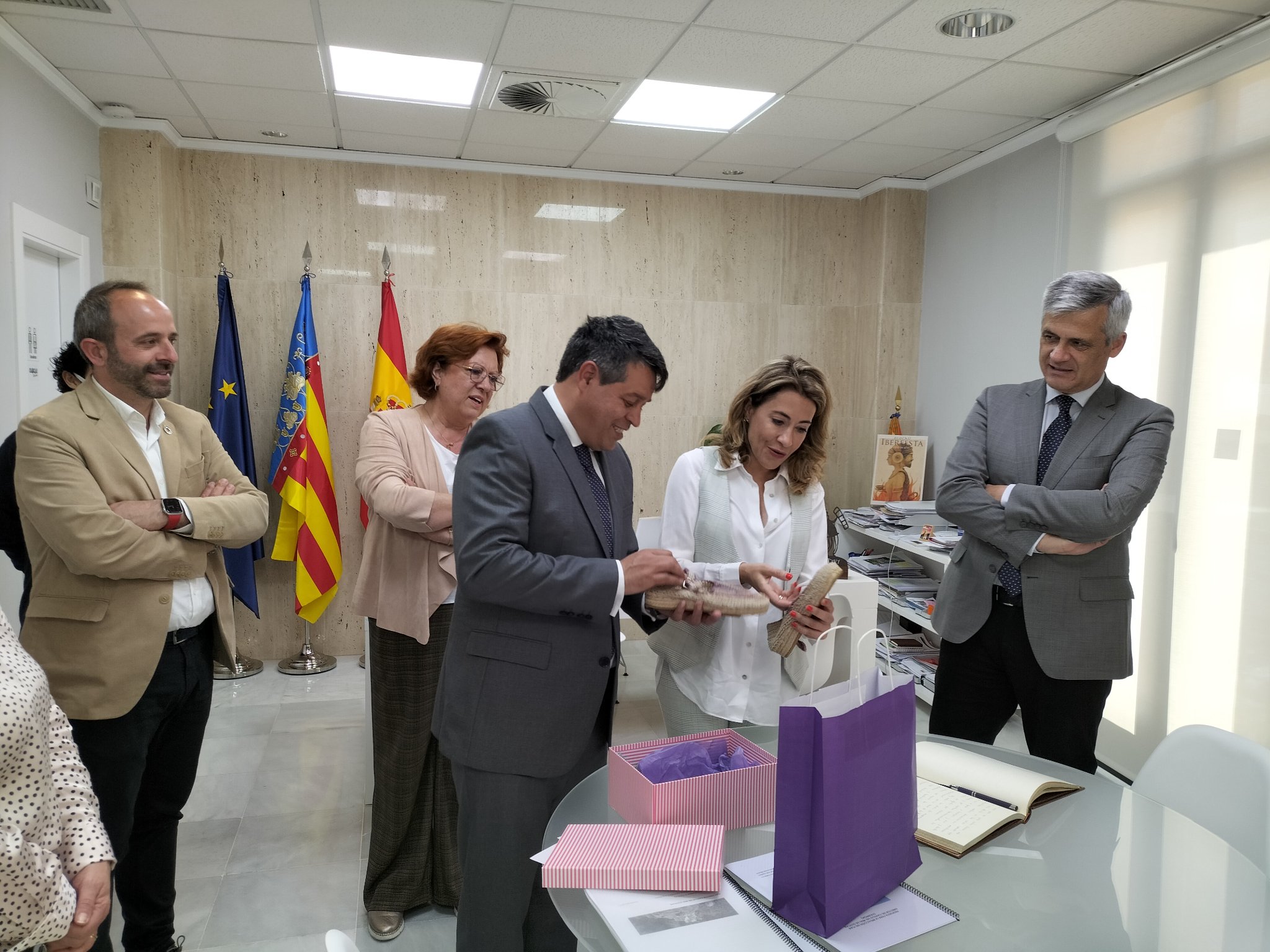 El acto ha comenzado con una recepción a las autoridades en el Consistorio por parte de los Regidores de la Corporación Municipal, encabezada por nuestro Alcalde, Antonio Ropero. A continuación, la Ministra ha firmado en el Libro de Honor del Ayuntamiento. Un momento de gran cordialidad en el que el primer edil y la titular del Ministerio han conversado sobre Olocau, Gavà (Sánchez fue su Alcaldesa) y la relación que une a ambas localidades como municipios hermanados. Además, se ha hecho entrega de un pequeño obsequio con unas zapatillas tradicionales.