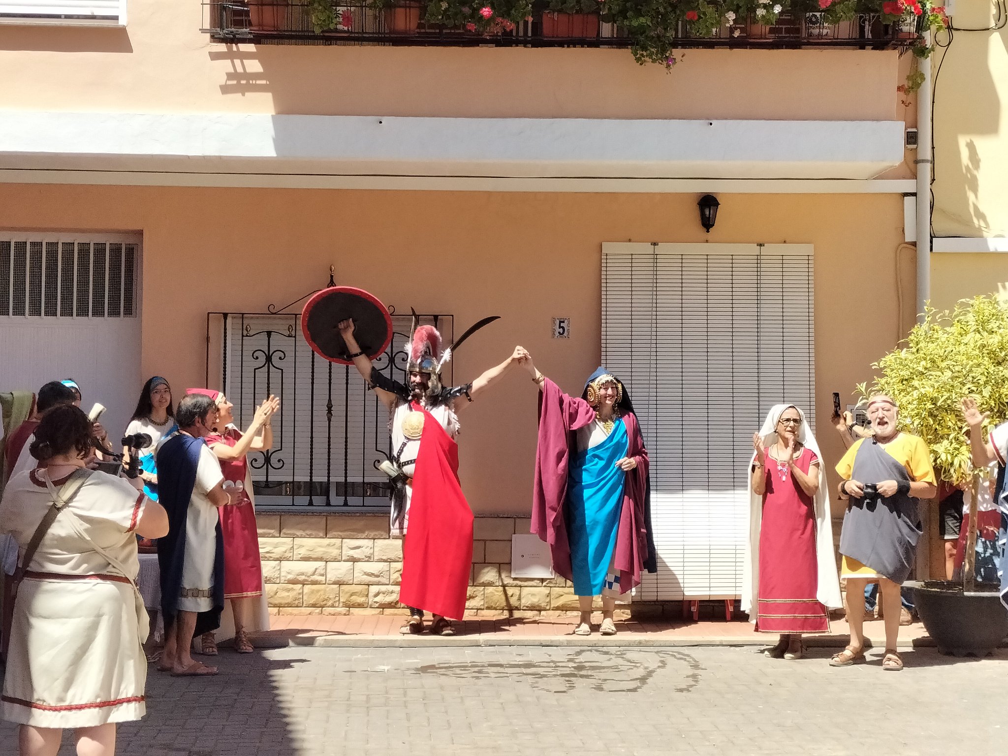 Tras el enlace, el cortejo nupcial volvió a la Plaza Mayor para continuar con los rituales de la ceremonia y para que familia de los novios compartiera su alegría con el público ofreciéndole diferentes alimentos. Sin embargo, la celebración fue interrumpida de forma abrupta por una compañía de legionarios romanos, que declararon nulo el enlace y, tras un enfrentamiento, apresaron a Nauiba.