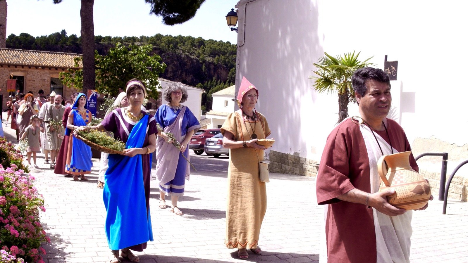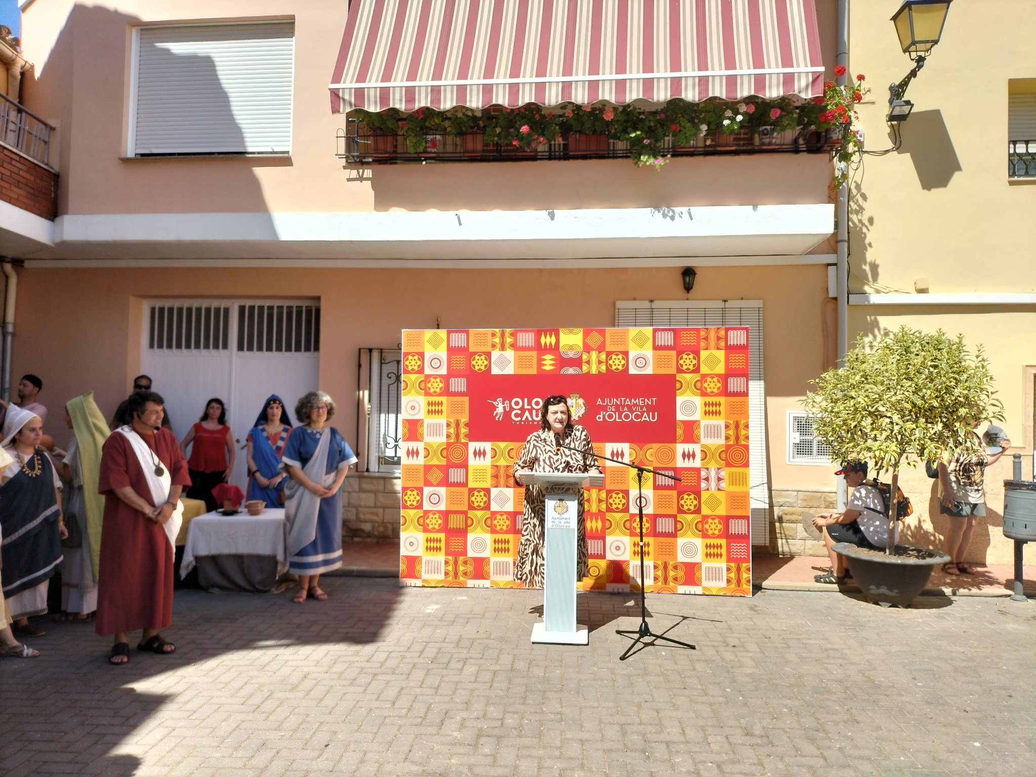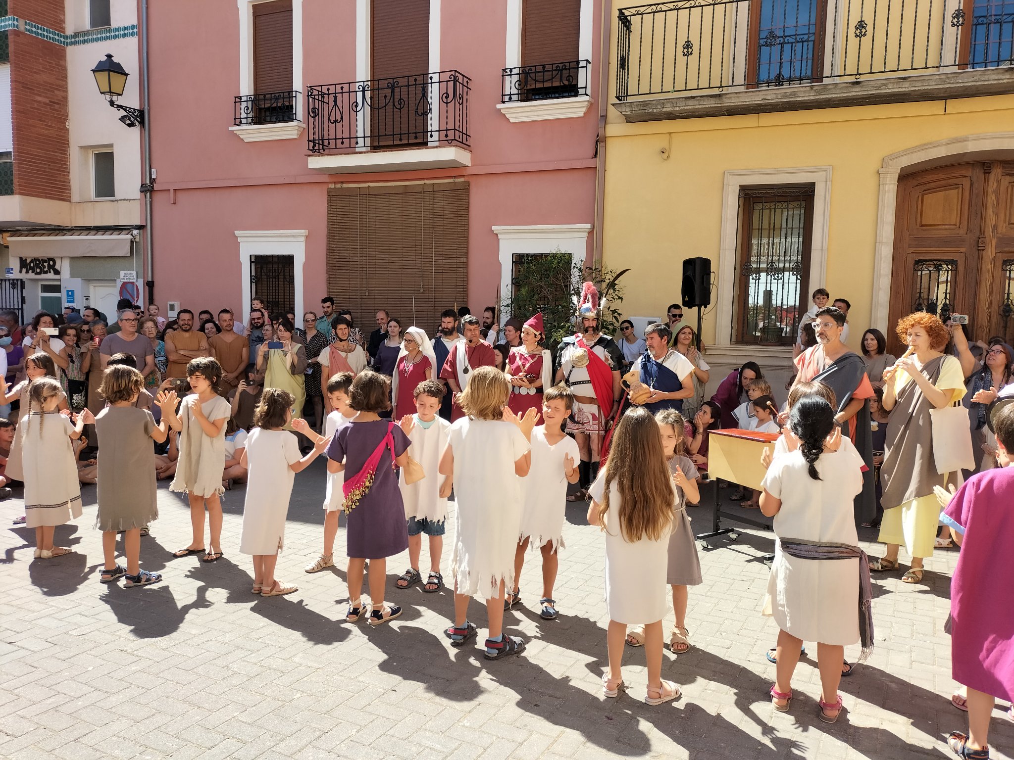 Los actos arrancaron el sábado por la mañana, cuando un numeroso grupo de alumnas y alumnos del CRA Alt Carraixet bajaron a ritmo de música íbera desde la Casa de la Senyoria a la Plaza Mayor, donde esperaba el guerrero Nauiba, el novio de la boda que iba a tener lugar más tarde. Allí, bailaron y llevaron su alegría a todas las personas presentes. Entre ellas, estaba nuestro Alcalde, Antonio Ropero, quien tomó la palabra para destacar la gran noticia que suponía volver a celebrar la Iberfesta y para animar a todos a disfrutar del evento y a descubrir el legado de los íberos en Olocau. También habló la Directora del Museo de Prehistoria de València, María Jesús de Pedro, para compartir su satisfacción por el hecho de recuperar esta fiesta tan especial.