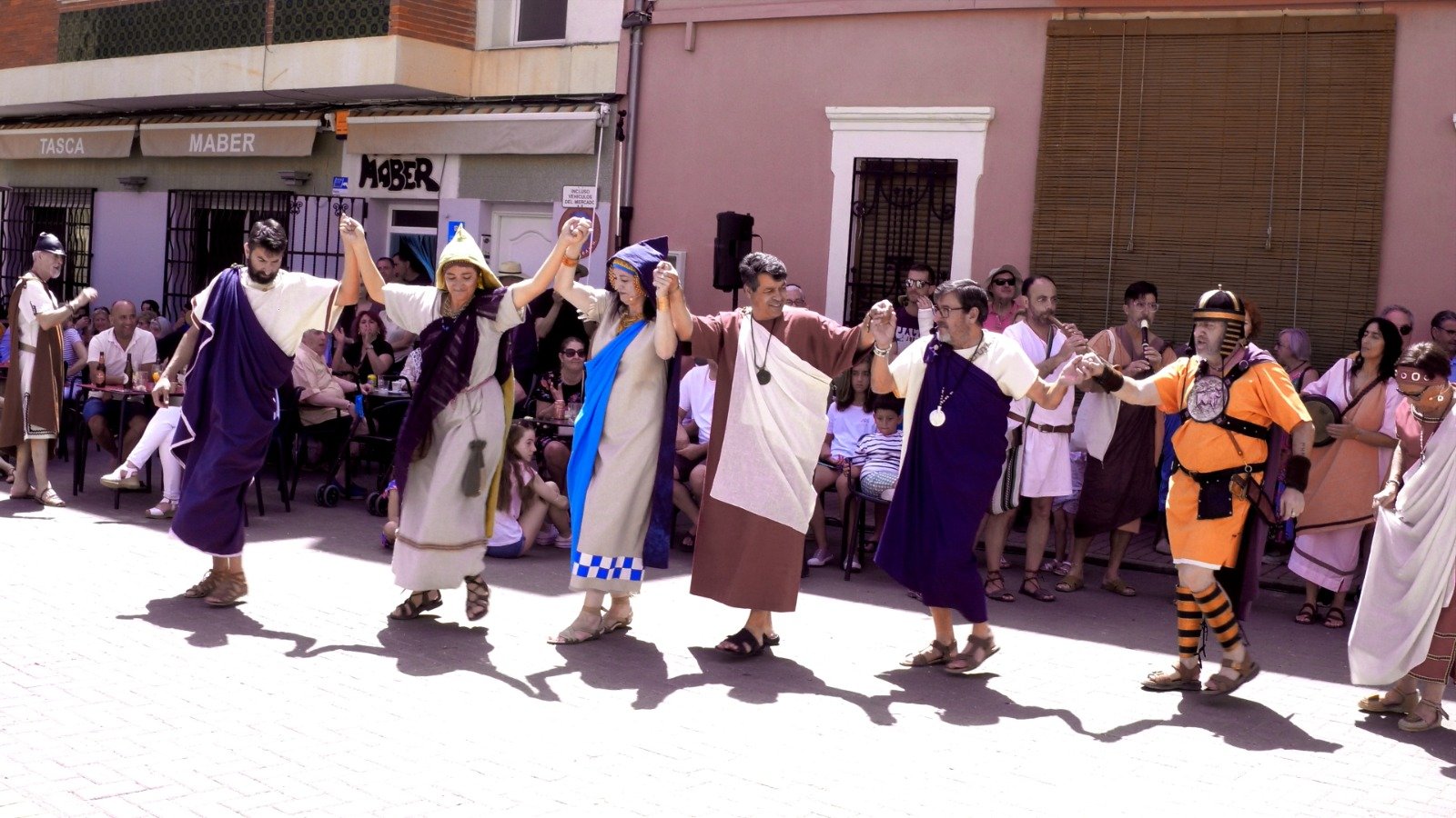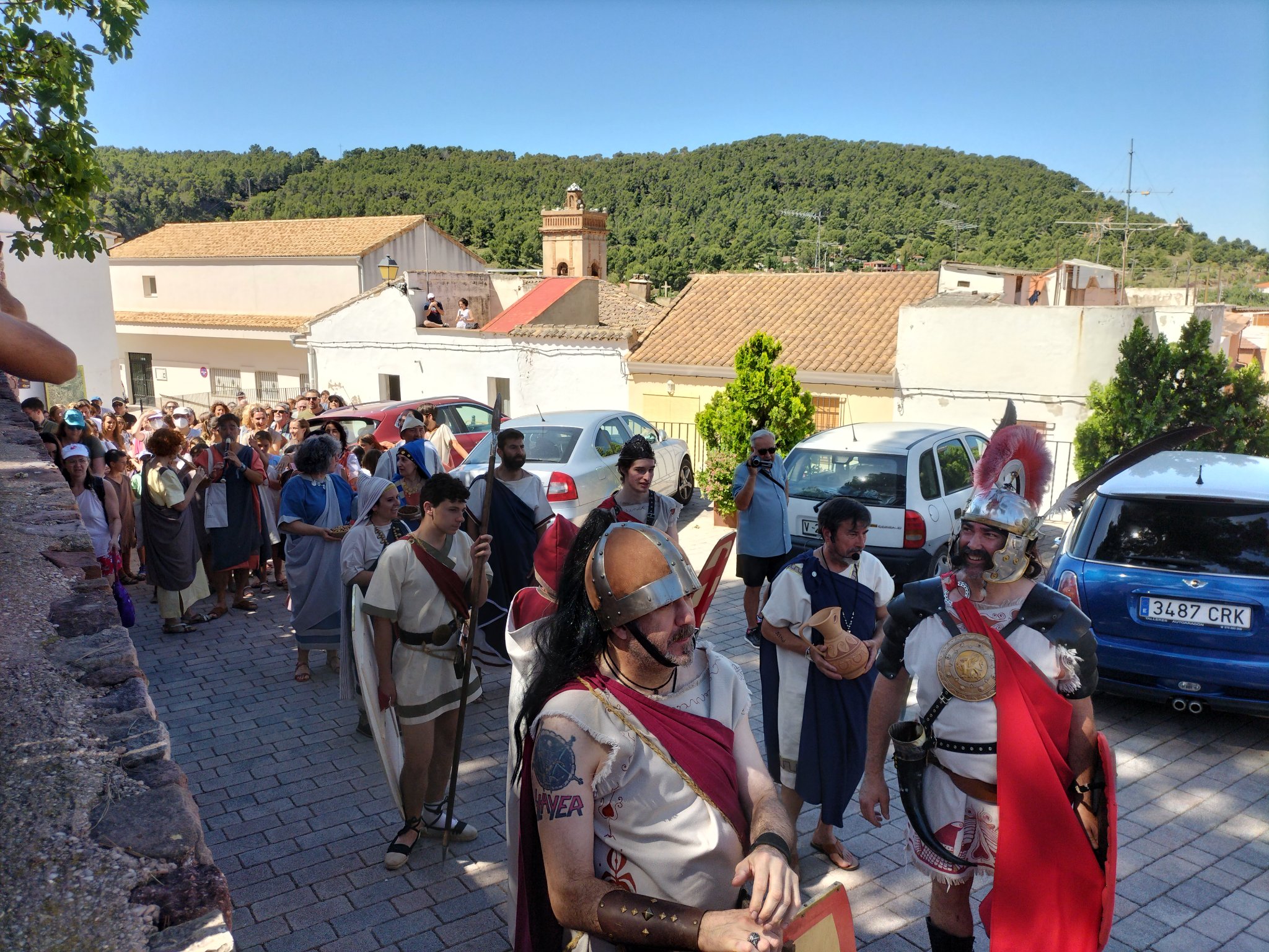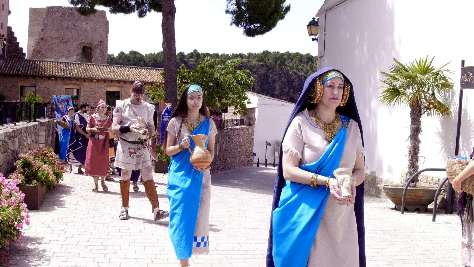 Los actos arrancaron el sábado por la mañana, cuando un numeroso grupo de alumnas y alumnos del CRA Alt Carraixet bajaron a ritmo de música íbera desde la Casa de la Senyoria a la Plaza Mayor, donde esperaba el guerrero Nauiba, el novio de la boda que iba a tener lugar más tarde. Allí, bailaron y llevaron su alegría a todas las personas presentes. Entre ellas, estaba nuestro Alcalde, Antonio Ropero, quien tomó la palabra para destacar la gran noticia que suponía volver a celebrar la Iberfesta y para animar a todos a disfrutar del evento y a descubrir el legado de los íberos en Olocau. También habló la Directora del Museo de Prehistoria de València, María Jesús de Pedro, para compartir su satisfacción por el hecho de recuperar esta fiesta tan especial.