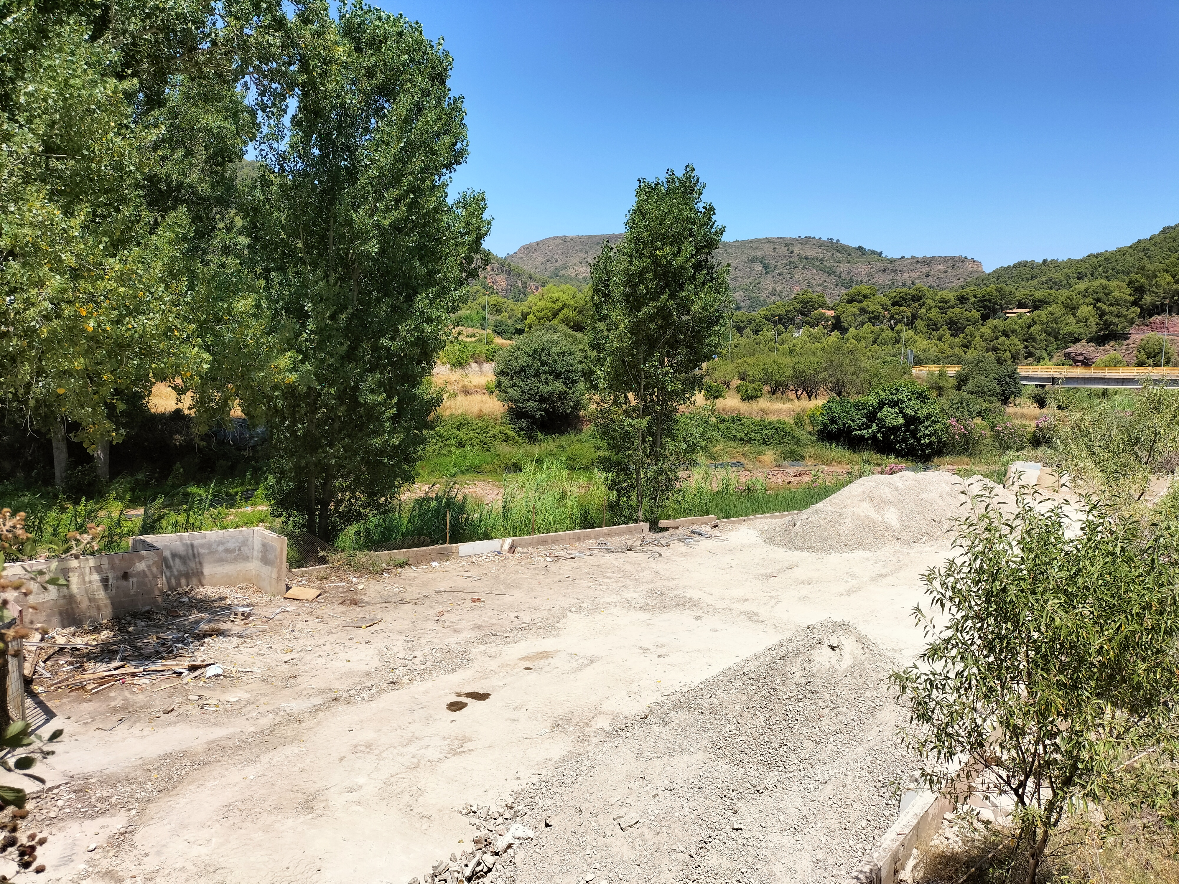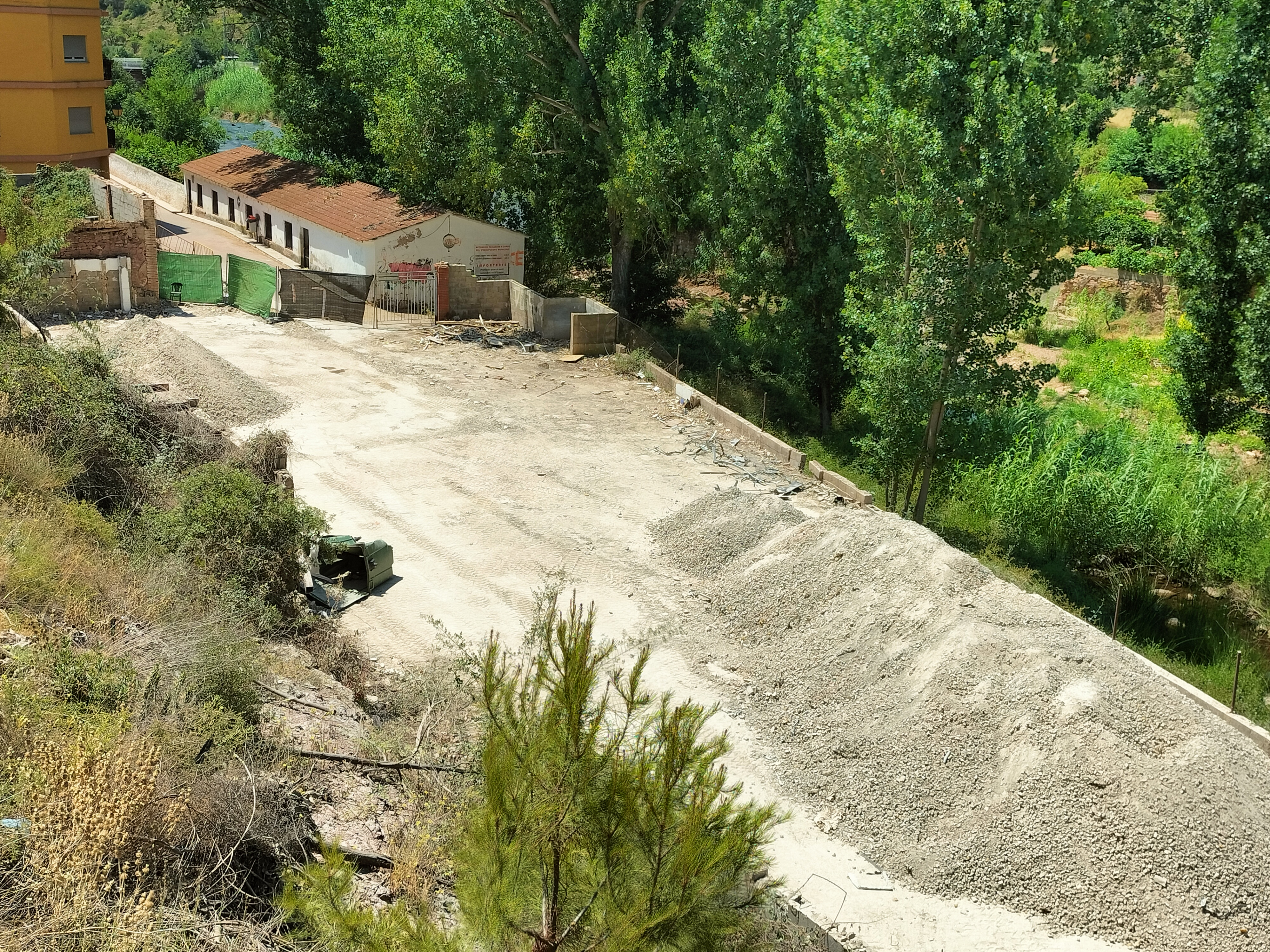 El Ayuntamiento de la Villa de Olocau informa de que las obras de acondicionamiento para construir un parquin municipal en la parcela de la antigua granja y el almacén anexo entran en su fase final tras la eliminación del amianto y con el derribo de las estructuras.