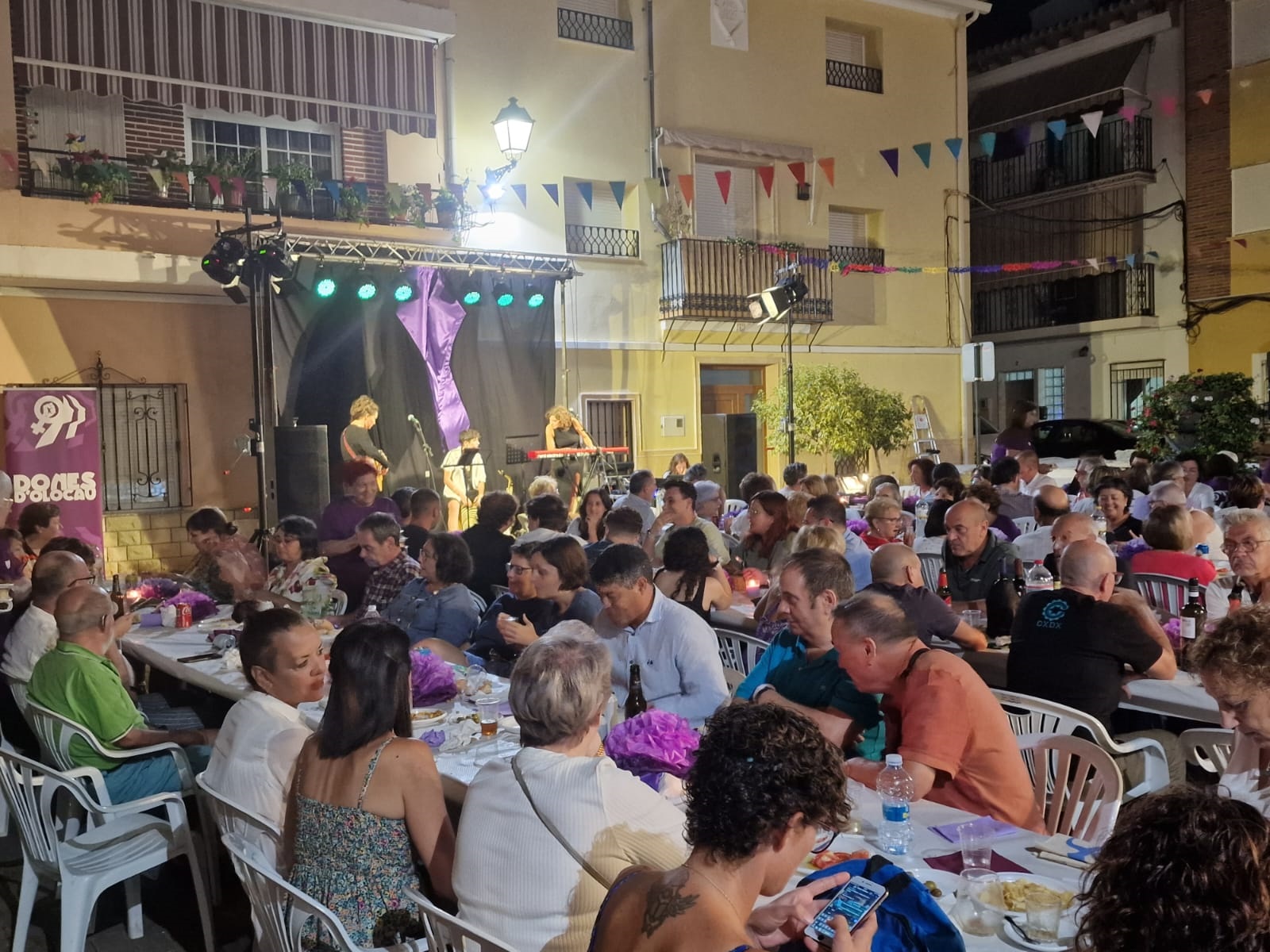 El pasado sábado, la Plaza Mayor acogió el tradicional ‘Sopar de Germanor’ organizado por Dones d’Olocau, un evento que reunió a unas 270 personas para mostrar el apoyo de nuestro pueblo a la lucha por la igualdad. Y todo ello, en un ambiente de gran cordialidad y disfrutando de la música fusión y reivindicativa del grupo Vandoleras.