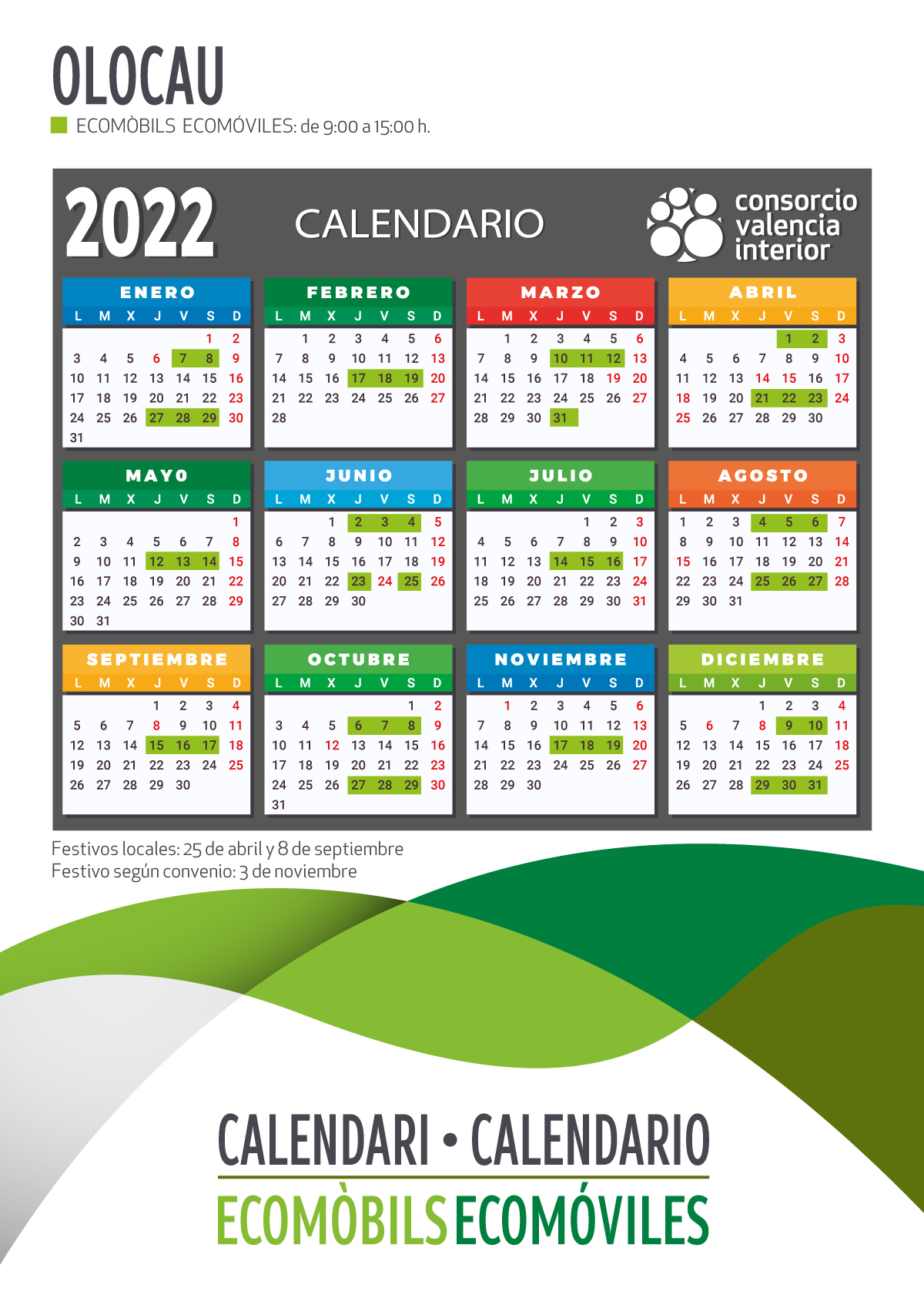 Por otro lado, los días 6, 7 y 8, y 27, 28 y 29 de octubre estará en nuestro pueblo el ecomóvil del Consorcio Valencia Interior (clic aquí para ver el calendario). Este servicio estará disponible en horario de 9 a 15 horas en su ubicación habitual (al lado de los contenedores de reciclaje de la Rotonda de Arriba). Recordamos también que, además de ser el lugar al que llevar objetos y residuos que no pueden depositarse en los contenedores habituales para su reciclaje, los ecoparques móviles son instalaciones en las que se puede pedir y tramitar de forma gratuita la tarjeta “Mi Cuenta Ambiental”. Con ella, los usuarios obtienen puntos en función de la cantidad y del tipo de residuos que lleven a los ecoparques y/o a los ecomóviles. A final de año, dichos puntos se traducen en descuentos en la tasa por tratamiento de residuos. Más información en este enlace.