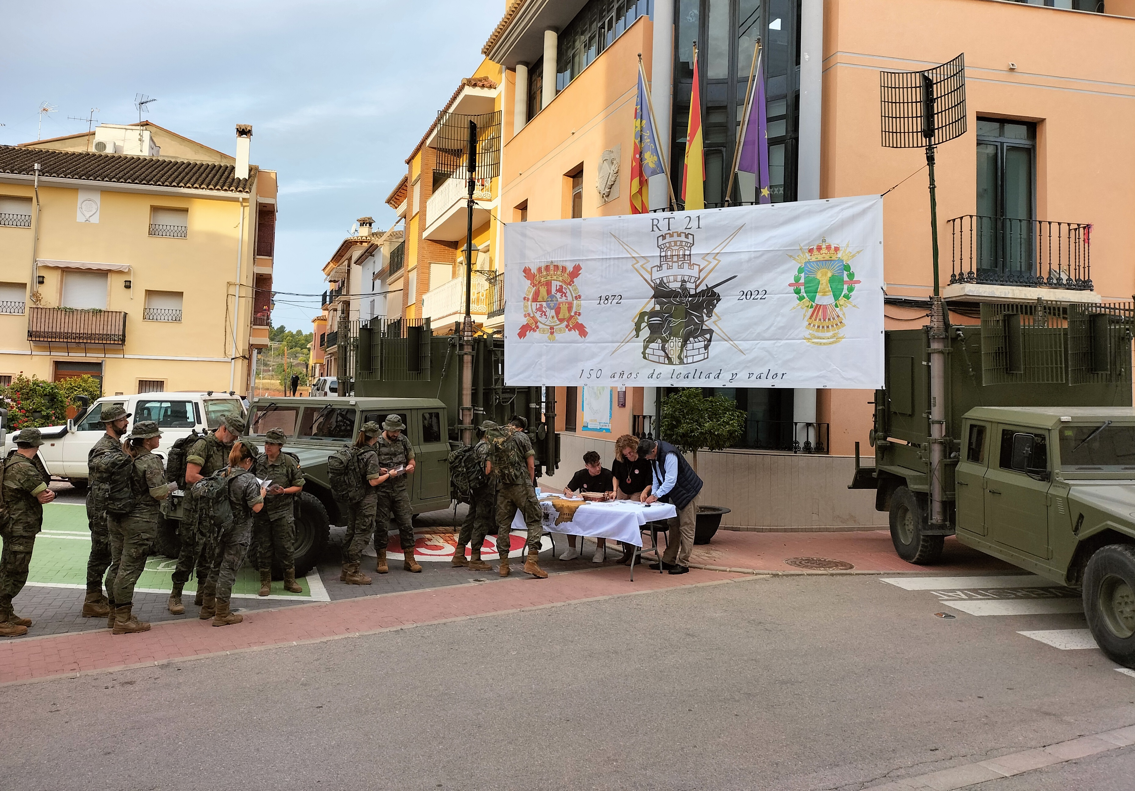 Tras ello, Antonio Ropero ha querido felicitar, en nombre de nuestro pueblo, al Coronel José Manuel Lupiani Castellanos y a los miembros del RT 21 por el 150 aniversario de la unidad y darles las gracias “por los valores que representáis y por el gran trabajo que realizáis tanto en España como en el extranjero”. Además, les ha animado a disfrutar del Camino y a volver a Olocau cuando regresen.