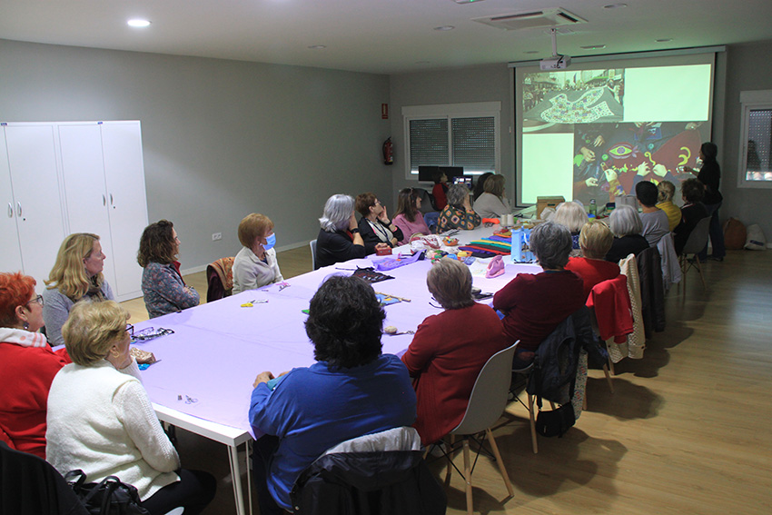 El objetivo de la actividad (enmarcada en el programa de actos por el 25N) era bordar de manera grupal una pancarta para la conmemoración del Día Internacional de la Eliminación de la Violencia contra la Mujer. En este sentido, a lo largo de las dos sesiones se llevó a cabo un trabajo de confección caracterizado por la creatividad y la colaboración, así como por la reflexión colectiva.