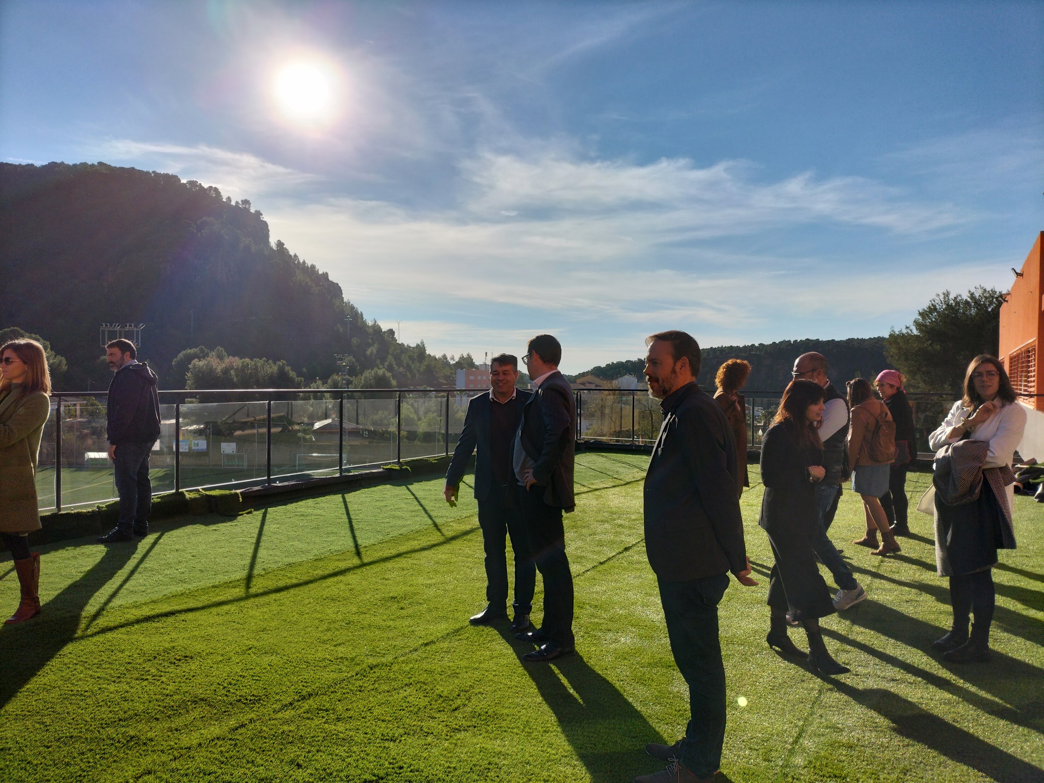 Previamente a la visita, se ha realizado un recorrido con Víctor Garcia que ha finalizado con la firma del acta de ocupación del colegio junto con Antonio Ropero, Miguel Sanjuan (director de la obra), Juan Ignacio de Llano (director de ejecución), los ingenieros industriales Mercedes Terol y Alexis Mateu, y Carlos Romeo (director de DOC, la empresa constructora). Se trata de un documento que permite que el centro entre en una nueva fase, la del amueblado y el traslado del equipamiento necesario para comenzar las clases.