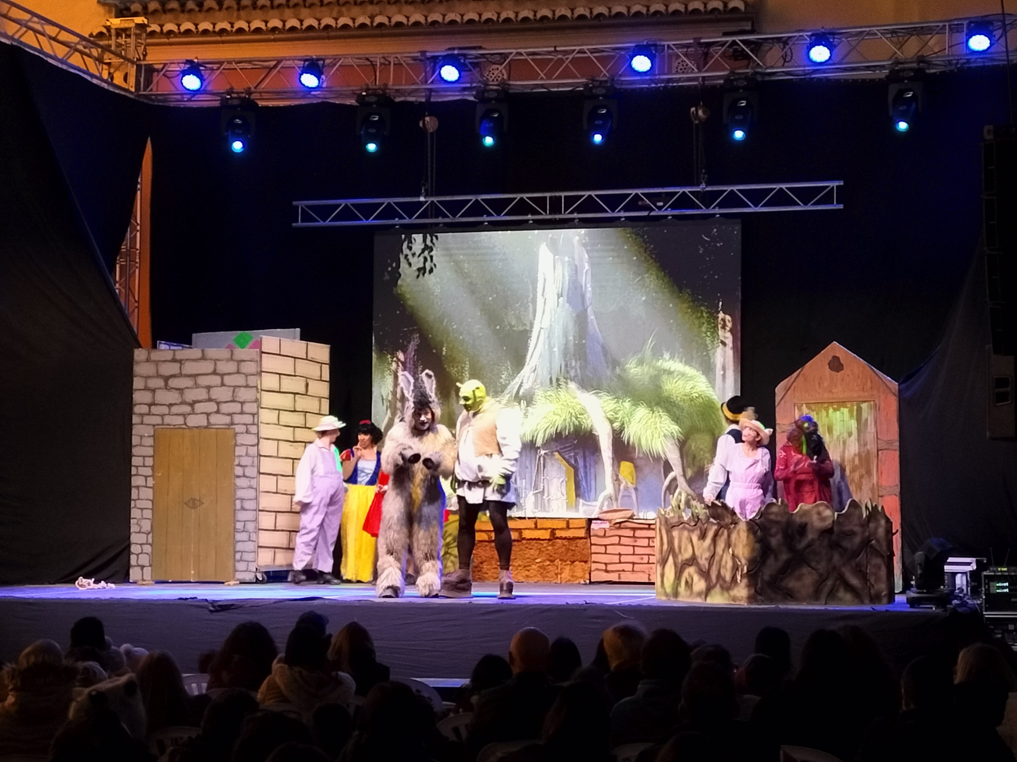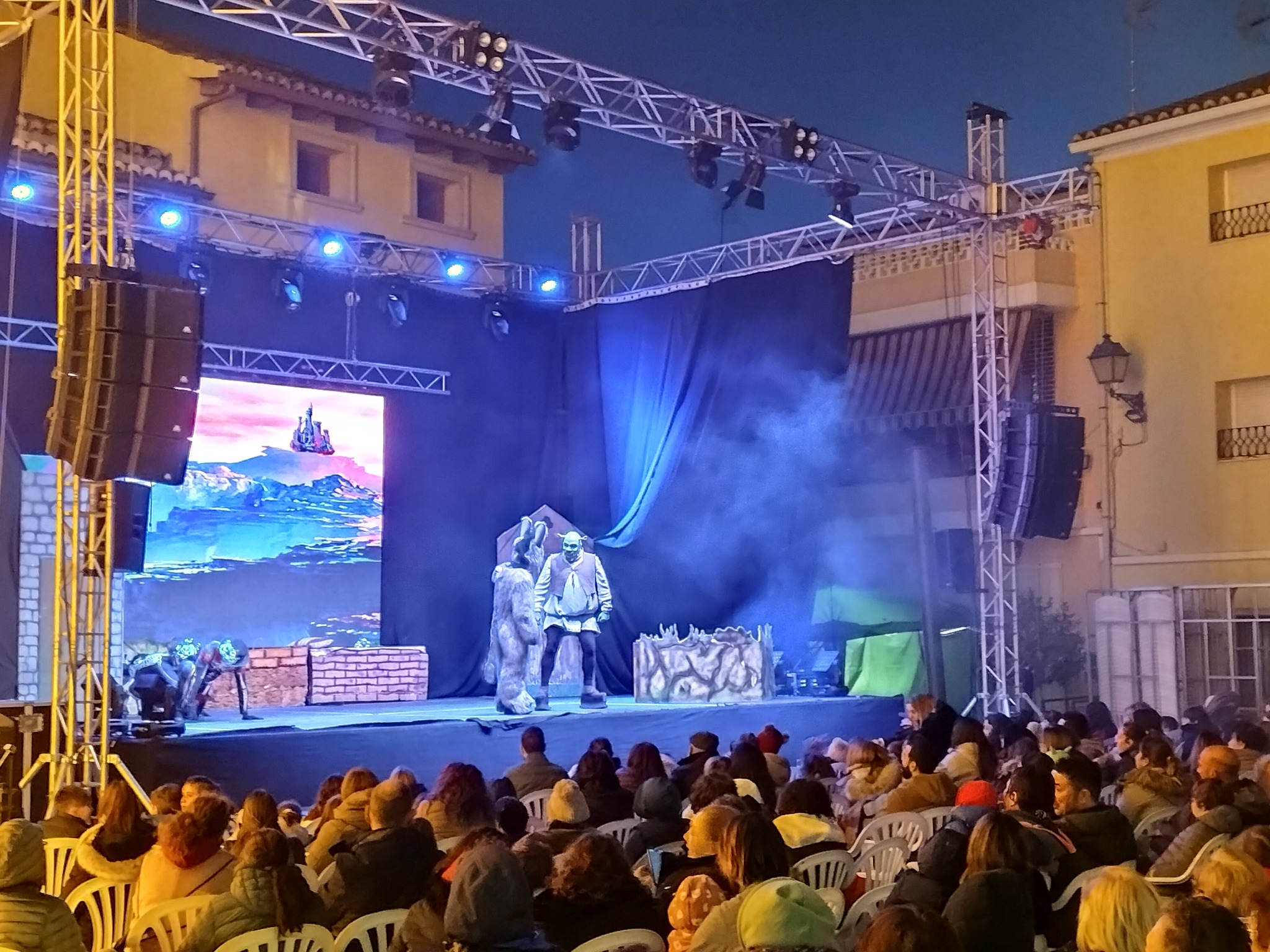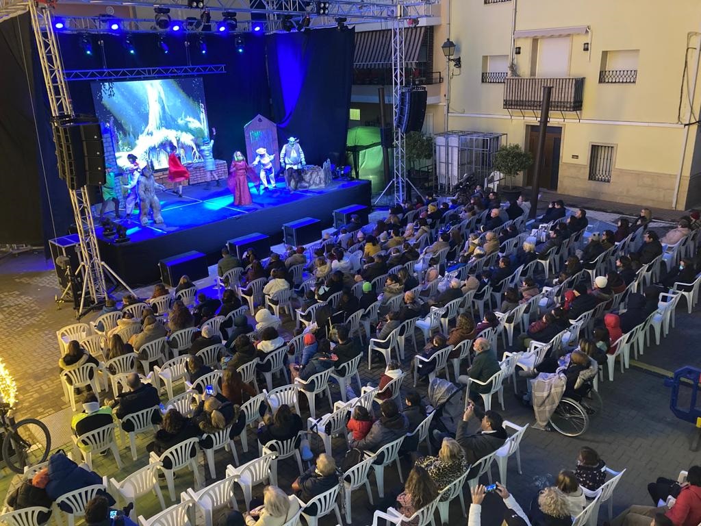 De esta manera, unas 350 personas de todas las edades asistieron a uno de los actos principales de estas fiestas navideñas en Olocau y disfrutaron de una tarde de diversión. La cuidada escenografía, la magnífica caracterización y las excelentes interpretaciones del elenco de actores transportaron al público a un mundo de cuento para seguir las aventuras de Shrek, Asno, la princesa Fiona y el Lord de Altamira. Un evento para toda la familia cargado de música y de buen humor que sirvió como preludio de la Gran Cabalgata de los Reyes Magos de Oriente de hoy.