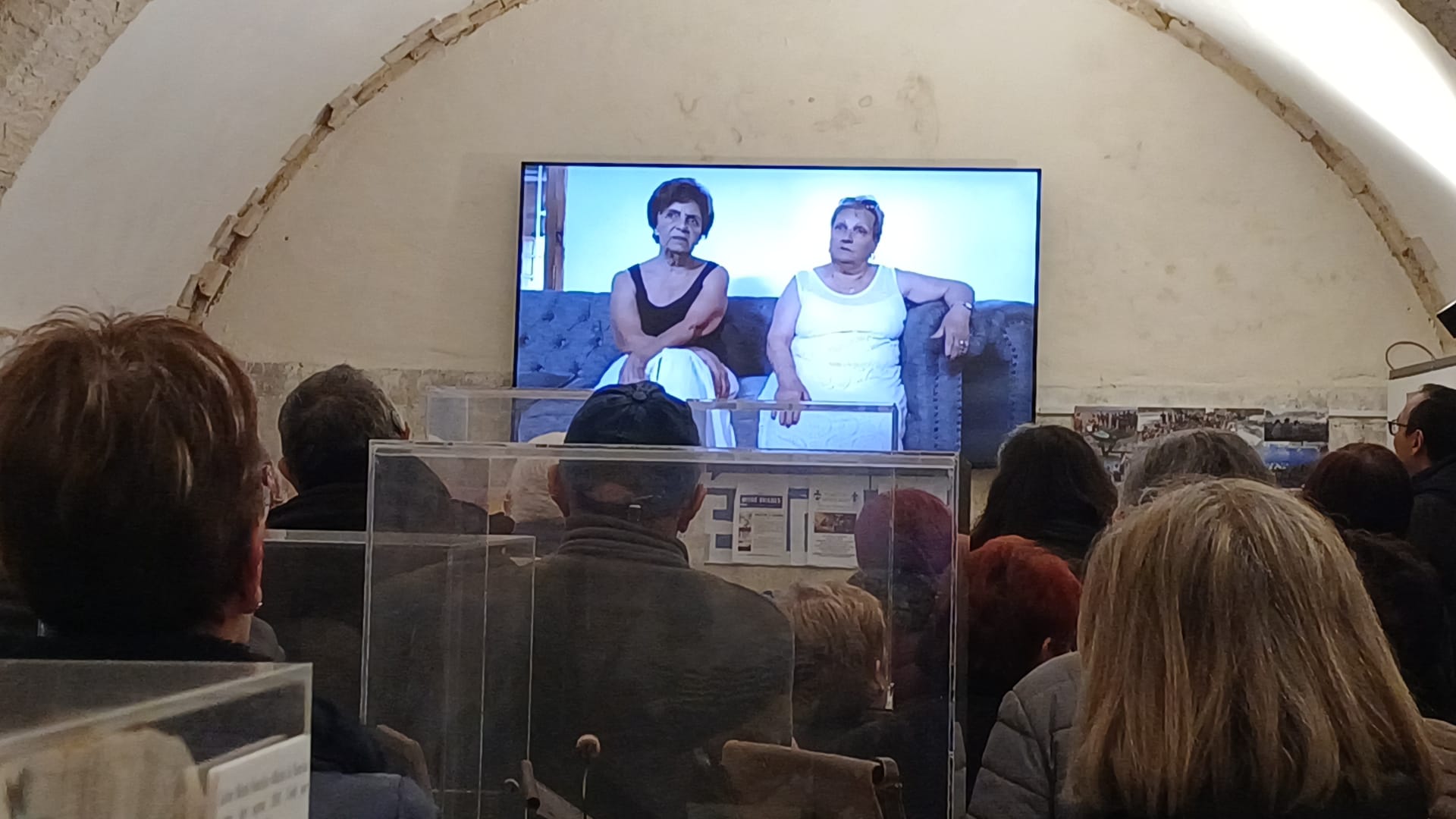 Tras los parlamentos, se proyectó un vídeo con entrevistas en las que diferentes personas ofrecían testimonios de sus experiencias en la escuela de Olocau; entre los participantes, también estaba el maestro y cronista local Ferran Zurriaga.
