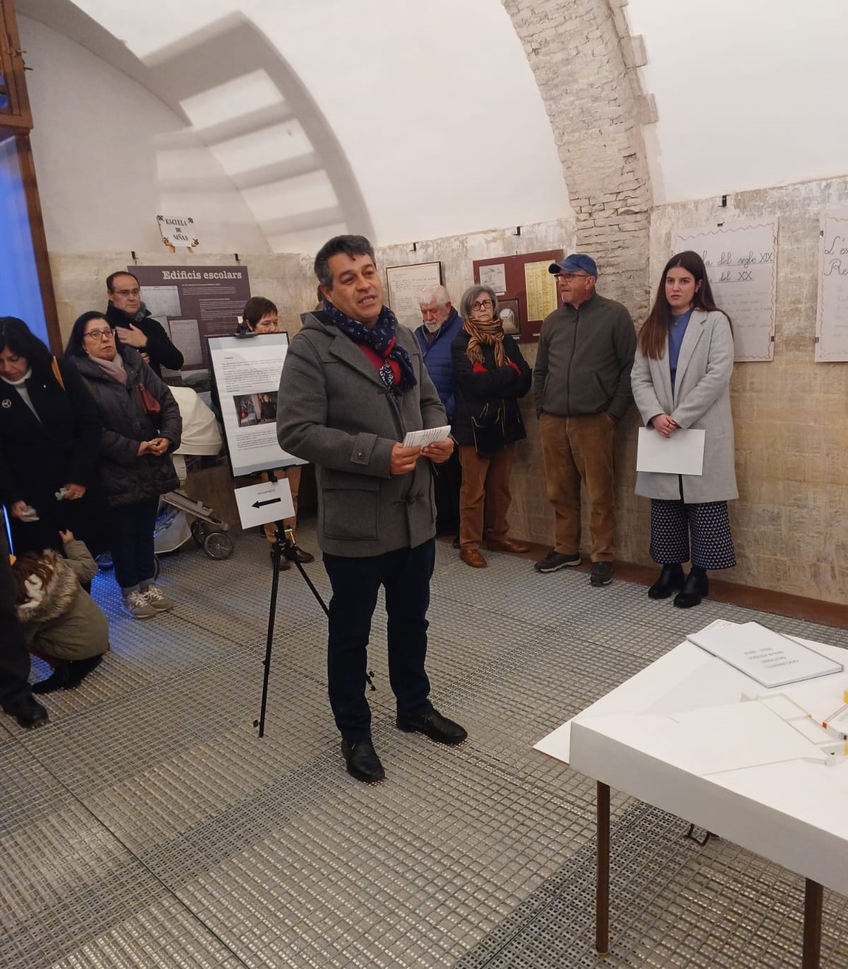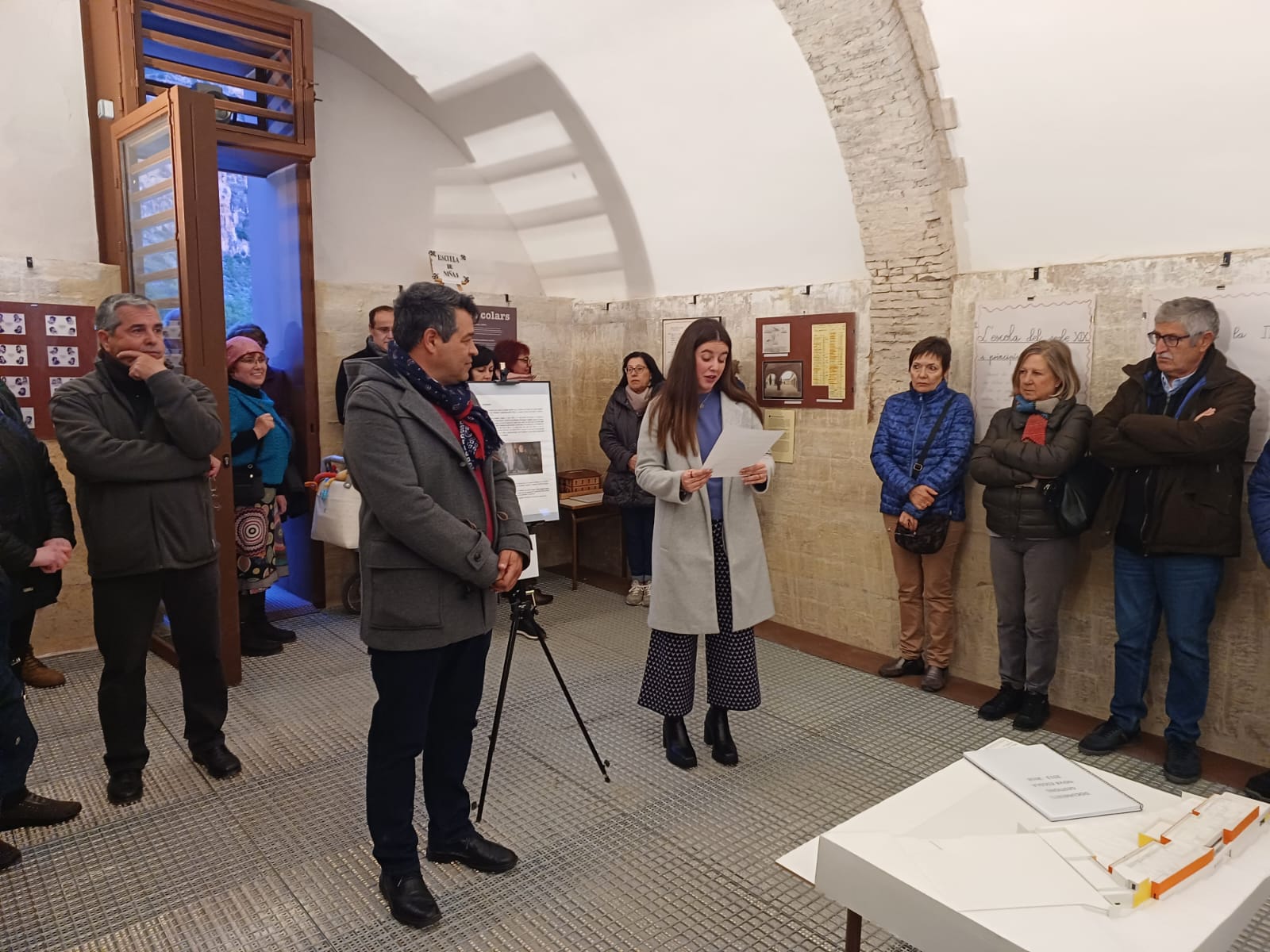 El acto comenzó con los discursos del primer edil, y, en nombre de las personas que han preparado la exposición, de Laura Zurriaga. En sus intervenciones, destacaron la importante labor de recopilación que se ha llevado a cabo e hicieron hincapié en la importancia de redescubrir nuestro pasado para entender mejor los cambios que ha habido en el sistema educativo hasta hoy.