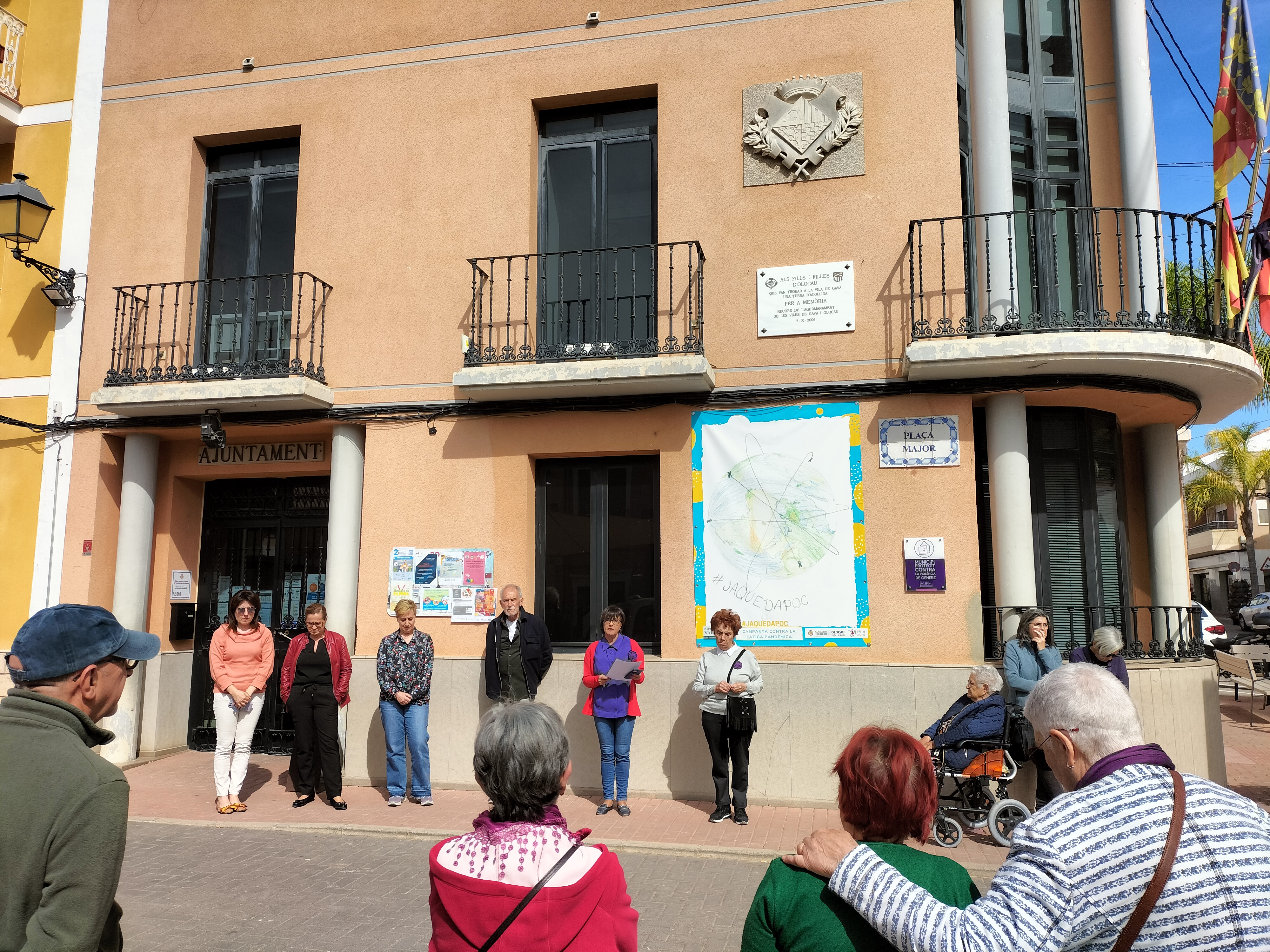 Olocau ha mostrado una vez más su rechazo y su repulsa hacia la violencia machista, y su solidaridad con todas aquellas mujeres que la sufren, guardando un sentido minuto de silencio en la puerta del Ayuntamiento.