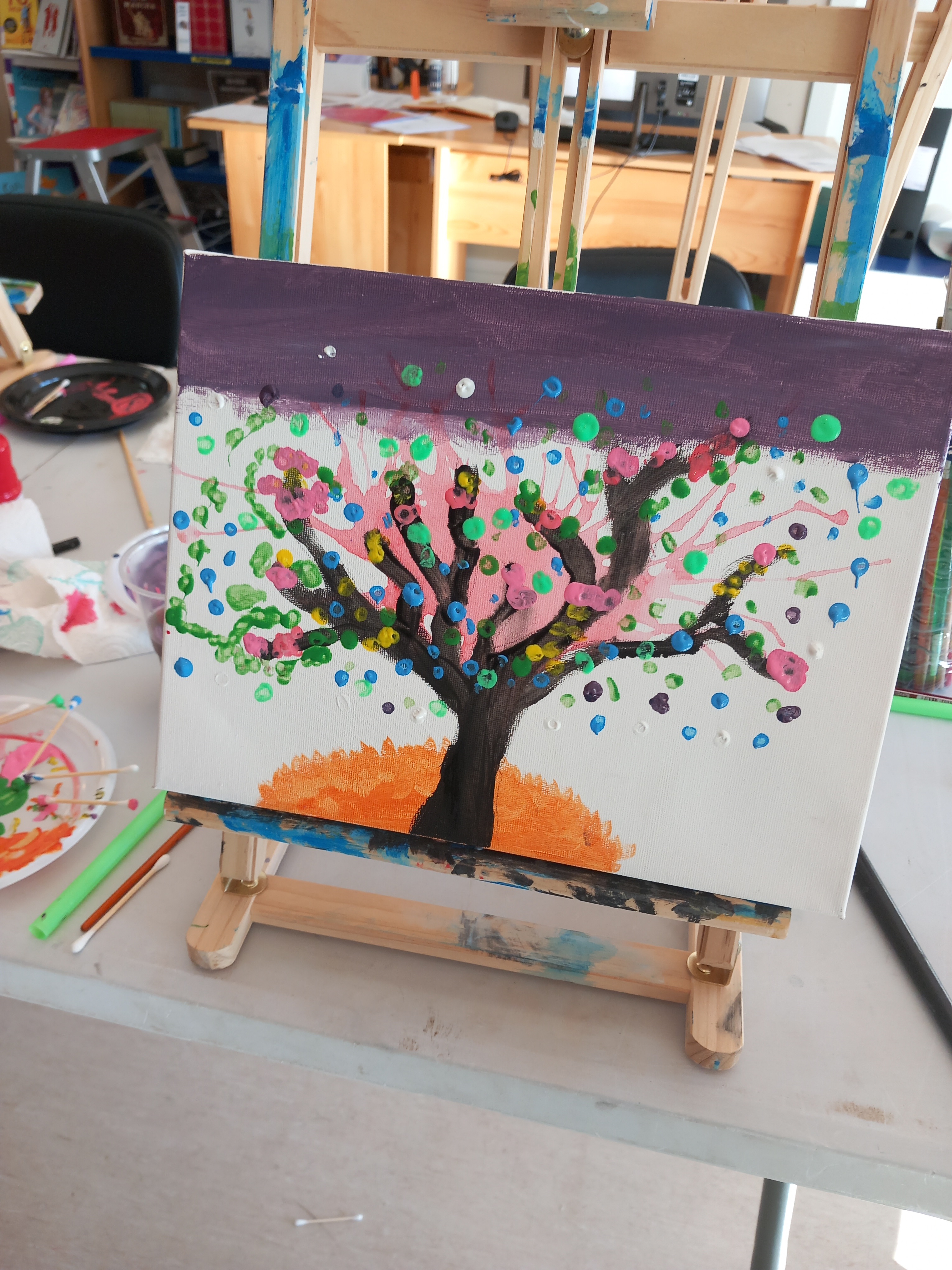 La actividad combinó creatividad y diversión, así como la literatura y el arte, ya que consistió en la elaboración de un cuadro a partir de un libro. Así, se trabajó con el cuento El árbol que no tenía hojas, de Fernando Alonso, y los resultados fueron las preciosas obras que se pueden ver en las fotografías que adjuntamos.