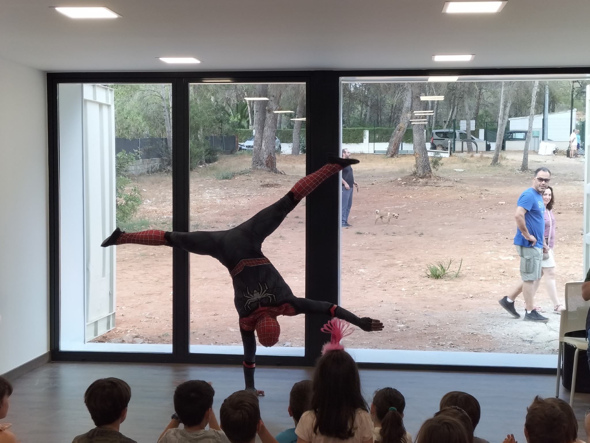 La jornada comenzó con el espectáculo ‘Súper’, a cargo del cuentacuentos El Gran Jordiet y del acróbata Josemi Sykes. Una propuesta dirigida a los más pequeños con las historias de superhéroes que Jordiet sacaba de su maleta. Durante la sesión, disfrutaron del estilo tan característico del narrador de Alberic, lleno de humor, juegos e interacción con el público. Además, al final, sorprendió a todos con la aparición de Spider-Man, quien realizó una impresionante demostración de fuerza y flexibilidad y permaneció durante unos minutos con aquellos niños y niñas que quisieron hacerse una foto con él.