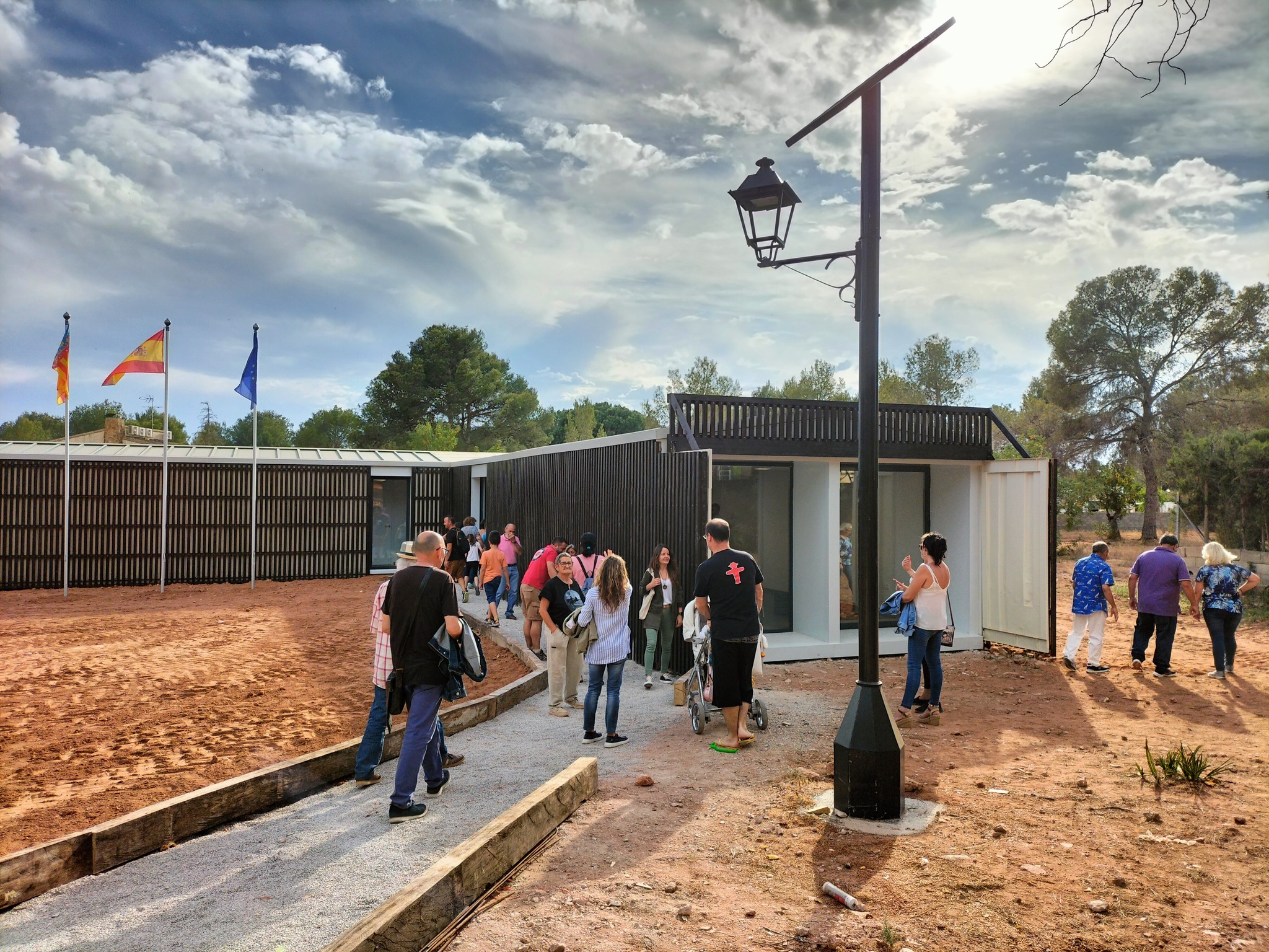 El evento se realizó en el Centro Cívico ‘Els Pins’, un edificio de una única planta con tres volúmenes unidos por un espacio central y compuesto por salas polivalentes. Se trata de una infraestructura sostenible, debido a la utilización de contenedores marítimos reciclados, perfectamente integrada en el entorno del arbolado de la parcela, y que cuenta con una instalación de placas solares fotovoltaicas para asegurar su eficiencia energética. El presupuesto dedicado a su construcción ha ascendido a 194.128,94 euros, de los cuales 147.000 han provenido de una subvención del Plan de Inversiones 2020-2021 de la Diputación de Valencia; 23,425,96, de una ayuda del Plan de Impulso a la Innovación e Investigación aplicada para la Transición Ecológica en la Arquitectura (Irta) de la Vicepresidencia Segunda y Conselleria de Vivienda y Arquitectura Bioclimática; y el resto, de fondos propios municipales.