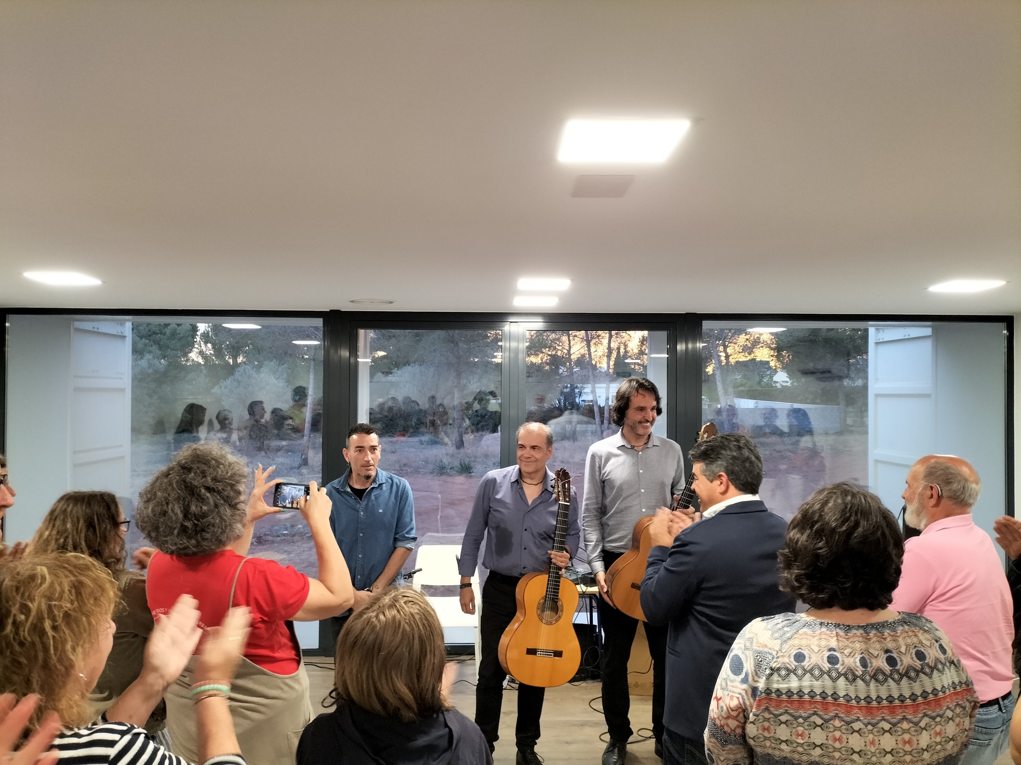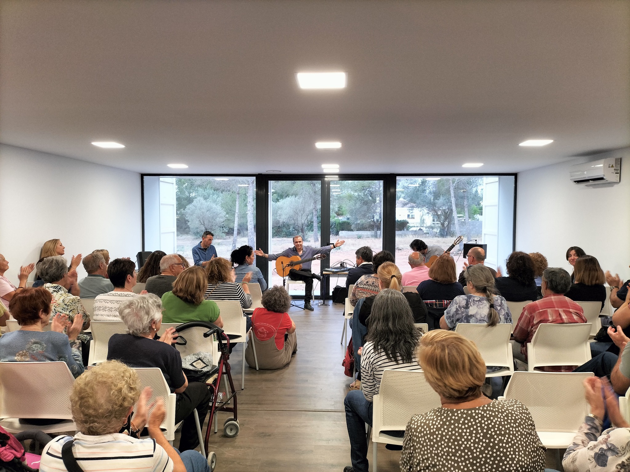 Tras el parlamento, Ropero cedió la palabra a Toni Cotolí, vecino de la urbanización, quien antes de dar inicio a la actuación de su grupo ‘Guitarras del Mediterráneo’, quiso agradecer al Ayuntamiento y a la Asociación de Vecinos el hecho de poder actuar en Olocau y manifestó como de especial era ello para él. Después, arrancó el concierto, un directo elegante e intenso en el que Cotolí (guitarra clásica), Javier Zamora (guitarra flamenca) y Manuel Quintero (percusión) deleitaron al público con su fusión de estilos clásico y flamenco a través de temas propios y versiones e interpretaciones de canciones de autores como Joaquín Rodrigo, Astor Piazzolla, Isaac Albéniz o Manuel de Falla.