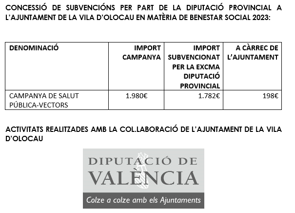 Subvención Recibida desde la Diputación de Valencia