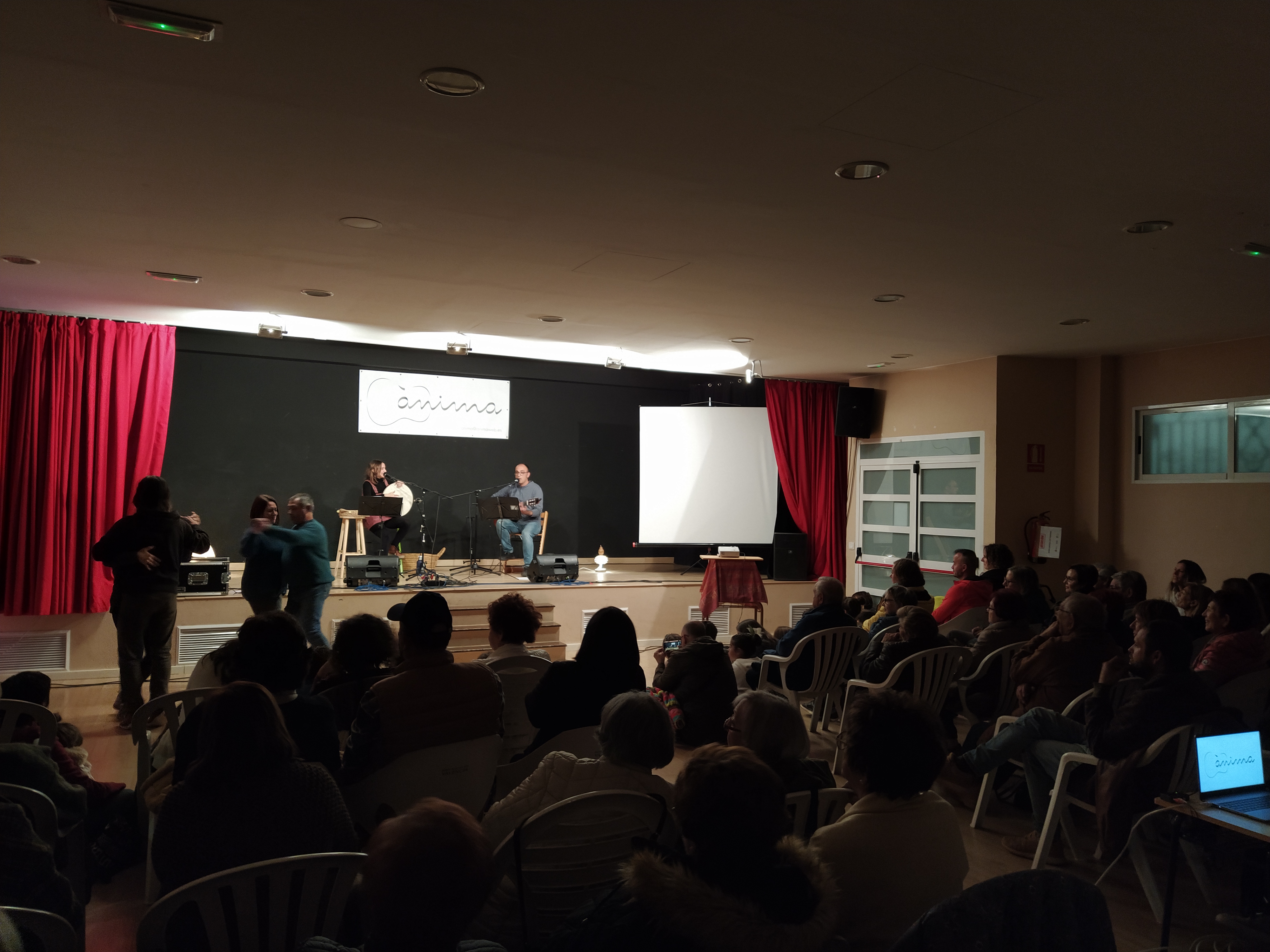 El pasado sábado, el dúo Ànima, formado por nuestros vecinos Anna Roy y Francesc Sanchis, ofreció un concierto de presentación de su primer disco, ‘Vida’. Un evento que llenó la Casa de la Cultura con unas 110 personas, que disfrutaron de un magnífico repertorio de música folk y de raíz.