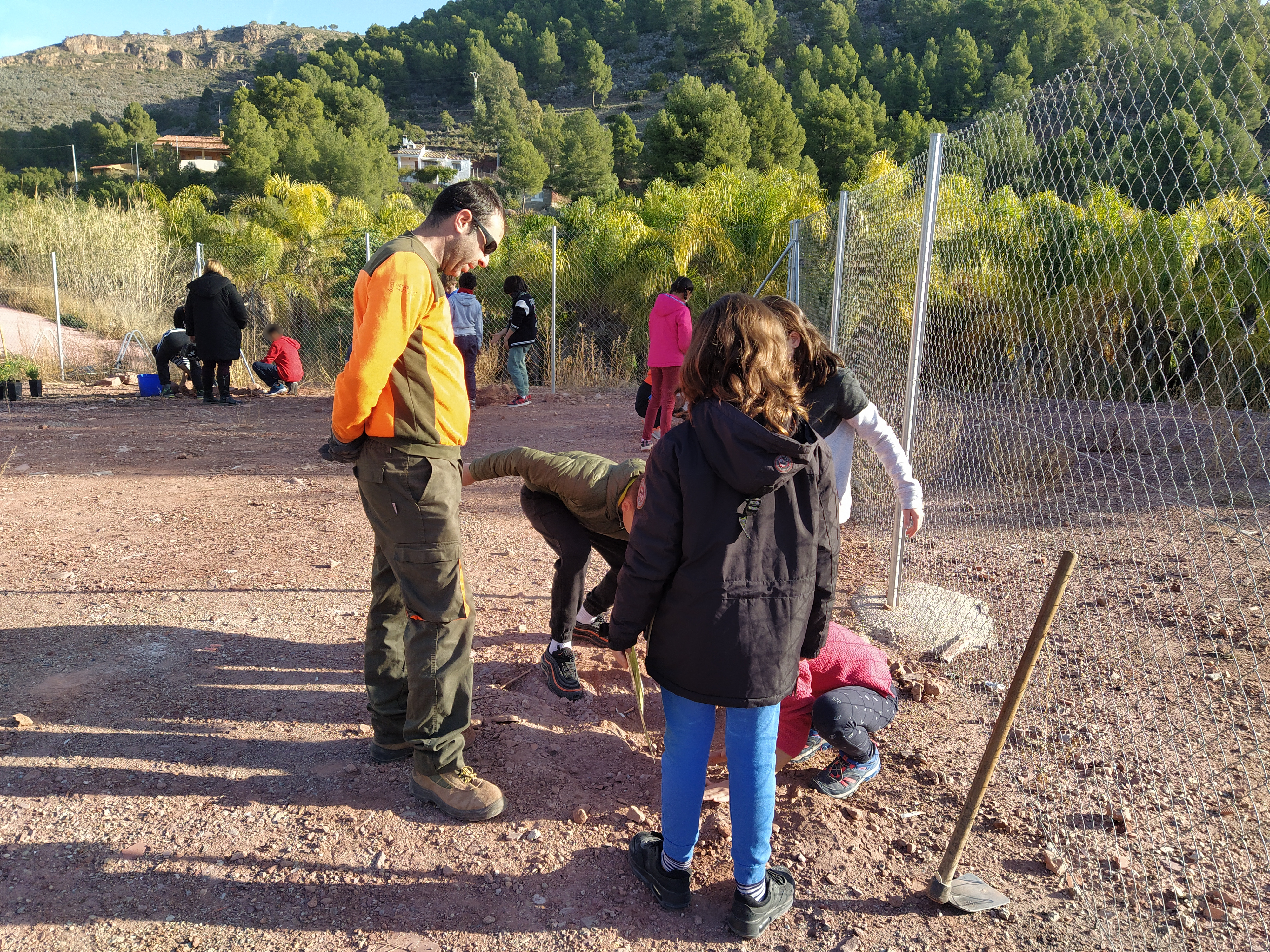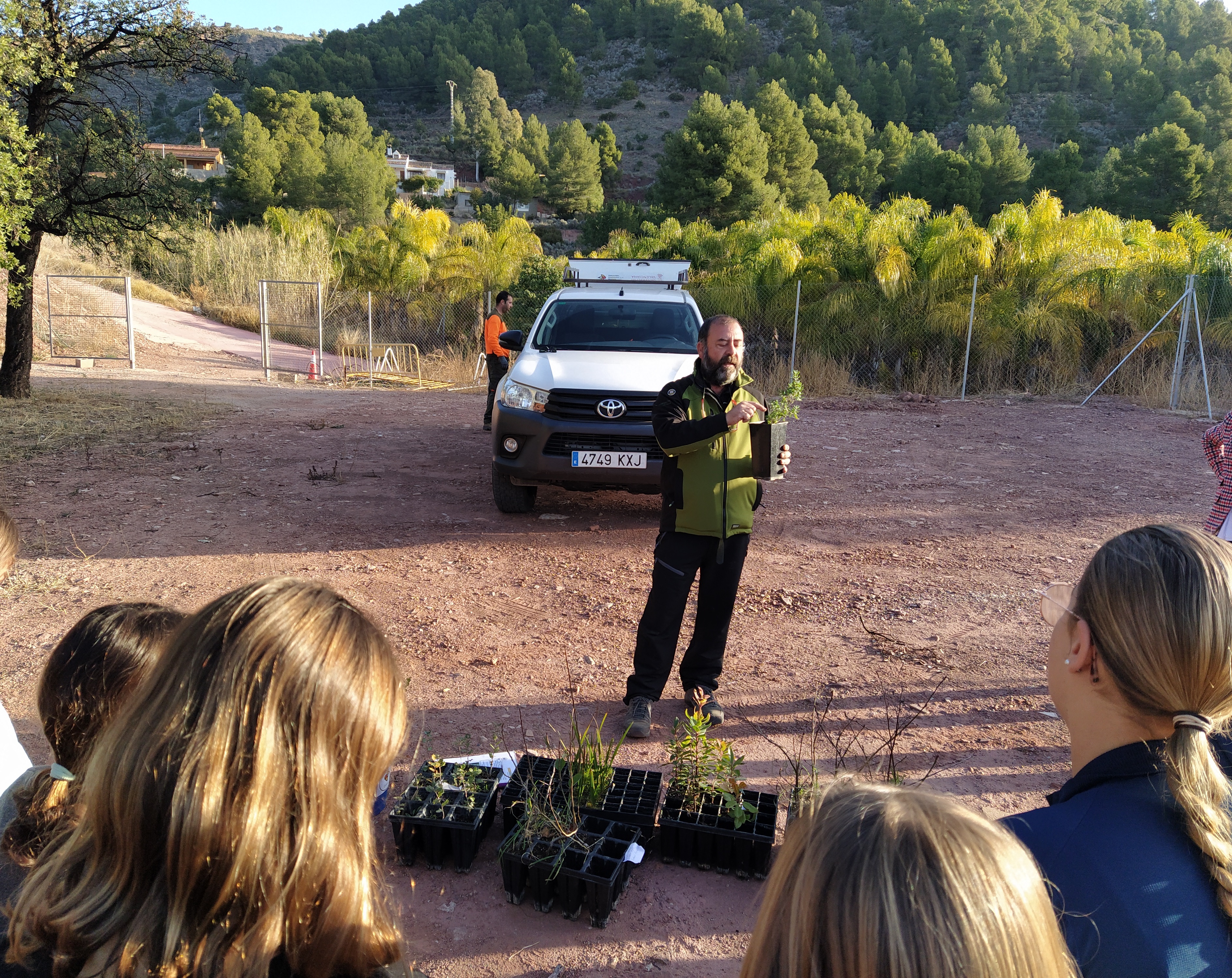 La actividad se ha realizado en el parque anexo al centro educativo y ha contado con la colaboración de técnicos de Parques Naturales de la Comunidad Valenciana, quienes han explicado las especies elegidas, sus características y sus beneficios para nuestro entorno, así como los consejos necesarios para su correcta plantación. Concretamente, se ha trabajado con una planta en peligro de extinción como la jara de Cartagena, con frutales (manzano silvestre, serbal y madroño) y con arbustos autóctonos (palmito, lentisco y aladierno).
