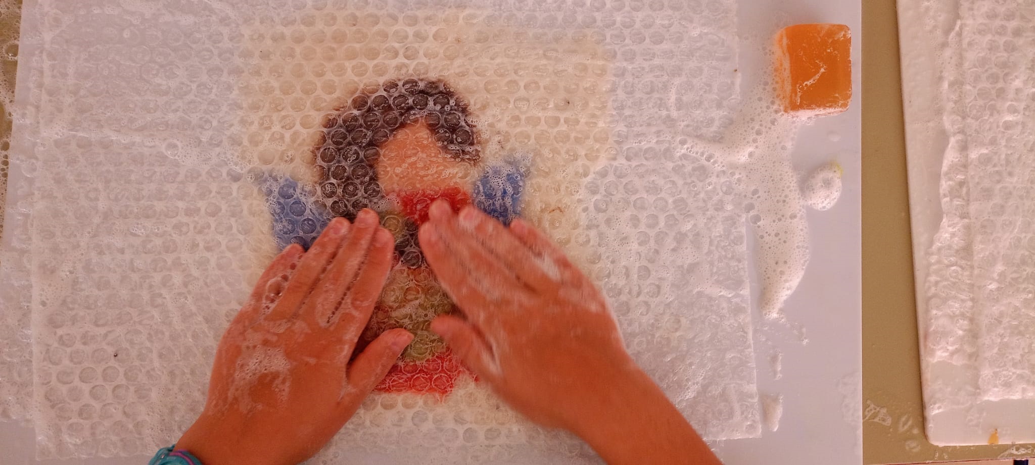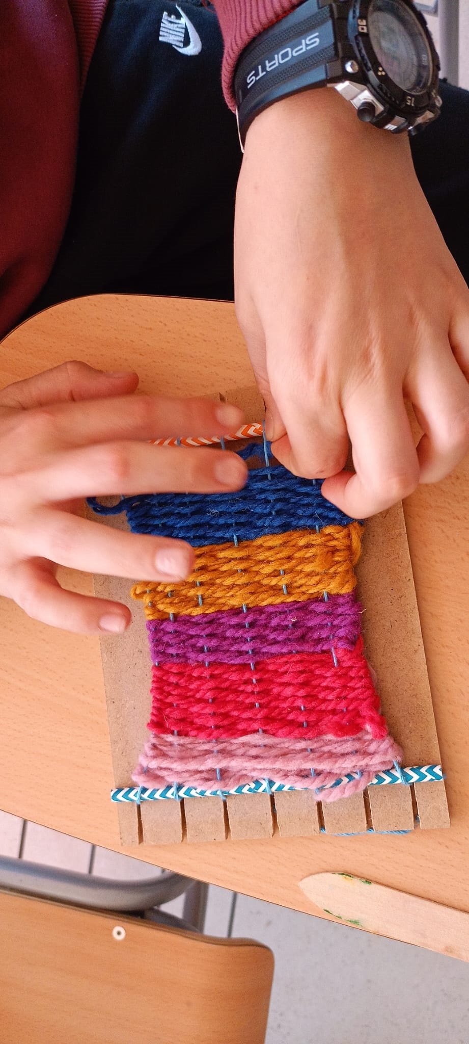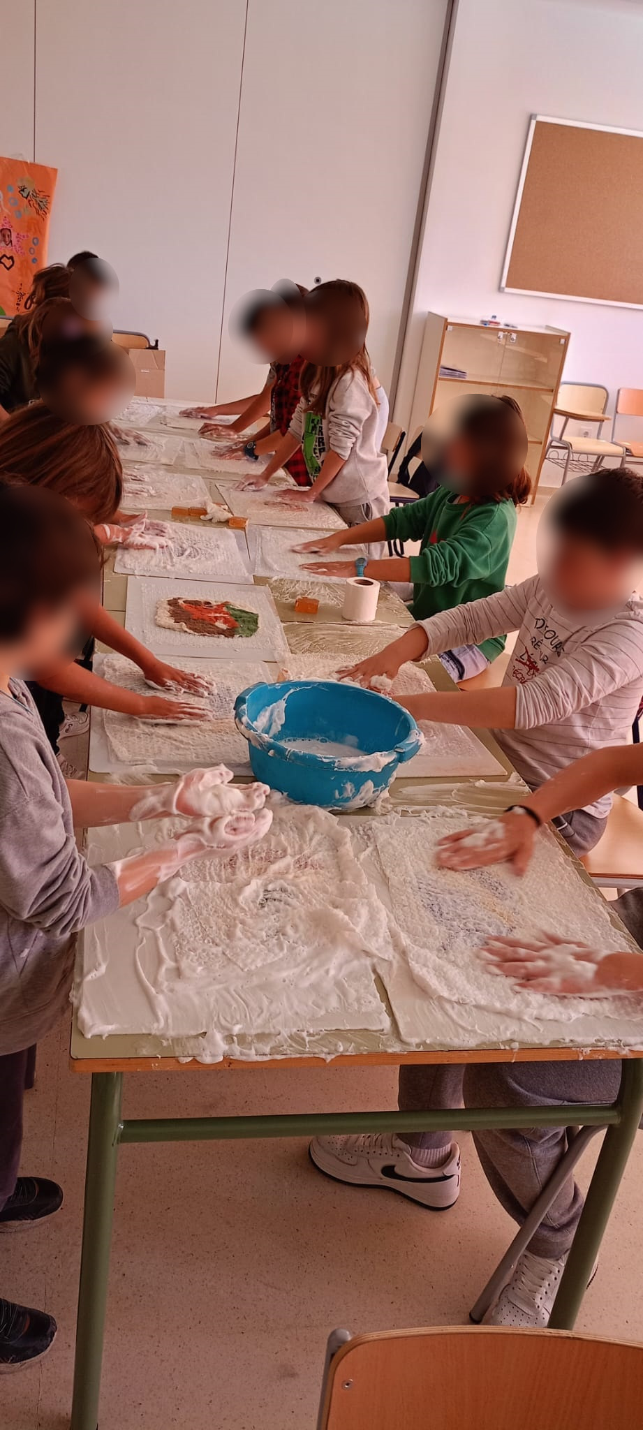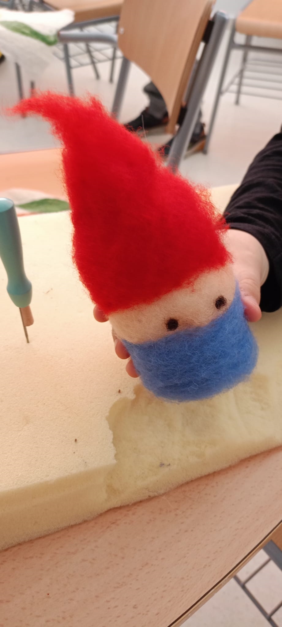 Así, se comenzó con el lavado y el posterior hilado. Posteriormente, tejieron en pequeños telares y con los dedos (elaborando, por ejemplo, una bufanda de casi 6 metros y diferentes tipos de cordones). Durante el tercer y el cuarto día, practicaron la pintura con lana y descubrieron la técnica del afieltrado con agua tibia y jabón. En la última jornada, se narró un cuento con personajes hechos de este material y se confeccionaron unos simpáticos muñecos abatanados con una aguja.