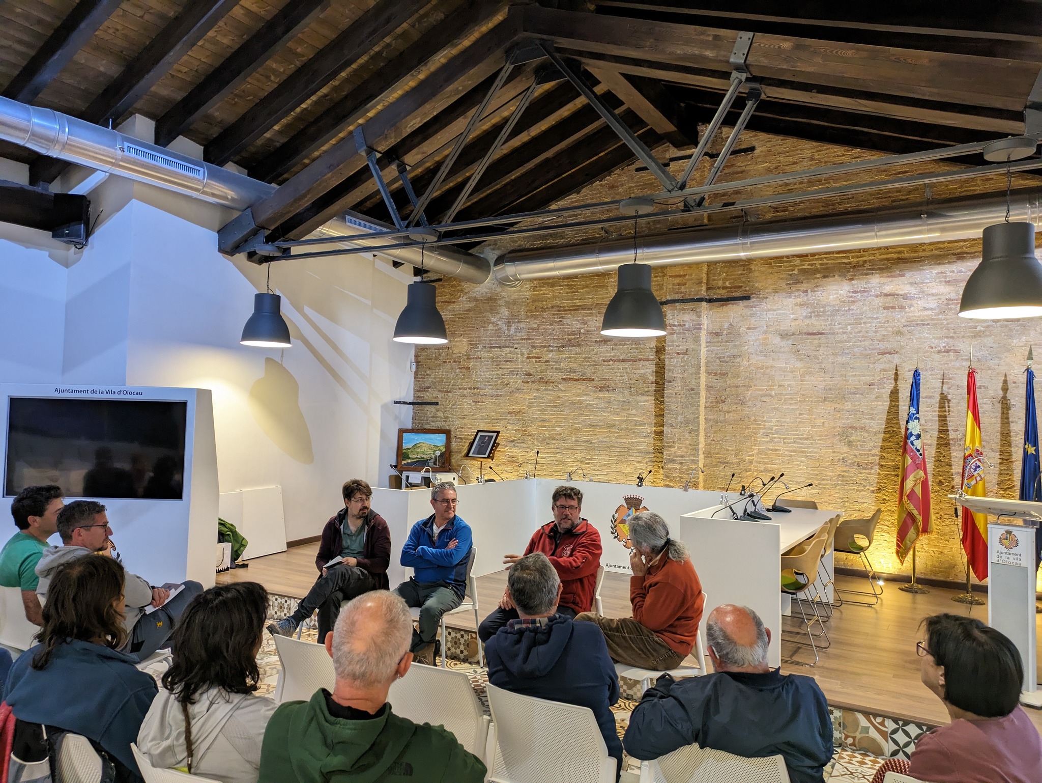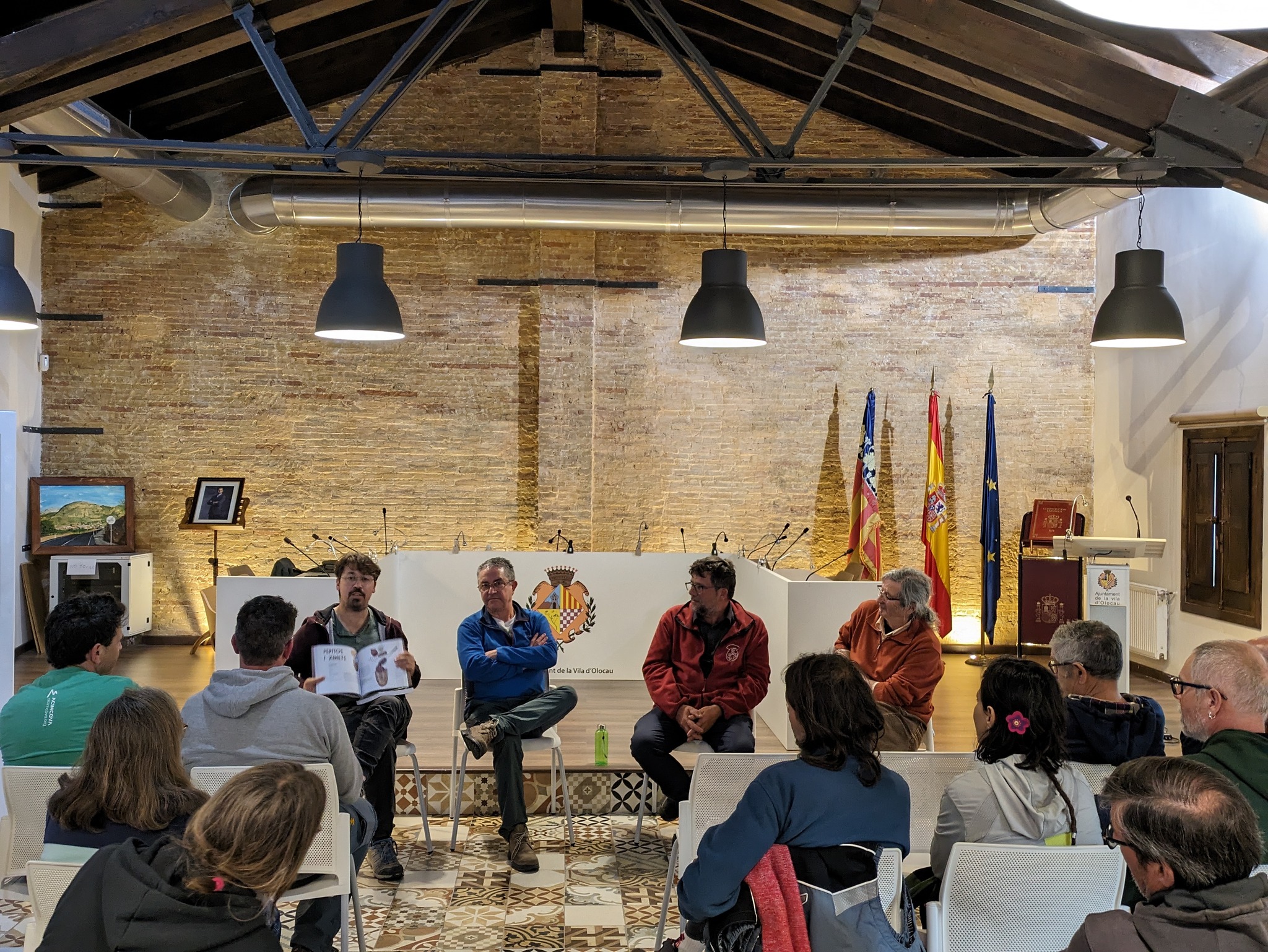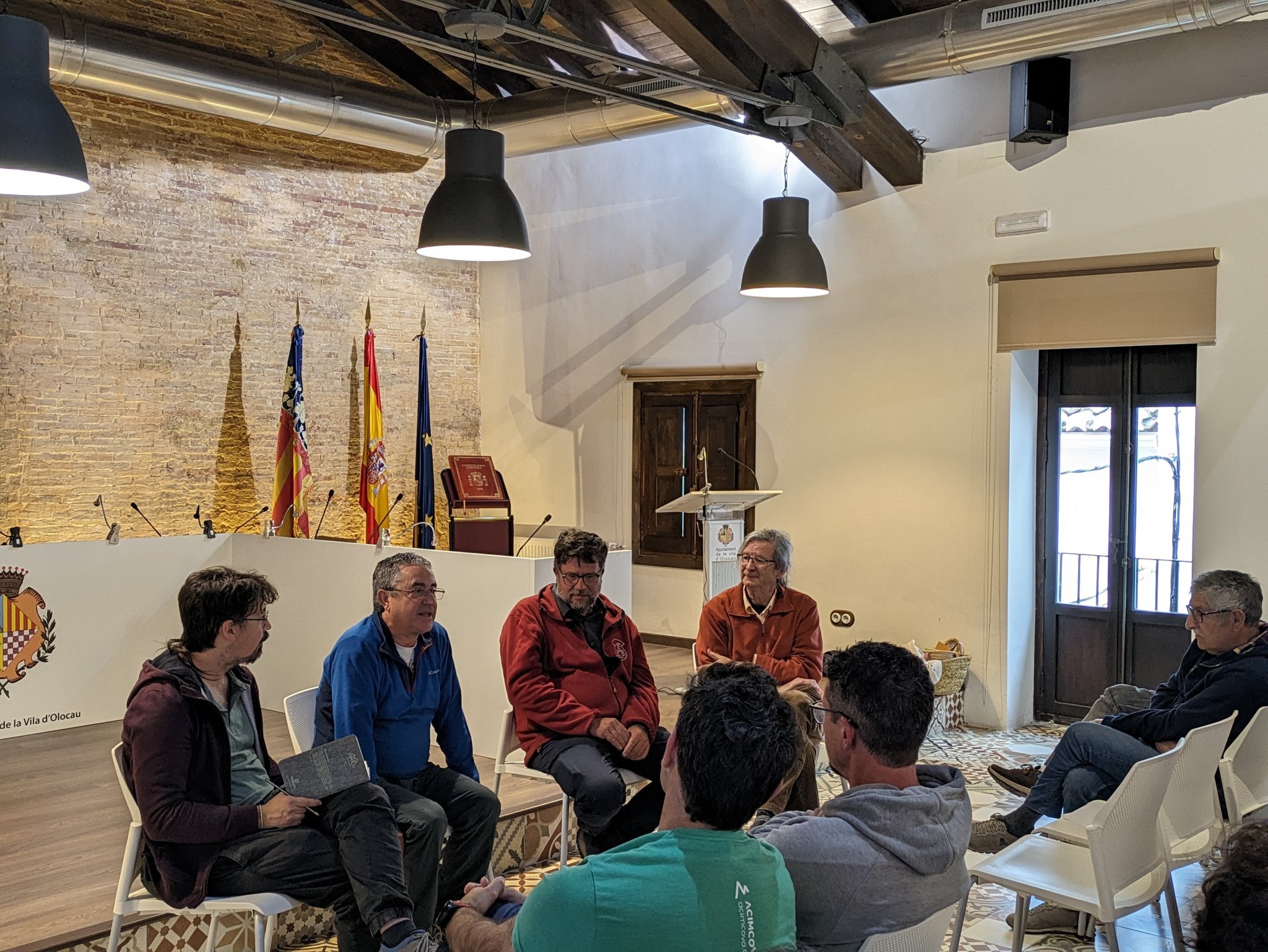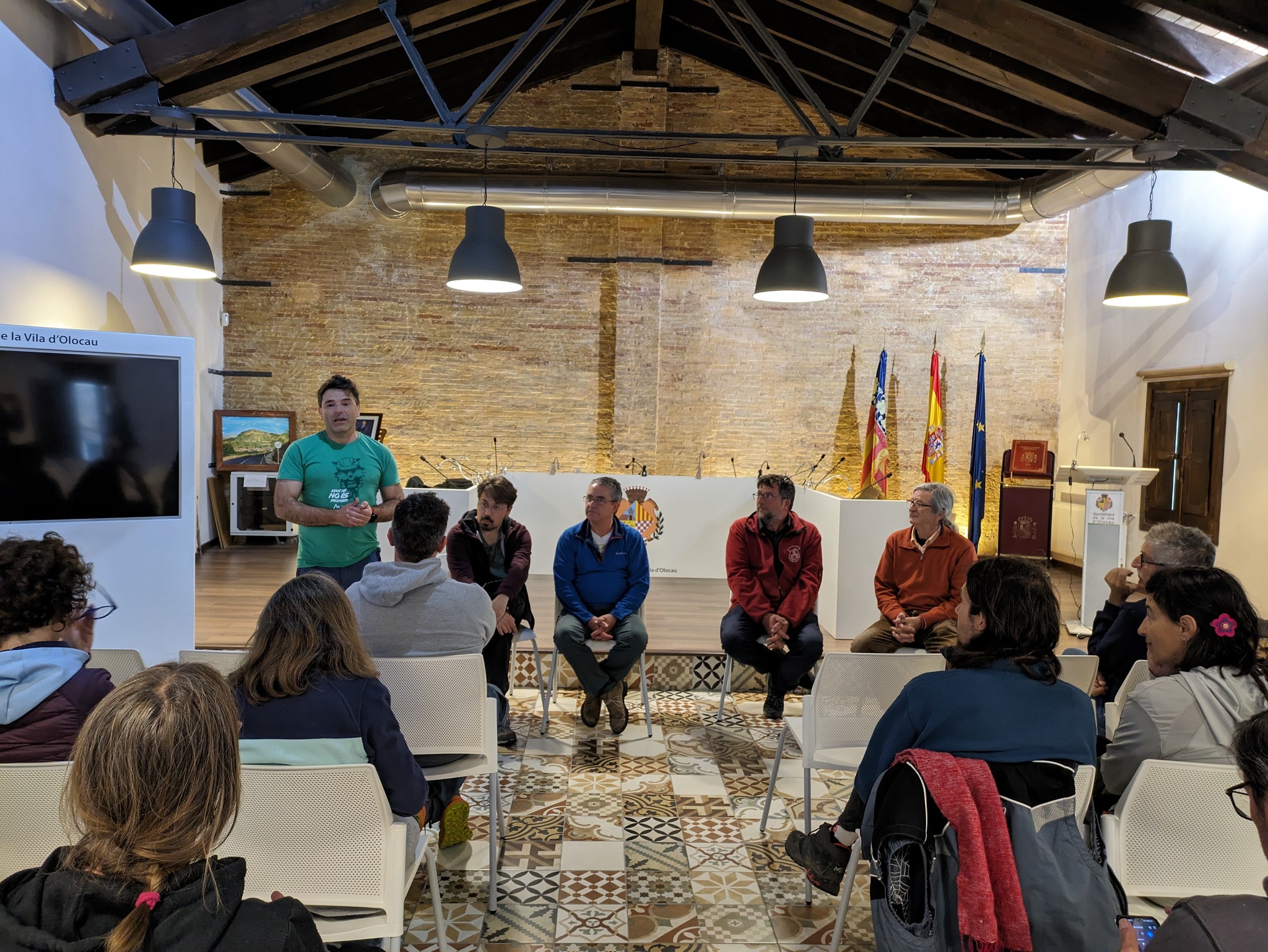 El acto, organizado por el Club de Muntanya Alt Carraixet (CMAC) y la editorial Creaciones Alalimón con la colaboración del Ayuntamiento de Olocau, comenzó con una introducción realizada por Daniel Olmo, secretario del CMAC, quien fue el encargado de dar paso a los participantes: Álvaro Ibáñez (archivista y editor de Creaciones Alalimón), Alonso Verde (investigador de etnobiología) y los dos autores.