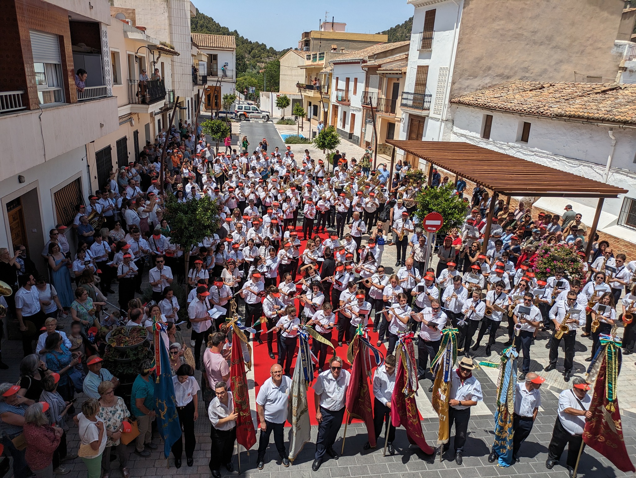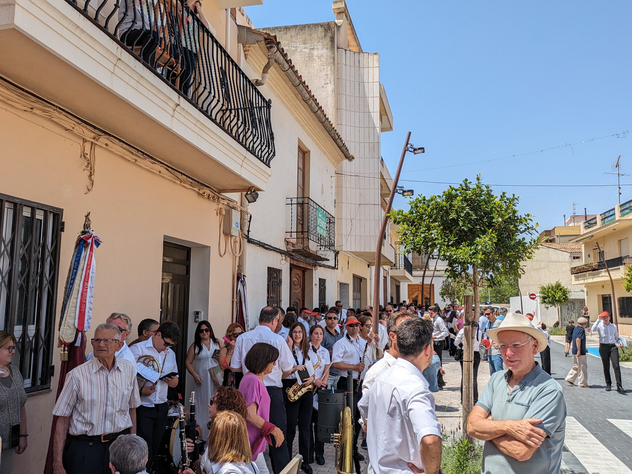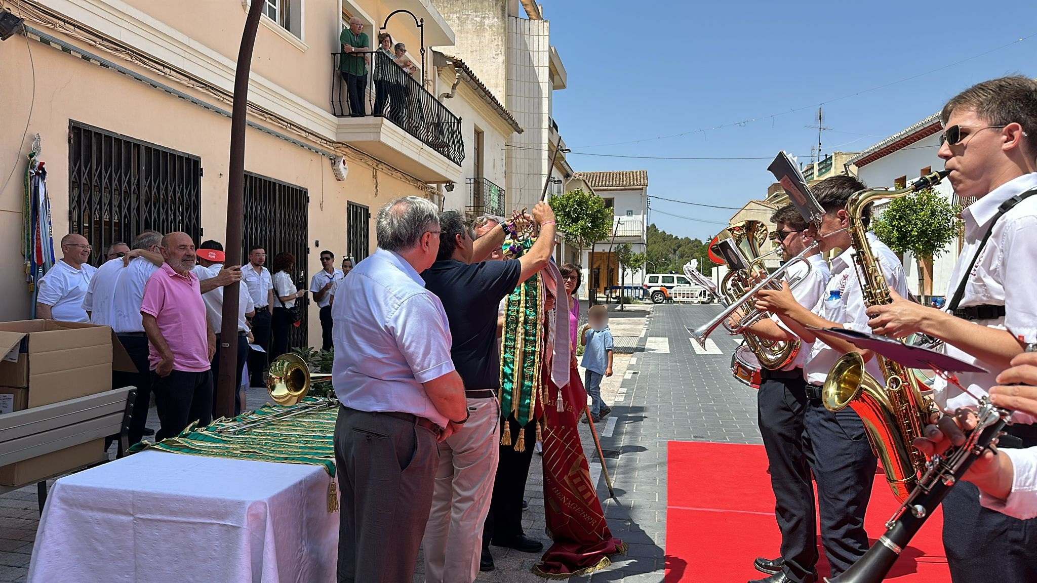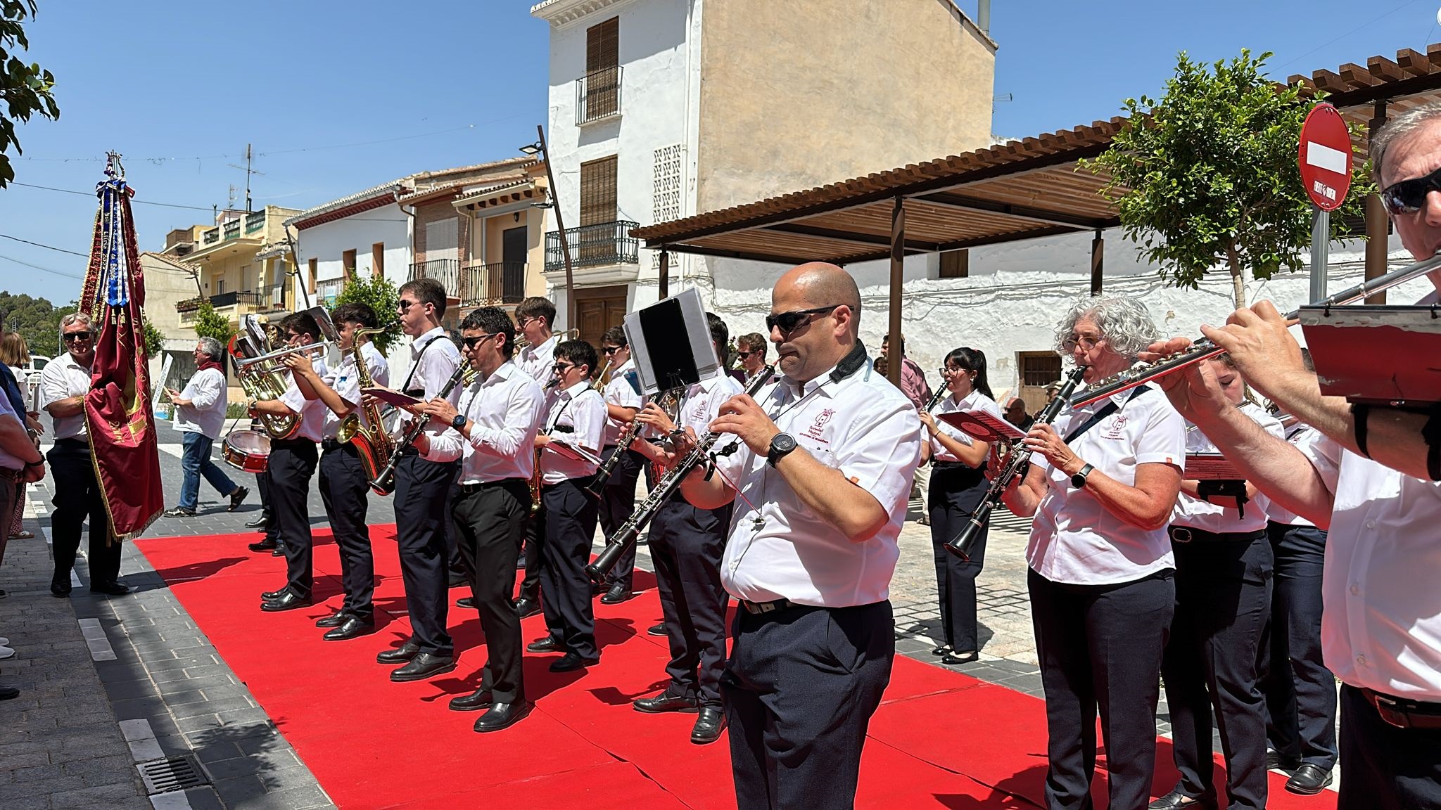 Por su parte, Ropero ha destacado “la importancia social y cultural de la música y de las sociedades musicales”, así como el hecho de que “la vitalidad de un pueblo depende en gran medida de tener una banda, que es lo que hace que su corazón lata”. Por ello, ha querido darles las gracias, en nombre de la localidad, "por vuestro trabajo y vuestra dedicación”. Tras la intervención del primer edil, todos los músicos han tocado juntos delante del Salón de Actos cuatro composiciones muy arraigadas en nuestra tierra: ‘Xàbia’, ‘Chimo’, ‘Valencia’ y ‘La Amapola’.