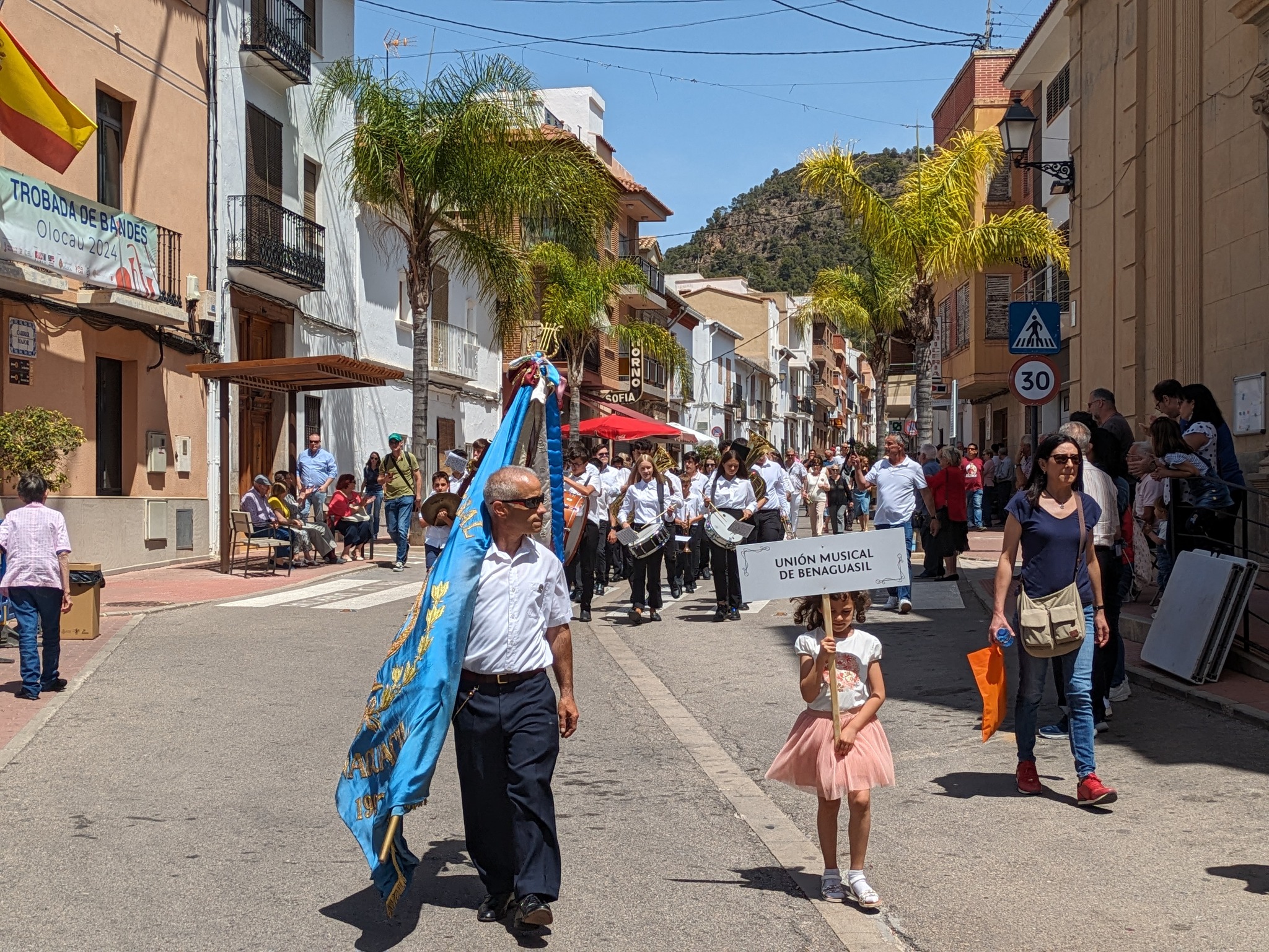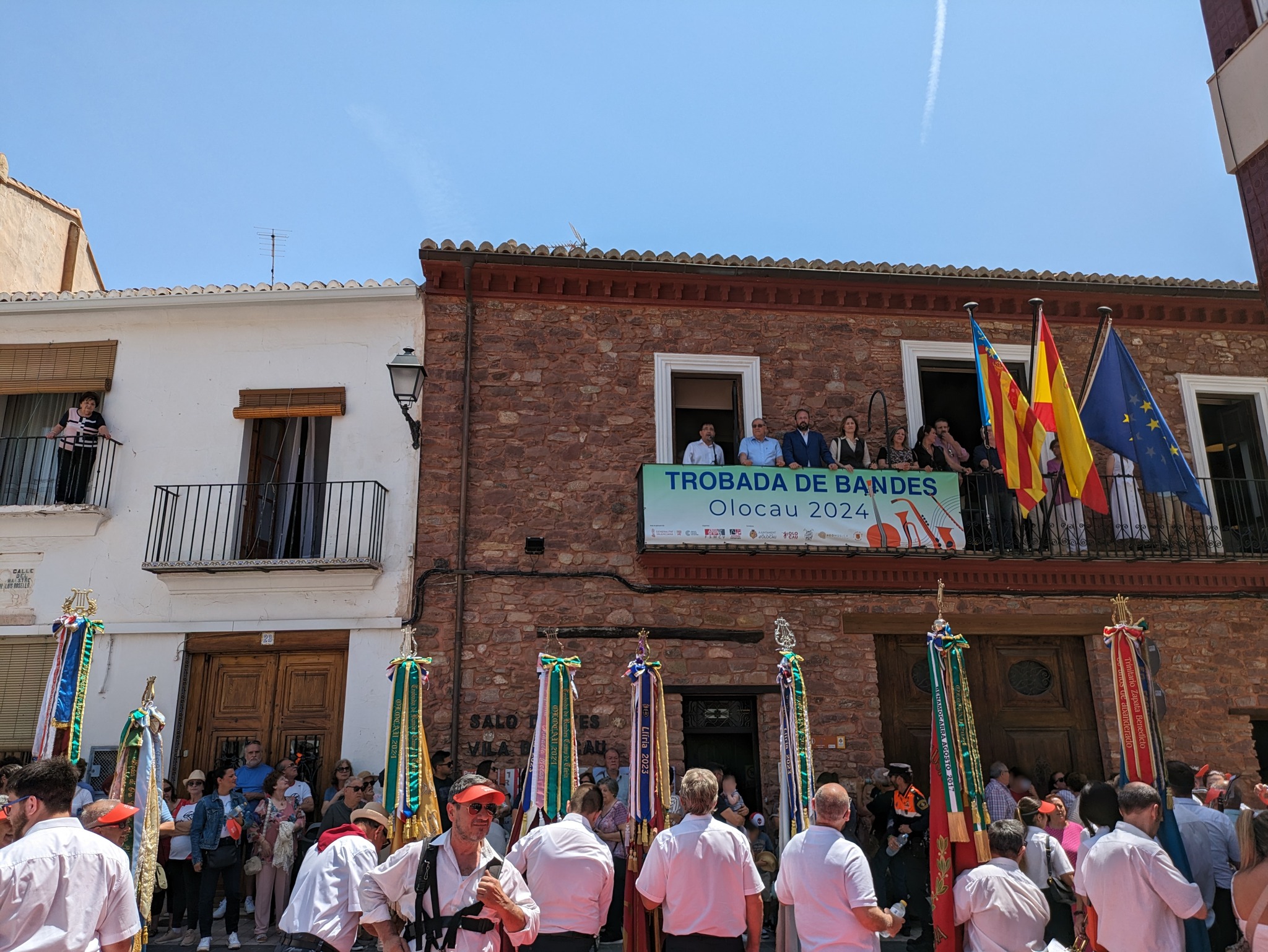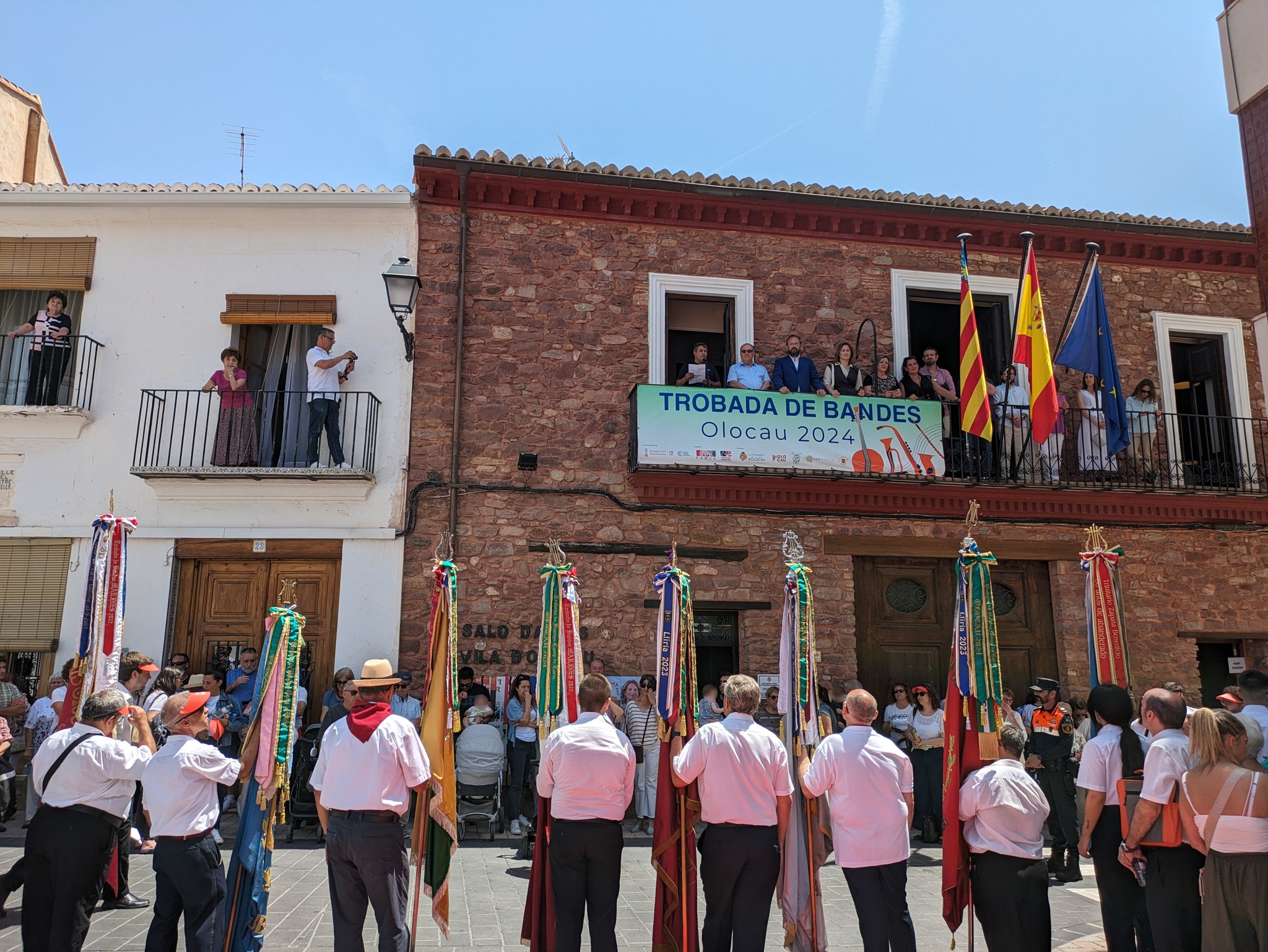 El desfile ha finalizado en la plaza Cervantes, lugar en el que las bandas han recibido las cintas conmemorativas del Encuentro. A continuación, el presidente de ‘La Melodía’, Guillermo Berga, y el alcalde de Olocau, Antonio Ropero, han realizado dos breves discursos. Berga ha querido agradecer la asistencia de todas las sociedades musicales, ha transmitido su deseo de que sigan con su labor y de “que la música no pare”, y ha recordado a Rafa Montesinos, su predecesor en el cargo, quien falleció en 2021 y fue una persona muy querida en la localidad.