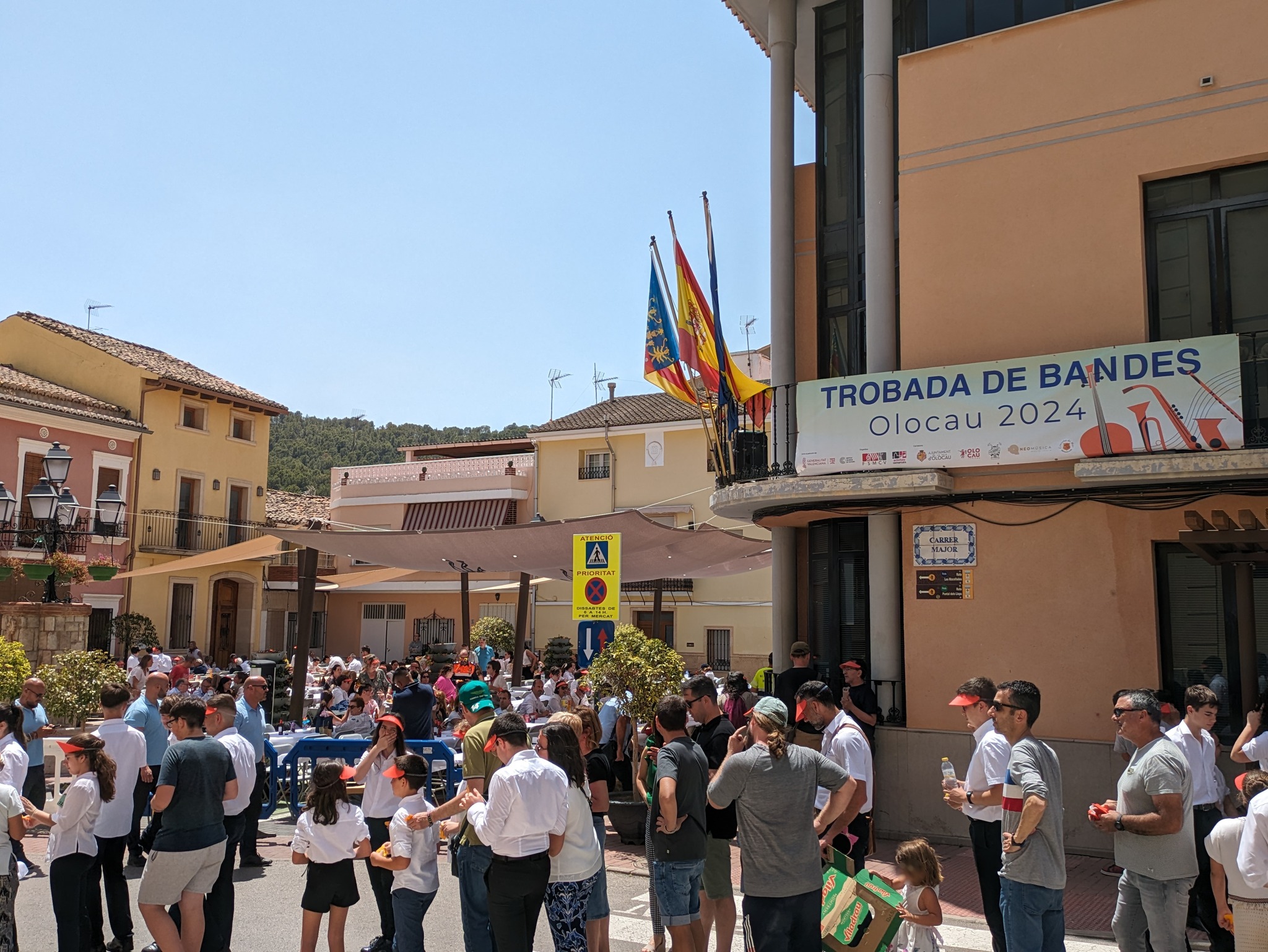 Para finalizar esta jornada, todos los participantes se han dirigido a la Plaza Mayor. Allí, ha tenido lugar una comida de hermandad en la que han podido disfrutar de una paella y que ha servido como punto final a un día en el que Olocau ha sido la capital comarcal de la música.