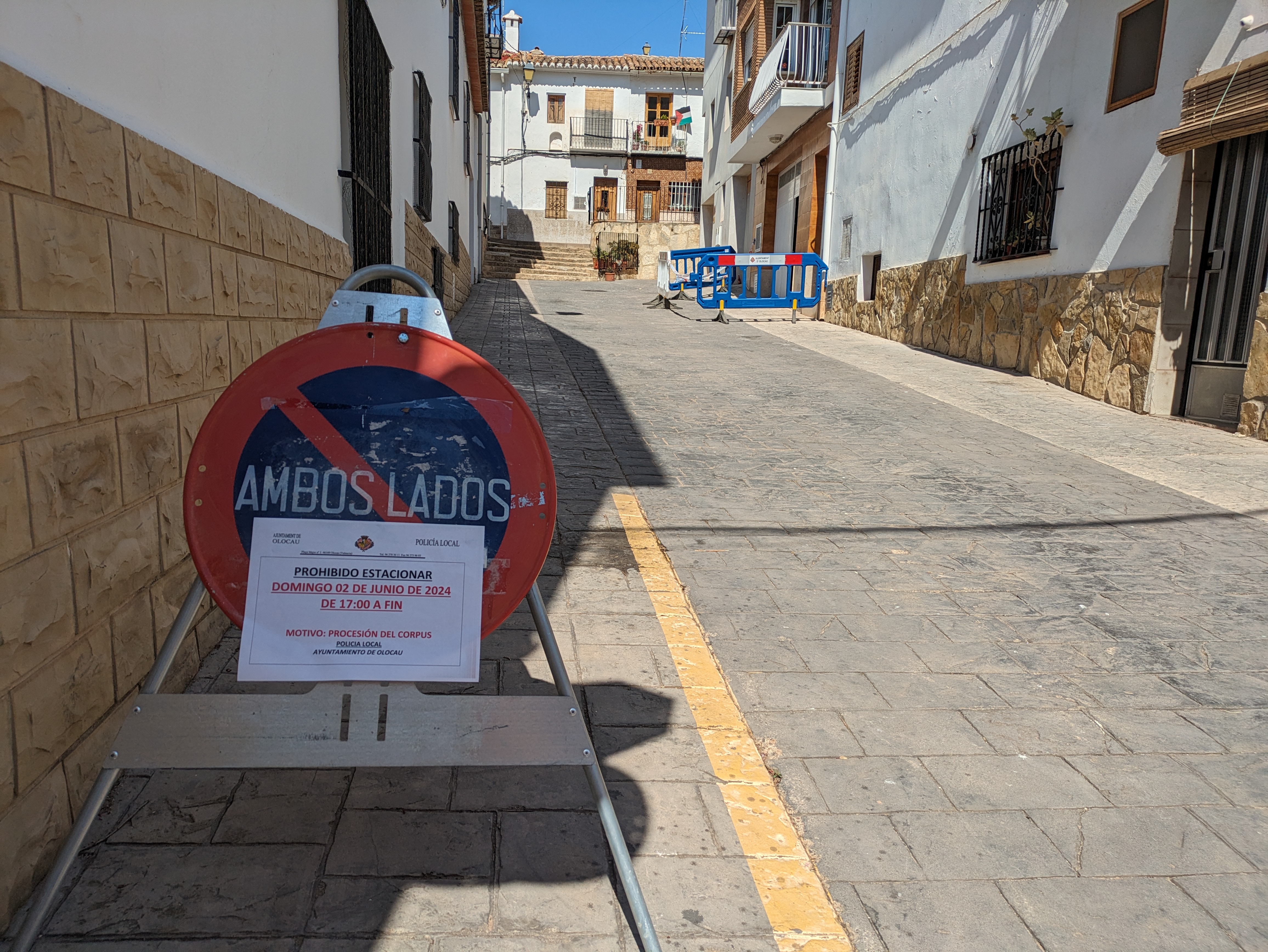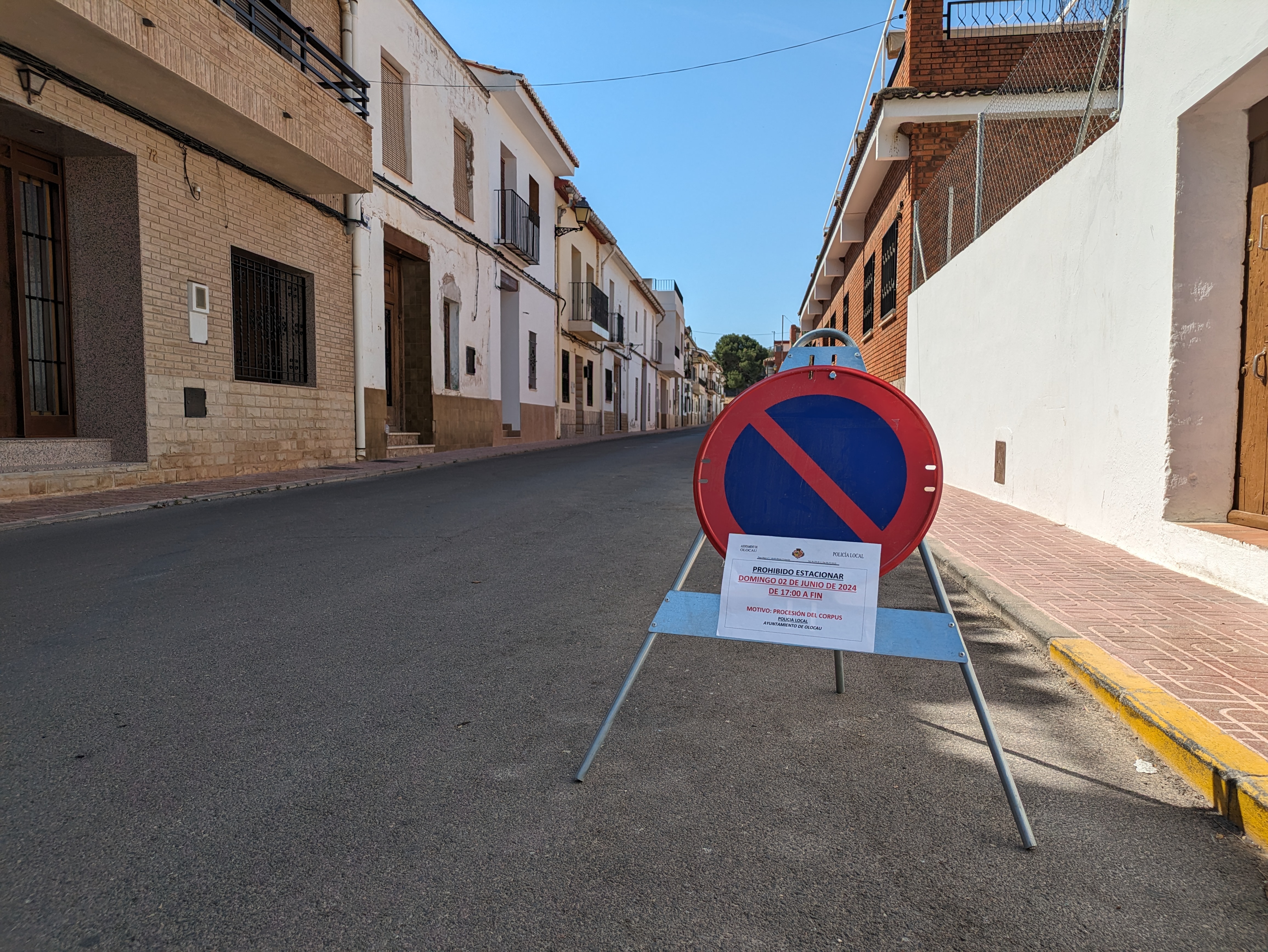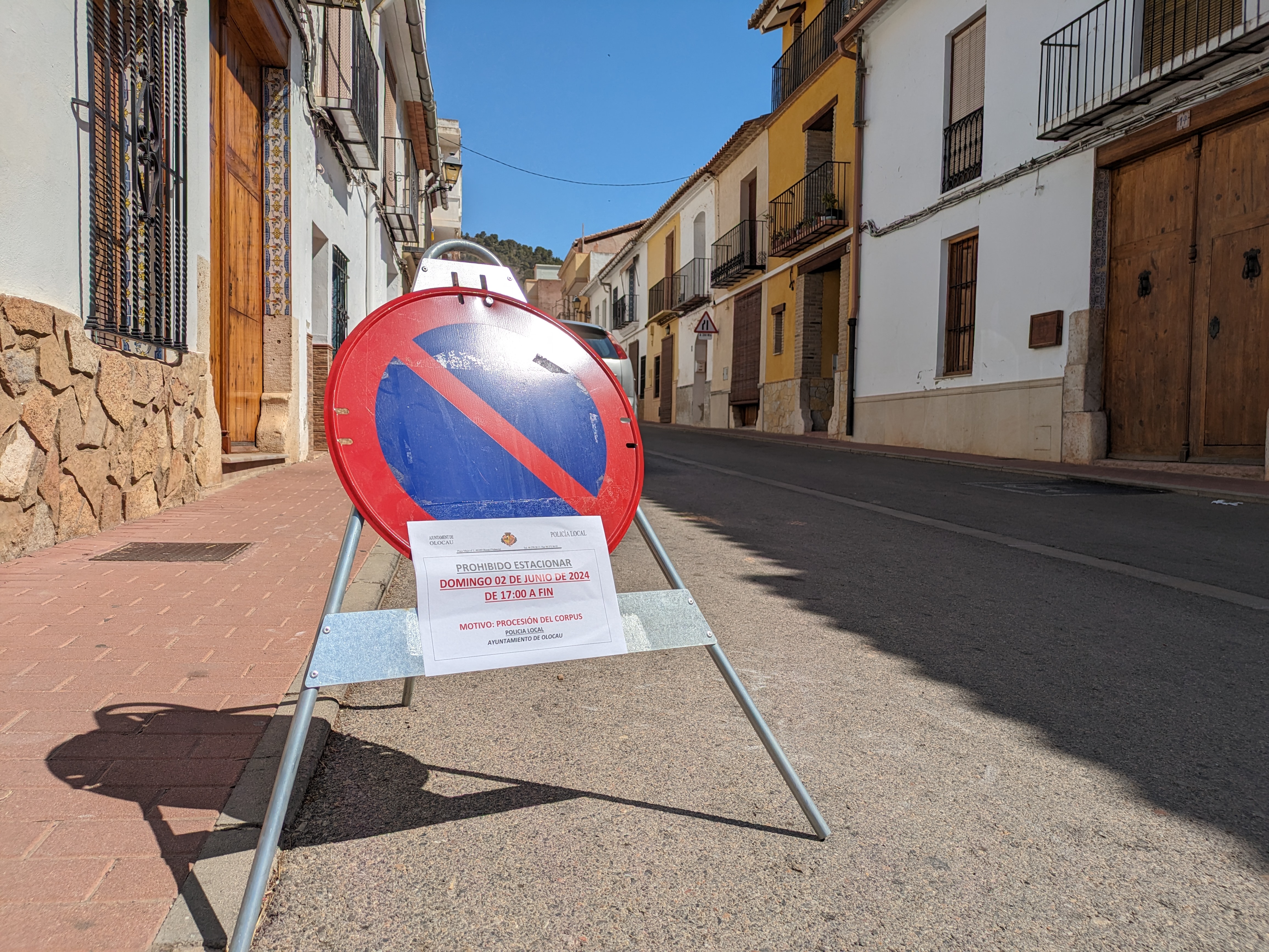 El Ayuntamiento de Olocau informa de que, con motivo de la Procesión del Corpus, que tendrá lugar este domingo, 2 de junio, por la tarde, habrá, desde las 17:00 horas y hasta su finalización, prohibición de estacionar vehículos en los siguientes puntos de nuestro pueblo: calle Mayor, calle San Juan Bautista, calle San José, calle San Diego, calle Cueva Santa, calle Les Eres, calle San Antonio, calle San Roque, plaza Cervantes, calle Maestro Roselló y plaza Mayor.