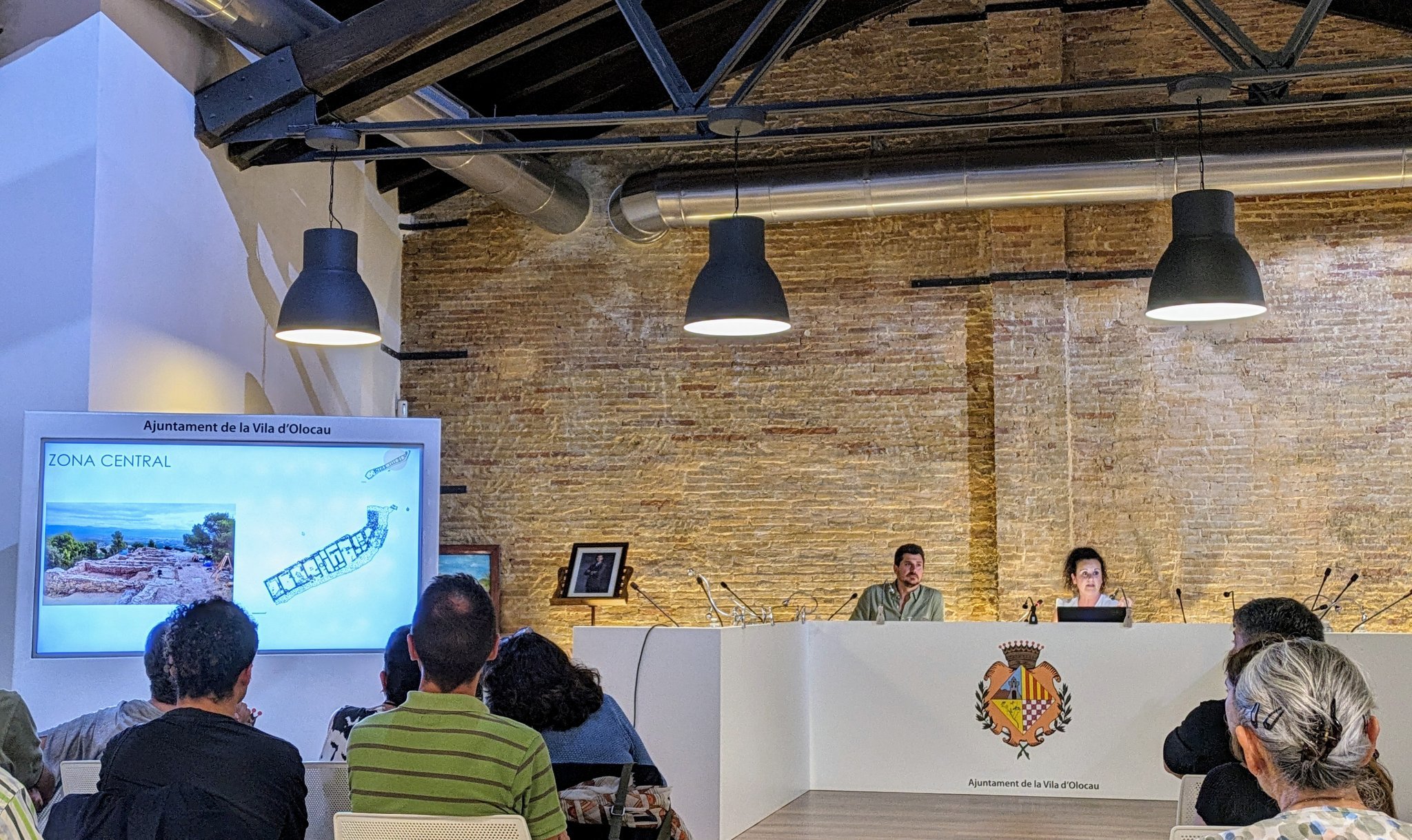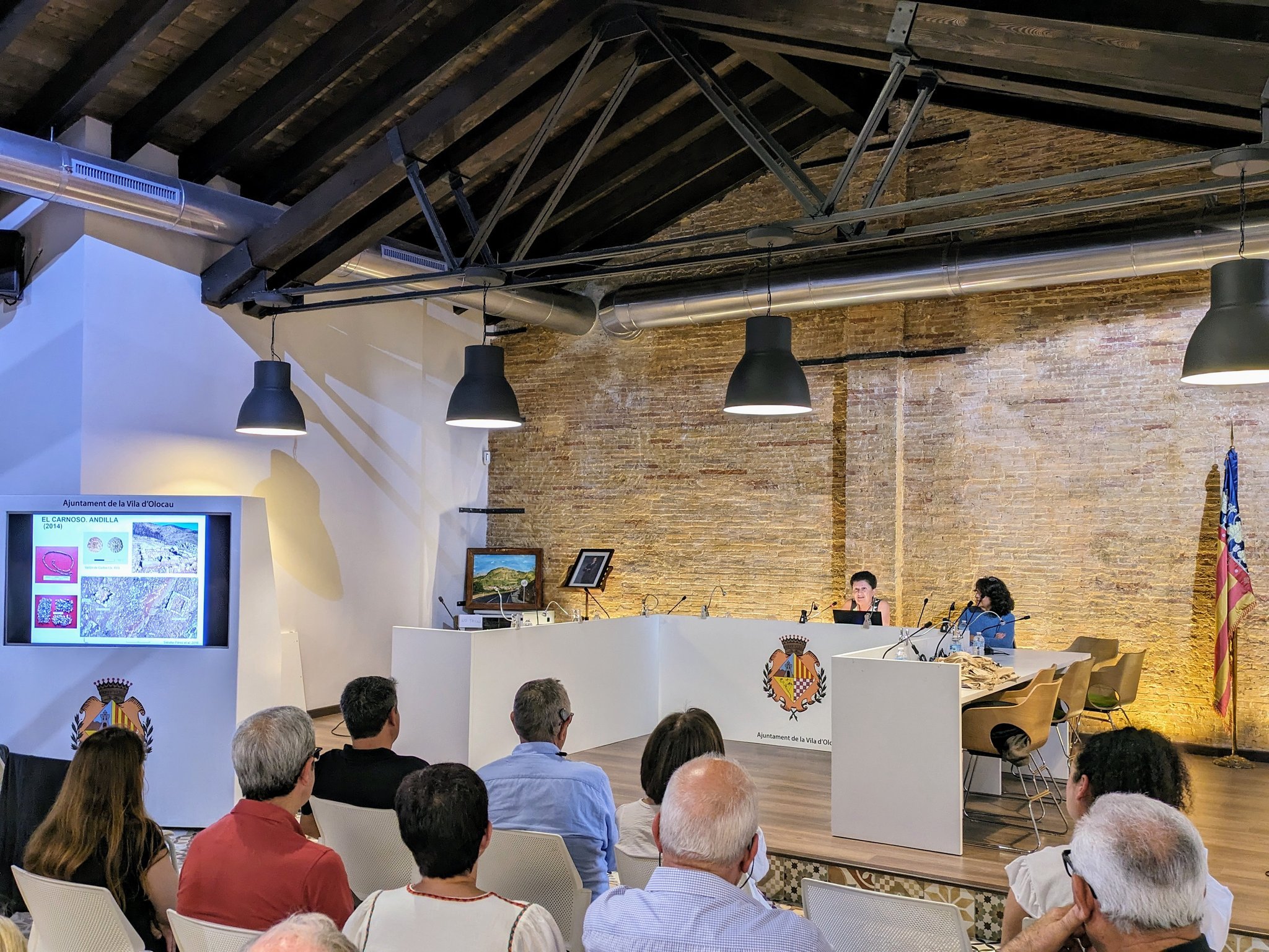 El inicio del acto contó con las intervenciones de David Quixal (Departamento de Prehistoria, Arqueología e Historia Antigua de la UV), de José Mayans (director de la oficina de Llíria de Caixa Popular), de Esther Alba (vicerrectora de Cultura y Sociedad de la UV) y del primer edil de Olocau, quienes manifestaron su satisfacción por la puesta en marcha de esta iniciativa enmarcada en el proyecto de universidades estacionales.