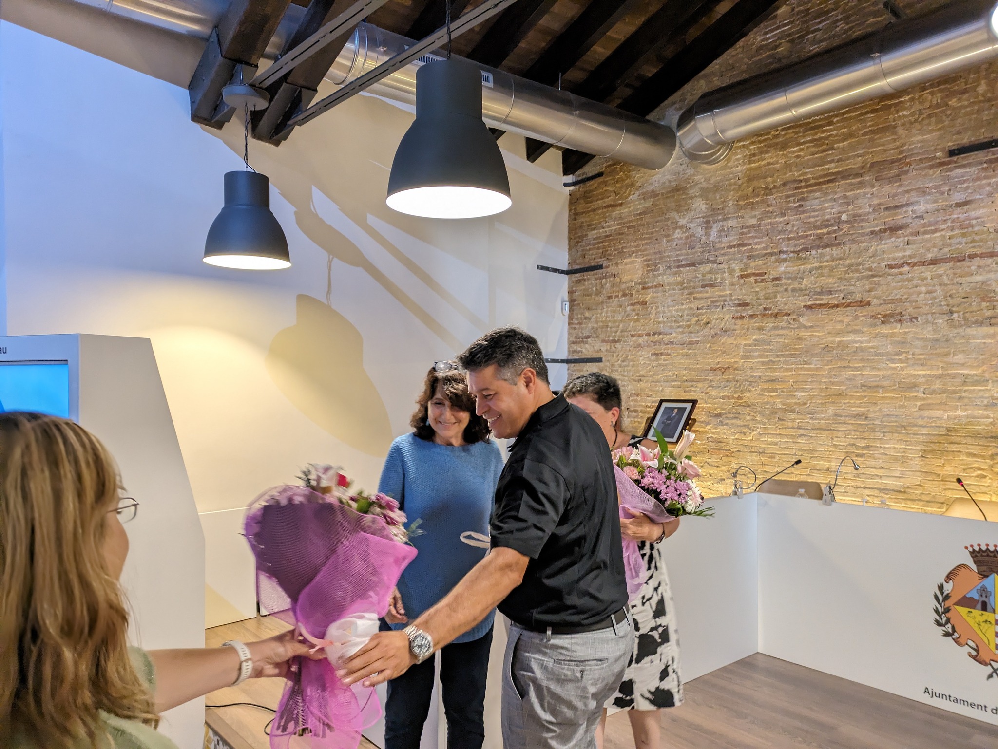 Una vez acabadas las ponencias, todas las personas que intervinieron participaron en una mesa redonda con la que los asistentes pudieron formularles preguntas. Tras ella, tuvo lugar un momento muy especial con el homenaje que recibieron Helena Bonet y Consuelo Mata de parte del Ayuntamiento, de la Universidad de Valencia, así como de los investigadores e investigadoras y del alumnado con los que han trabajado. Un reconocimiento por su extraordinaria trayectoria y en el que se les hizo entrega de dos ramos de flores y de las dos primeras botellas del vino ‘Huella de Nauiba’.