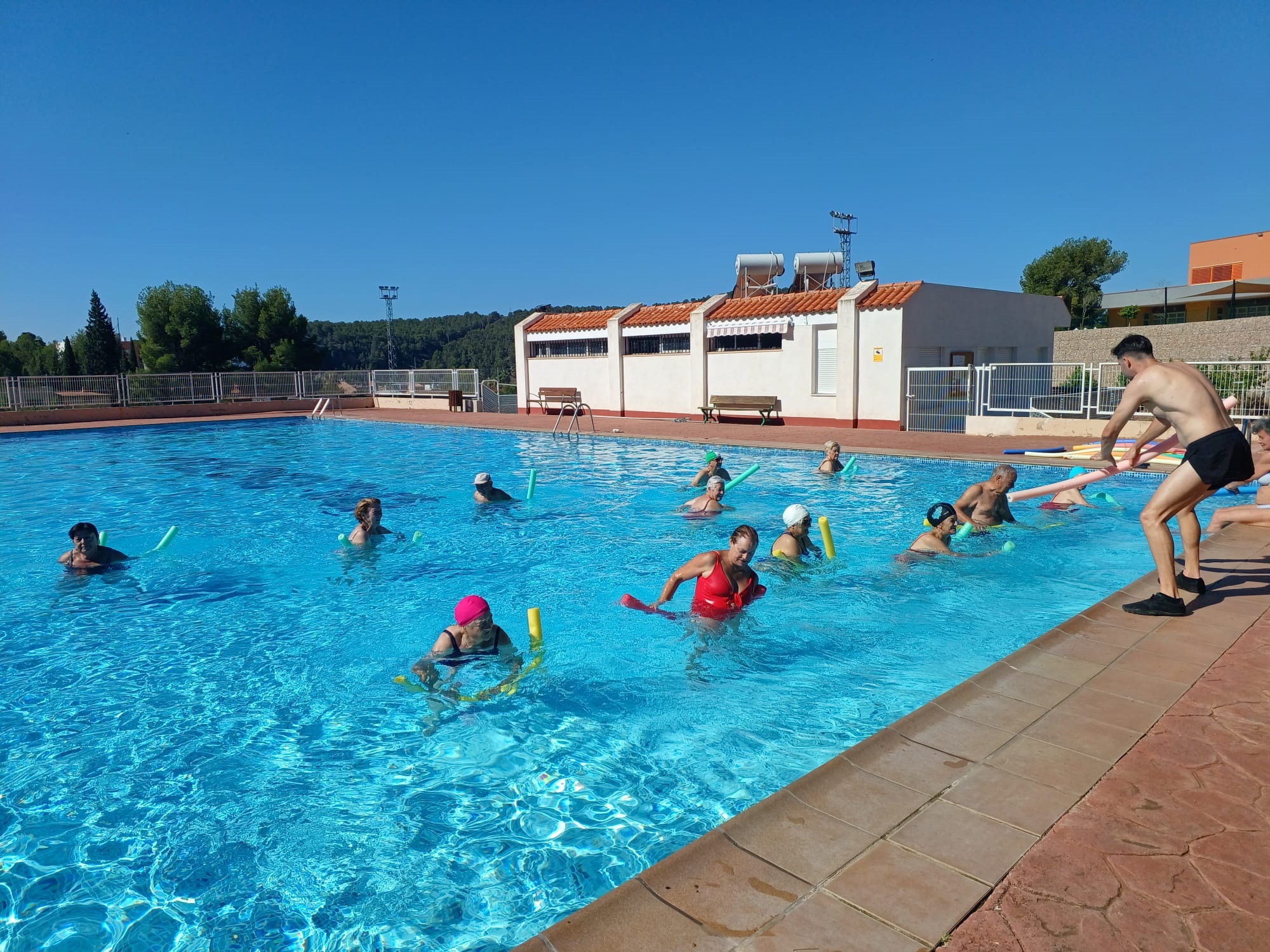 Informamos de que, con el inicio de la temporada estival, el servicio de gimnasia de mantenimiento para personas mayores ha comenzado sus sesiones en la Piscina Municipal. Esta actividad gratuita la ofrece el Ayuntamiento a través de su Concejalía de Servicios Sociales y mediante un contrato con Eduardo Martínez Agustí, vecino de nuestro municipio.