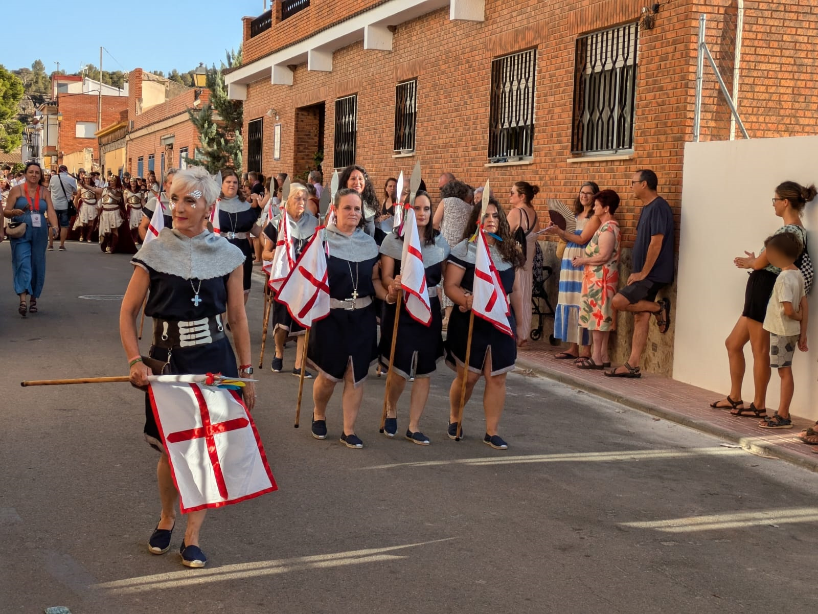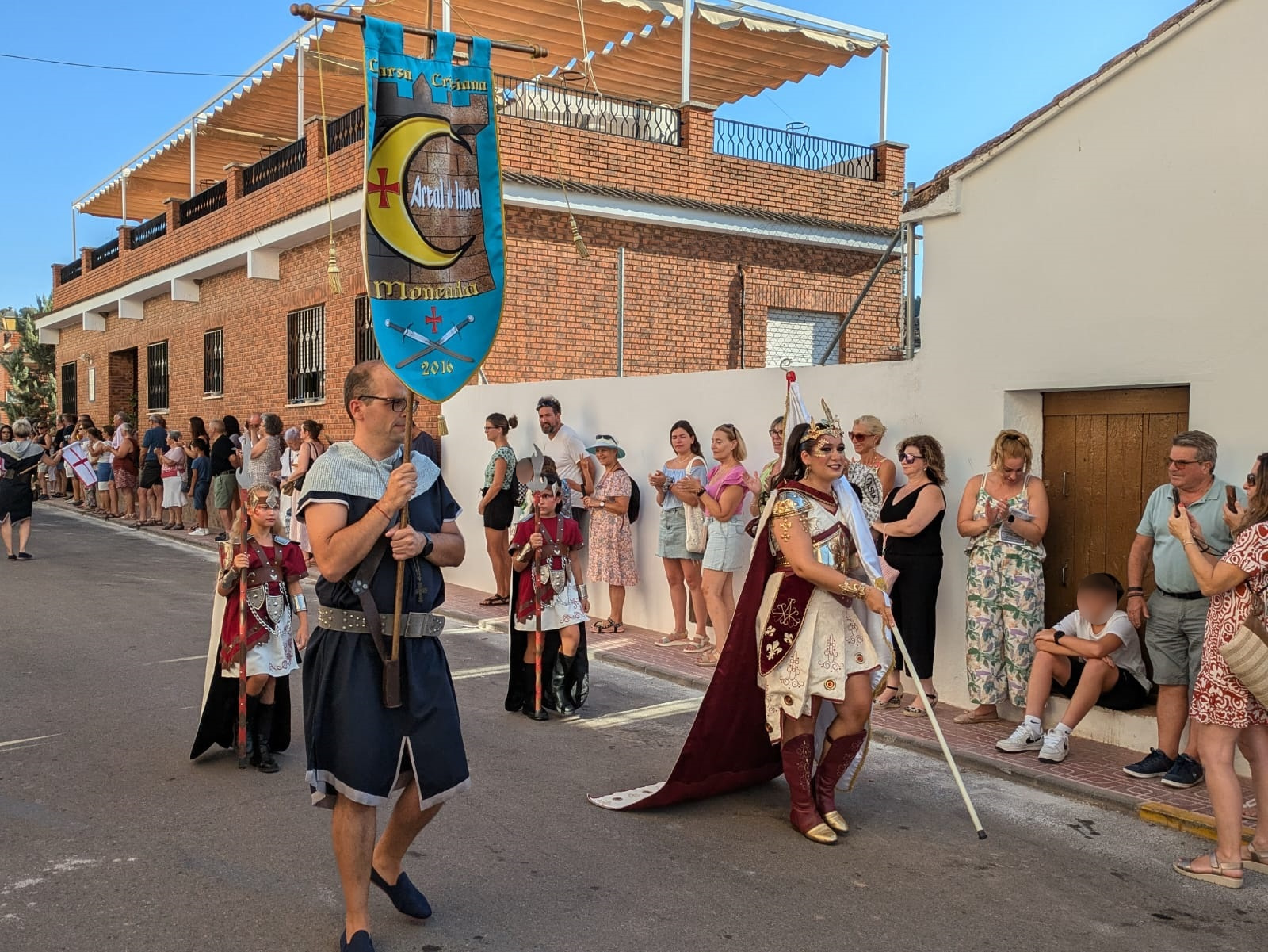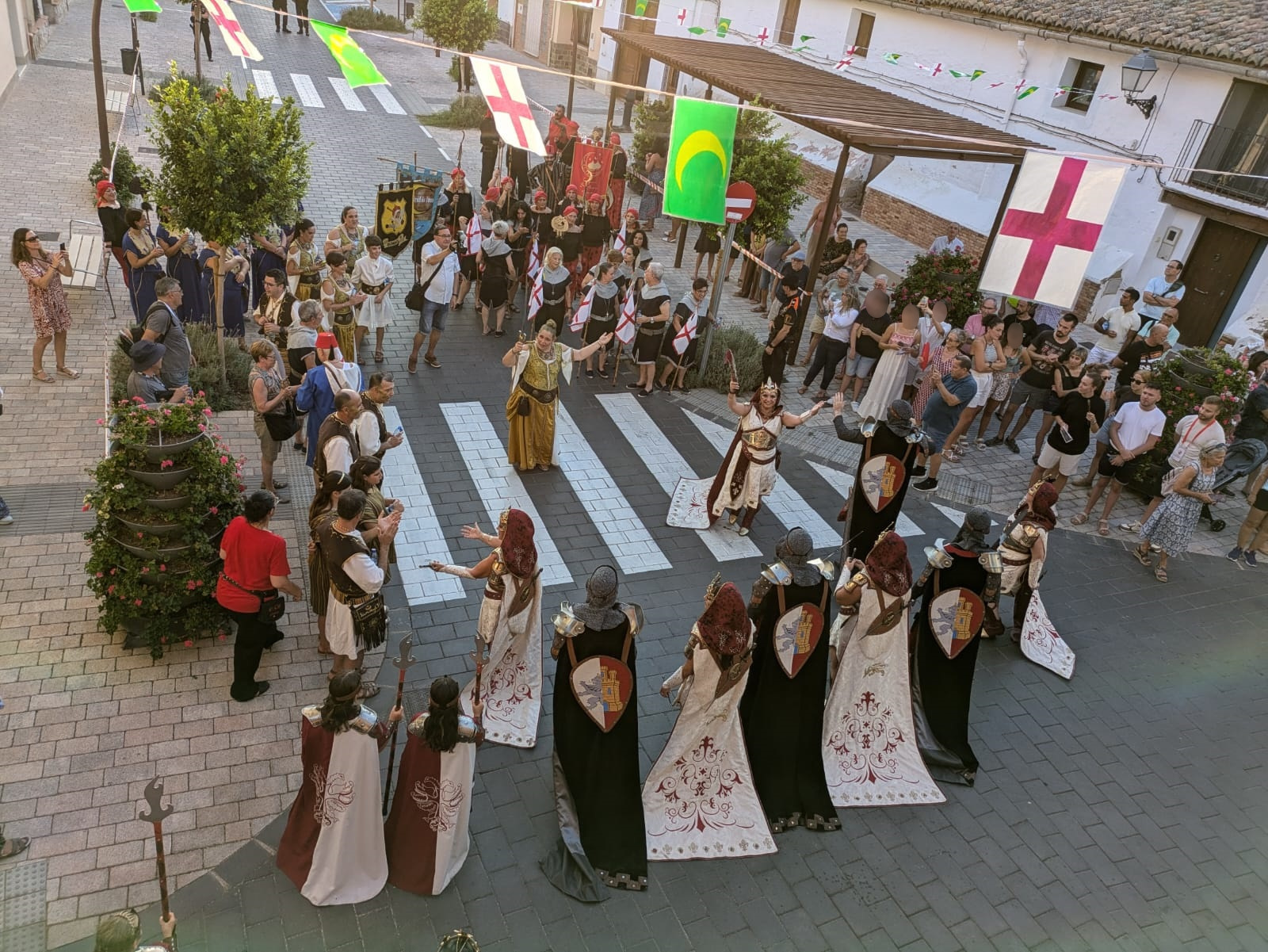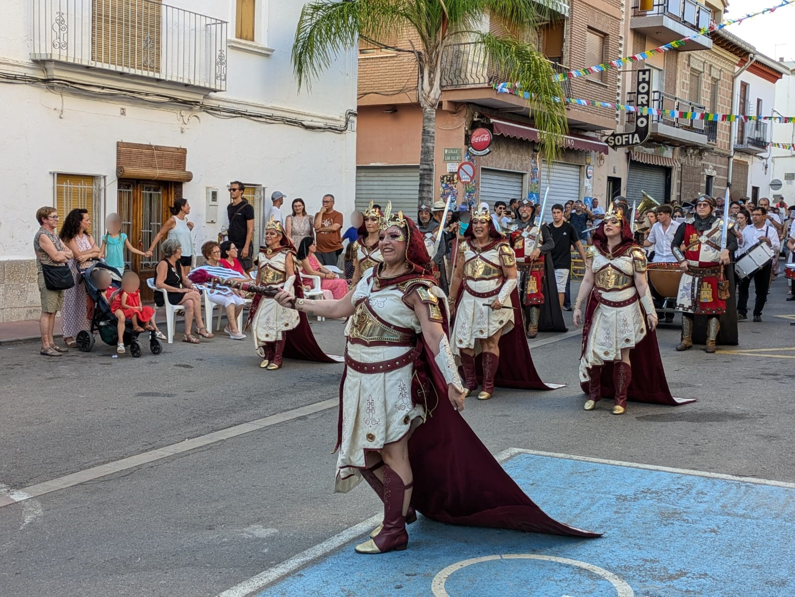 Así, a lo largo del recorrido, los miembros de las comparsas Almohades (Moncada), Ben-Amires (Moncada) y Sumayl’s (Torrent), por parte del bando Moro, y Artal de Luna (Moncada) y El Cid (Olocau), por parte del bando Cristiano, ofrecieron una marcha de gran belleza que llenó las calles de alegría. Además, la música interpretada por la Xaranga Valencia y por la Banda de la Agrupación Musical ‘La Melodía’ creó una magnífica atmósfera y animó a todas personas que acudieron a presenciar el evento.