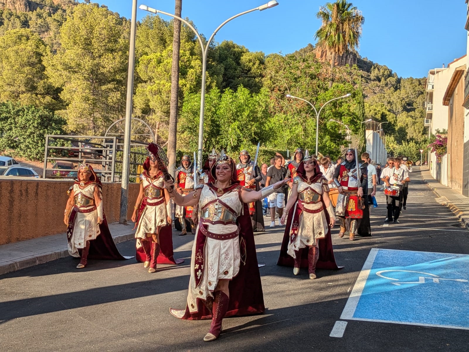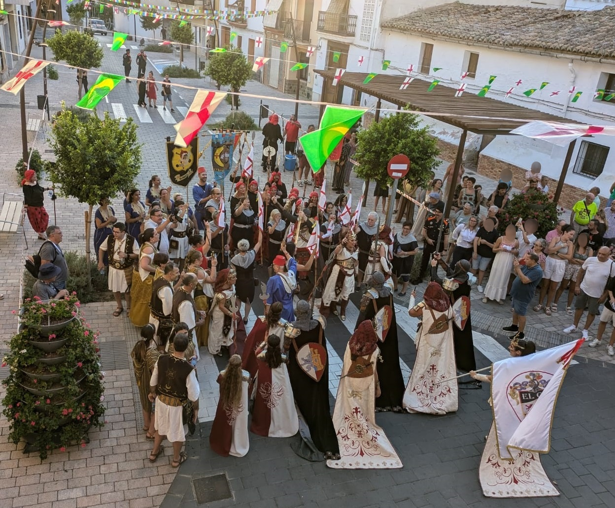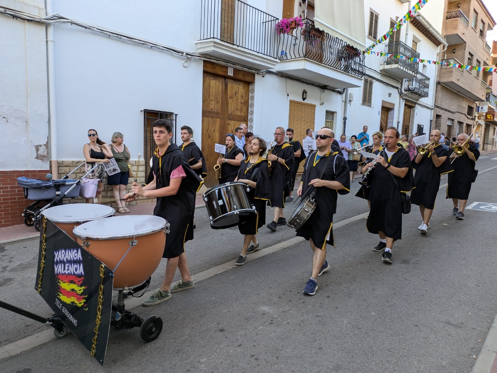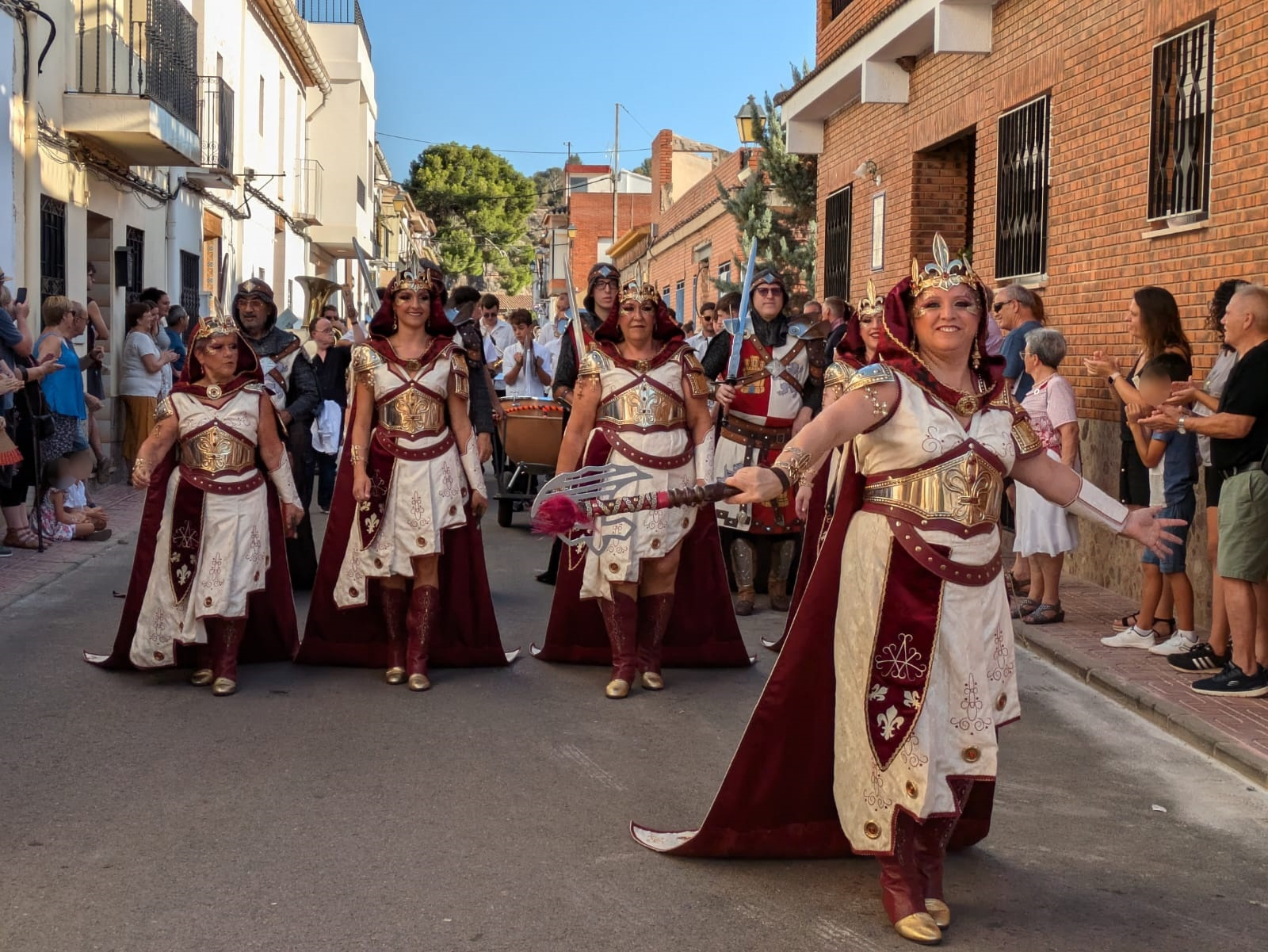 Así, a lo largo del recorrido, los miembros de las comparsas Almohades (Moncada), Ben-Amires (Moncada) y Sumayl’s (Torrent), por parte del bando Moro, y Artal de Luna (Moncada) y El Cid (Olocau), por parte del bando Cristiano, ofrecieron una marcha de gran belleza que llenó las calles de alegría. Además, la música interpretada por la Xaranga Valencia y por la Banda de la Agrupación Musical ‘La Melodía’ creó una magnífica atmósfera y animó a todas personas que acudieron a presenciar el evento.