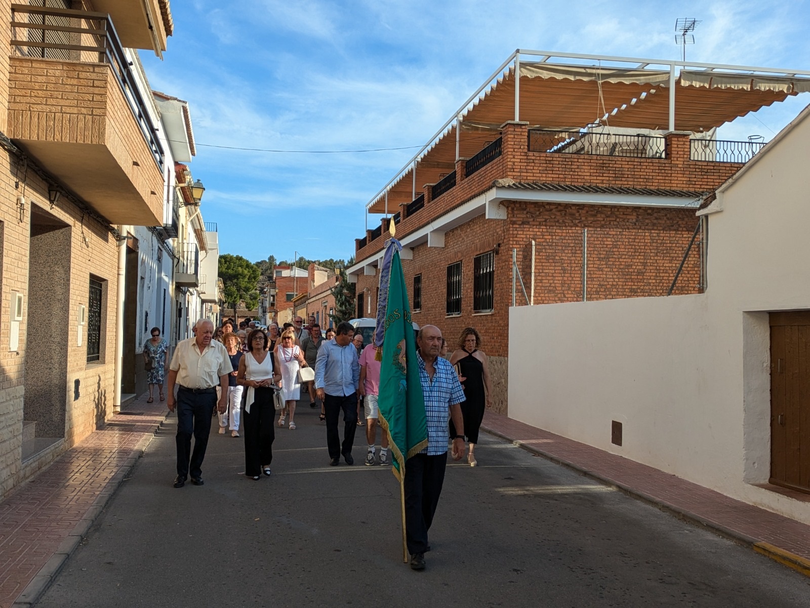El recorrido por el casco urbano tuvo un carácter festivo y alegre, y contó con la participación de vecinos y vecinas, miembros de la asociación, la Banda de la Agrupación Musical ‘La Melodía’ y representantes políticos como los concejales Salvador Navarret, Desa Vilaplana y Olga Brínquez; el alcalde, Antonio Ropero; y el ex primer edil José Agustín Agustí y la exconcejala y madrina de la bandera Yolanda Agustí, quienes formaban parte de la Corporación Municipal en 1992, cuando se realizó el estandarte.