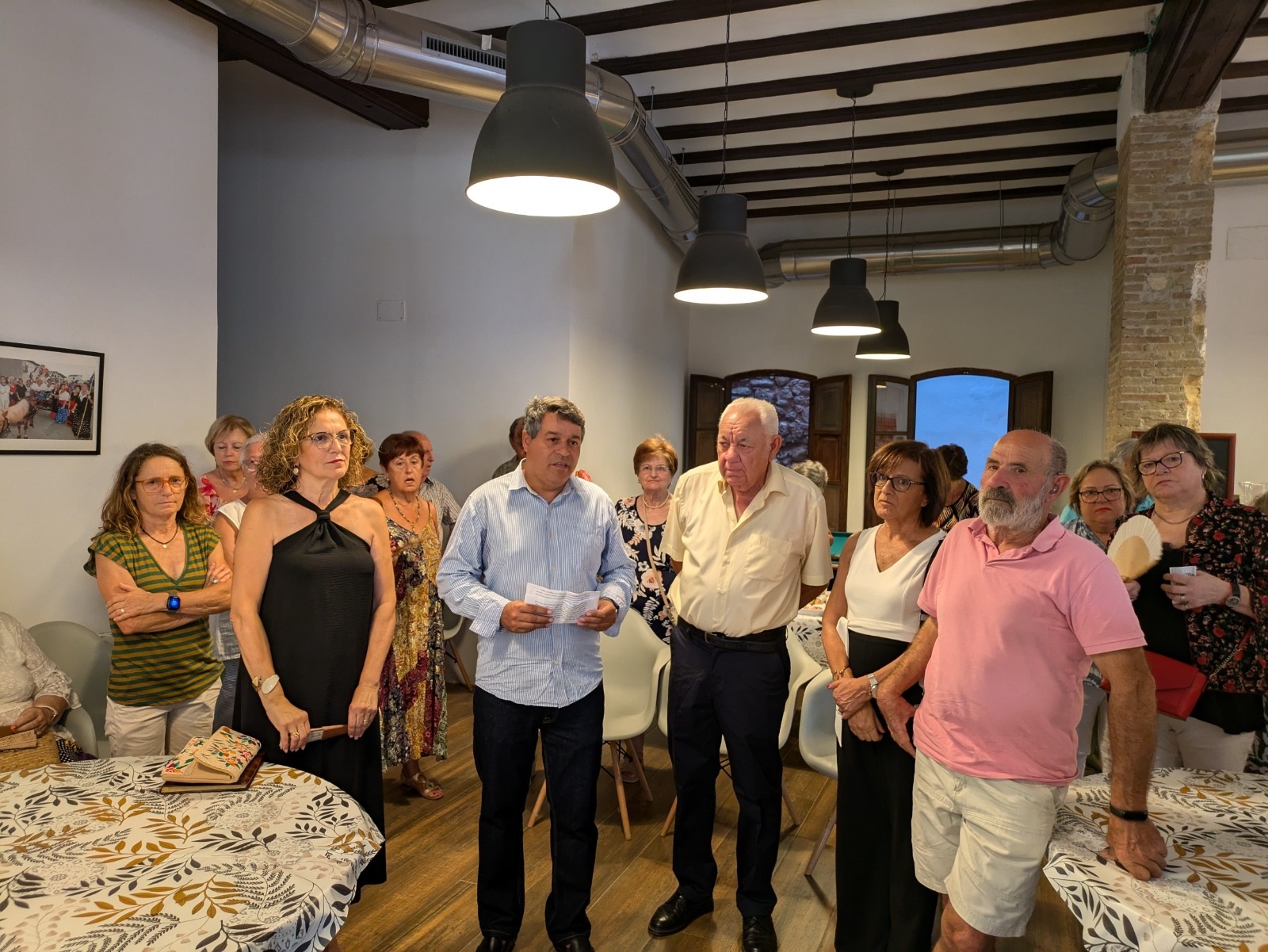 Con la llegada al Hogar de los Jubilados, se procedió a introducir la bandera en la vitrina de la entrada y, a continuación, se pronunciaron tres breves discursos. El primero, a cargo del presidente de la asociación, Amador Martínez, quien explicó la importancia del acto como conmemoración de un hecho de tanto significado para los jubilados y pensionistas de Olocau, y destacó el carácter festivo que quisieron que tuviera la celebración.