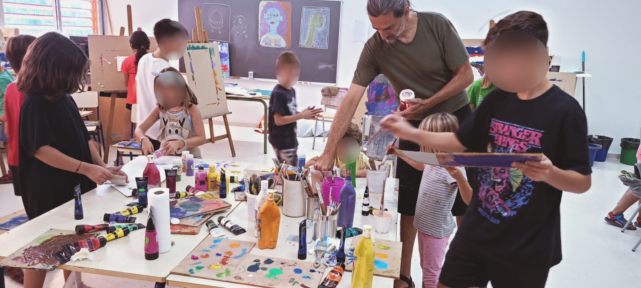 El pasado viernes, concluyó el taller de pintura gratuito organizado por el Ayuntamiento a través de su Concejalía de Educación, Cultura y Juventud y financiado por la Conselleria de Educación. 22 niñas y niños de entre 6 y 12 años participaron a lo largo de la semana en esta iniciativa de conciliación familiar que se realizó en horario de mañana en el CRA Alt Carraixet - Col·legi Mestre Ferran Zurriaga.