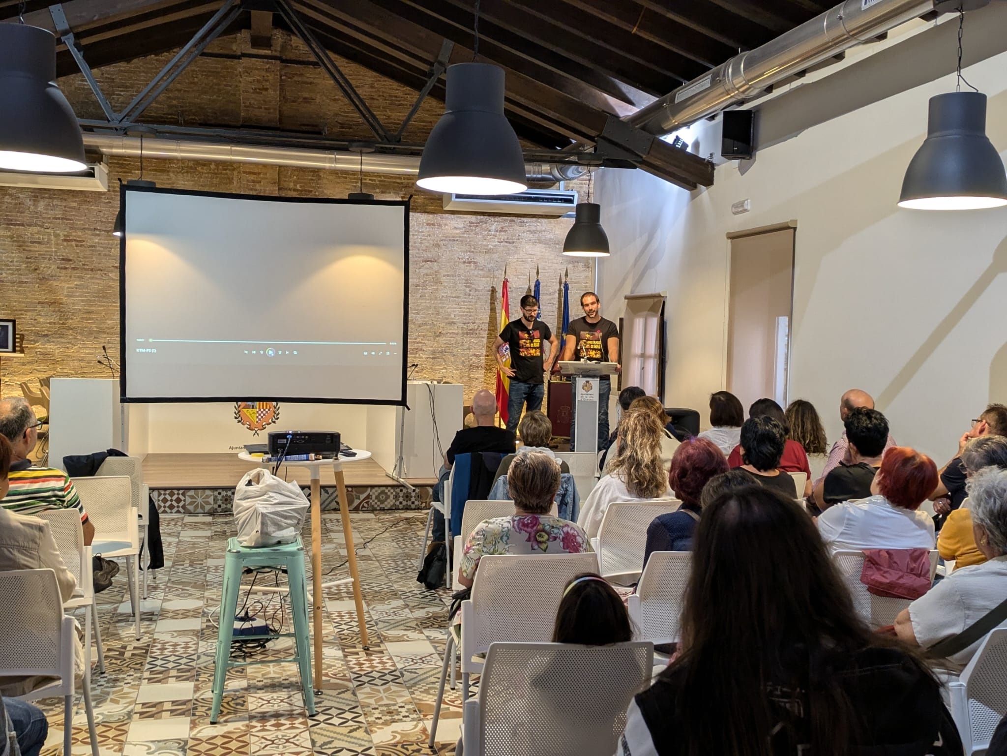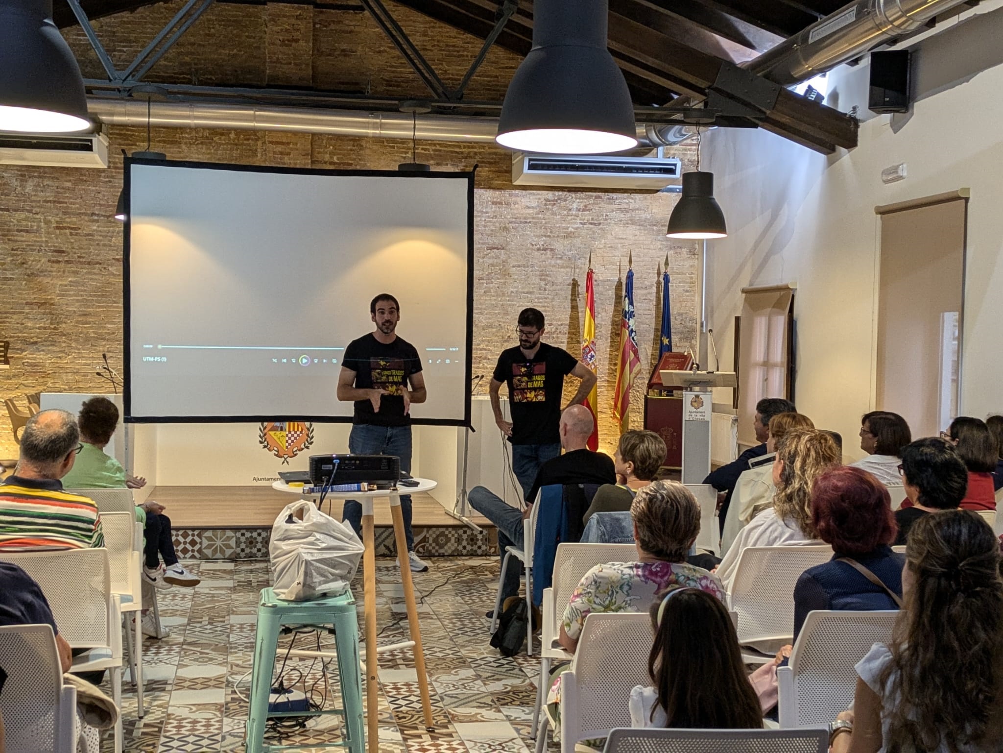 Tras la proyección, Salvador Hueso y Luis Valls (director y coguionista) dialogaron con los asistentes y respondieron a sus preguntas. Hablaron del todo el proceso que los llevó hasta la finalización del cortometraje y de los obstáculos que tuvieron que superar para conseguir el nivel de calidad que presenta la obra. Además, animaron a los miembros del equipo presentes en el Salón de Actos a acompañarlos en esta última parte del evento para compartir con ellos el reconocimiento que el público les dio por su extraordinario trabajo.