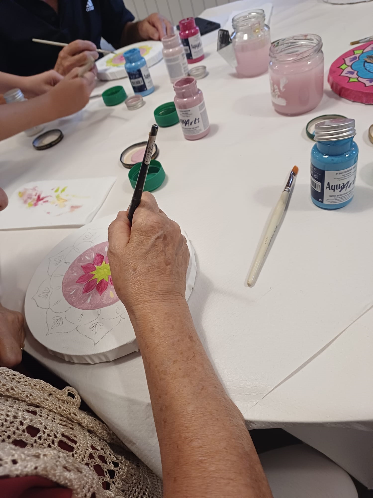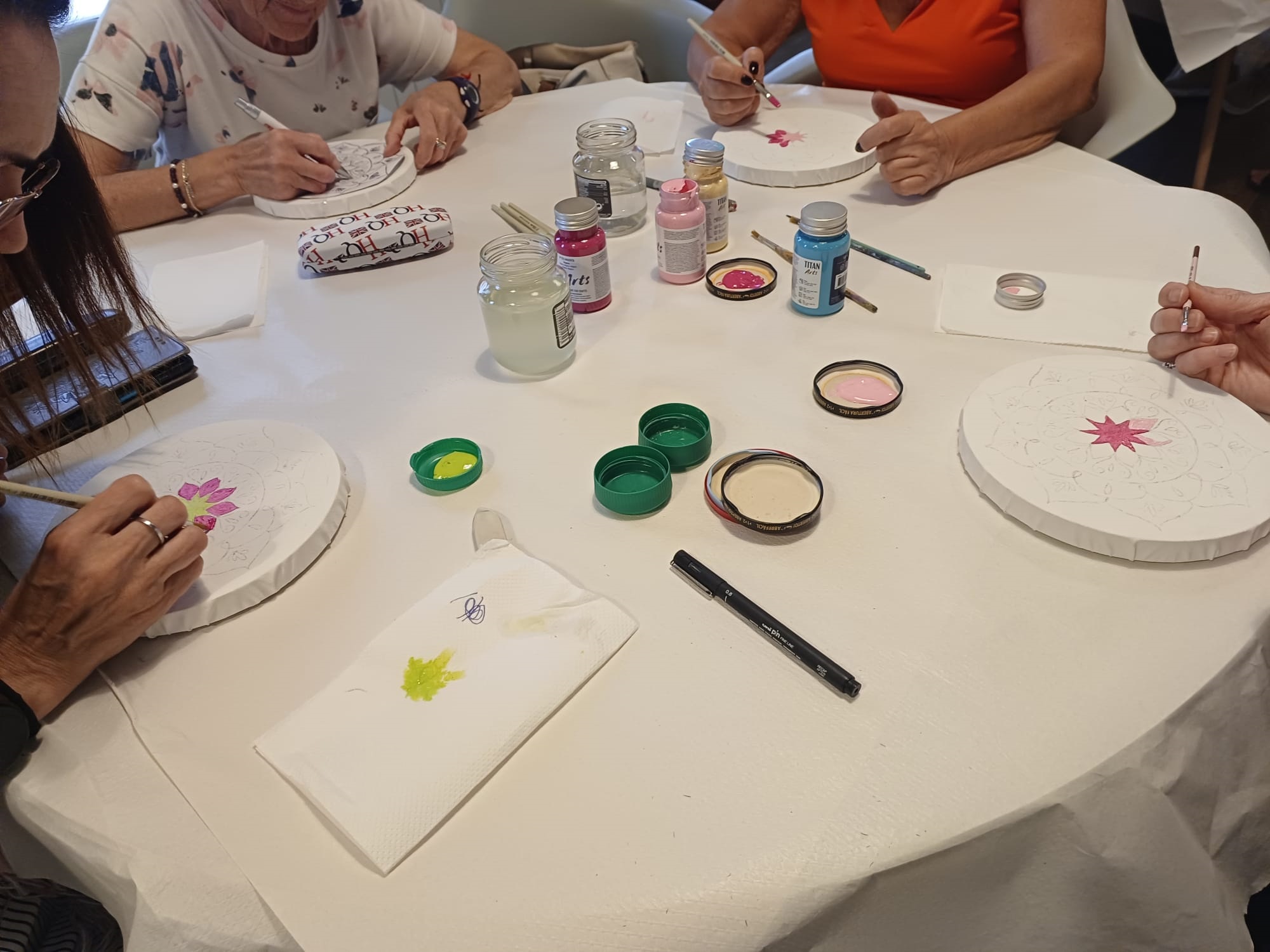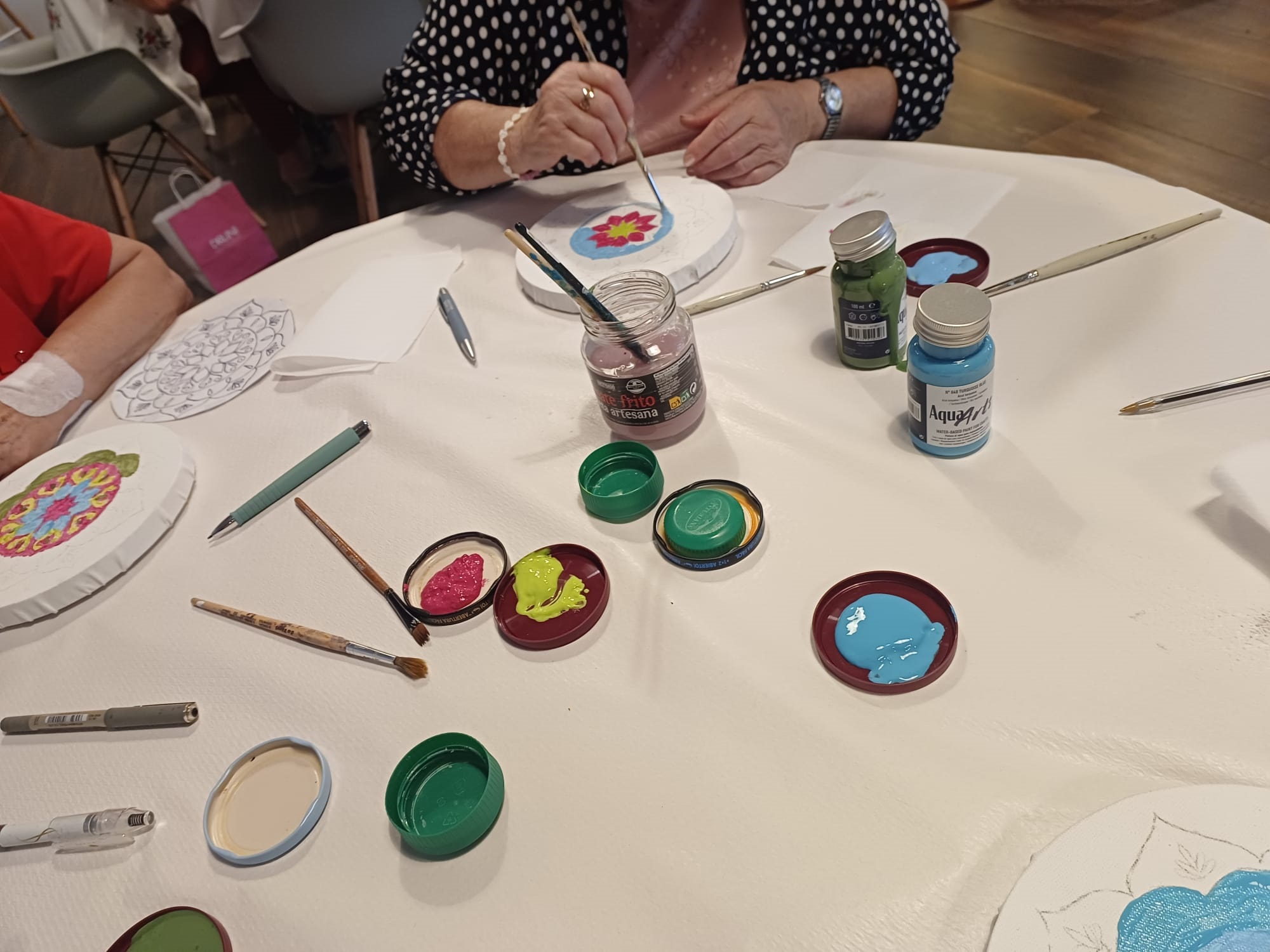 Como en anteriores ocasiones, esta iniciativa de carácter artístico fue un éxito de participación. Inés Alemany, de Arte 43 Bétera, fue la encargada de impartirla y de explicar el proceso para elaborar unos preciosos elementos ornamentales usando pintura acrílica, plantillas y contornos. La actividad contó con una gran implicación por parte de los asistentes, que demostraron su creatividad a la hora de decorar las obras, y se desarrolló en un ambiente de compañerismo y de cordialidad.