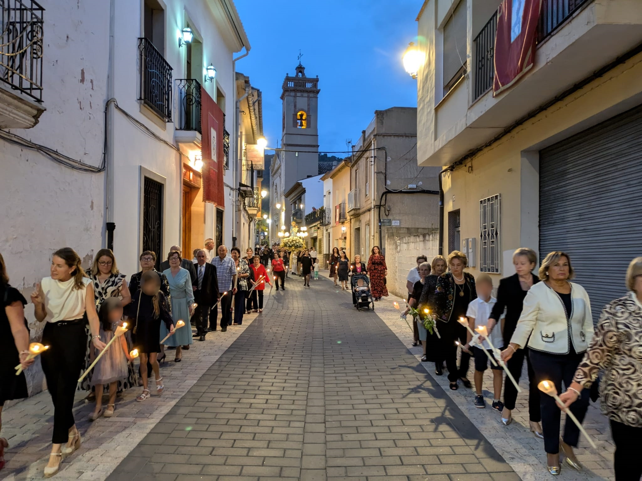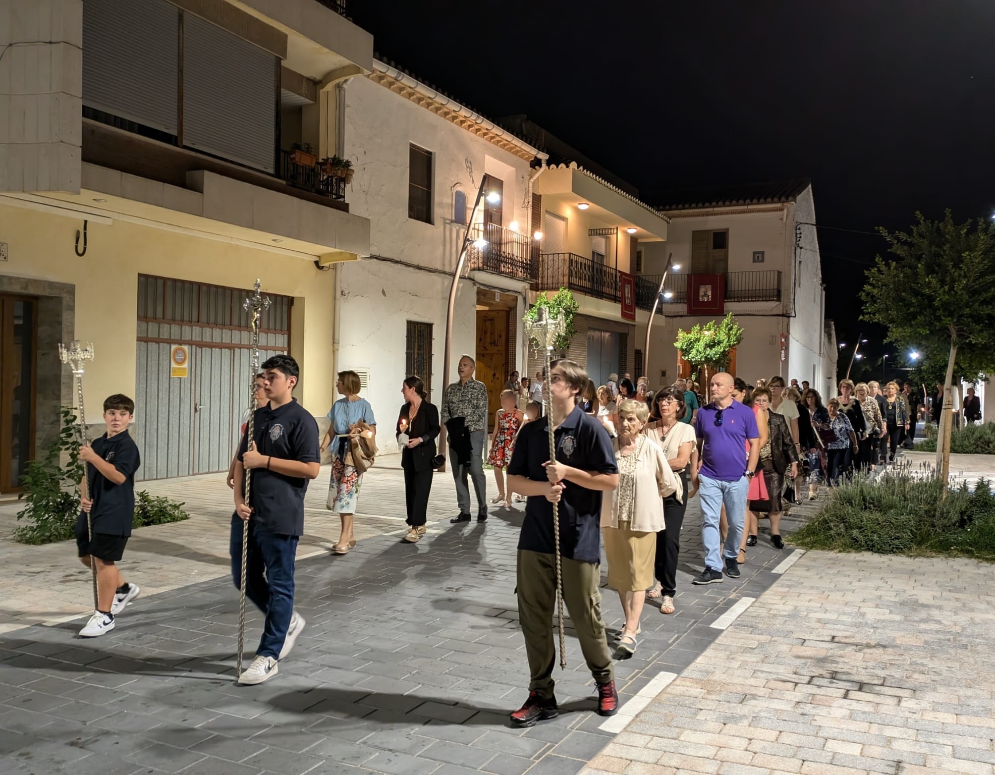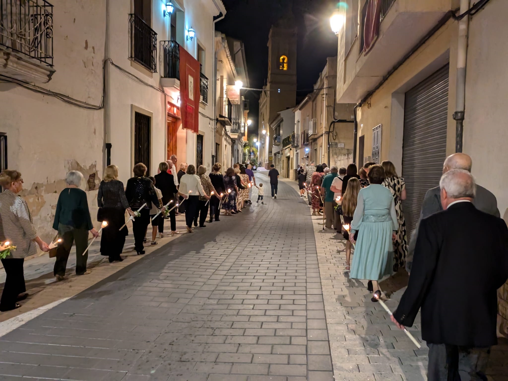 Ya por la tarde, tuvo lugar la Procesión en honor a la Virgen del Rosario. Un recorrido que partió desde la Parroquia y en el que la localidad mostró su profunda devoción a la Patrona en un ambiente de respeto y emoción. Numerosos vecinos y vecinas participaron en el acto junto con la banda de la Agrupació Musical ‘La Melodia’.
