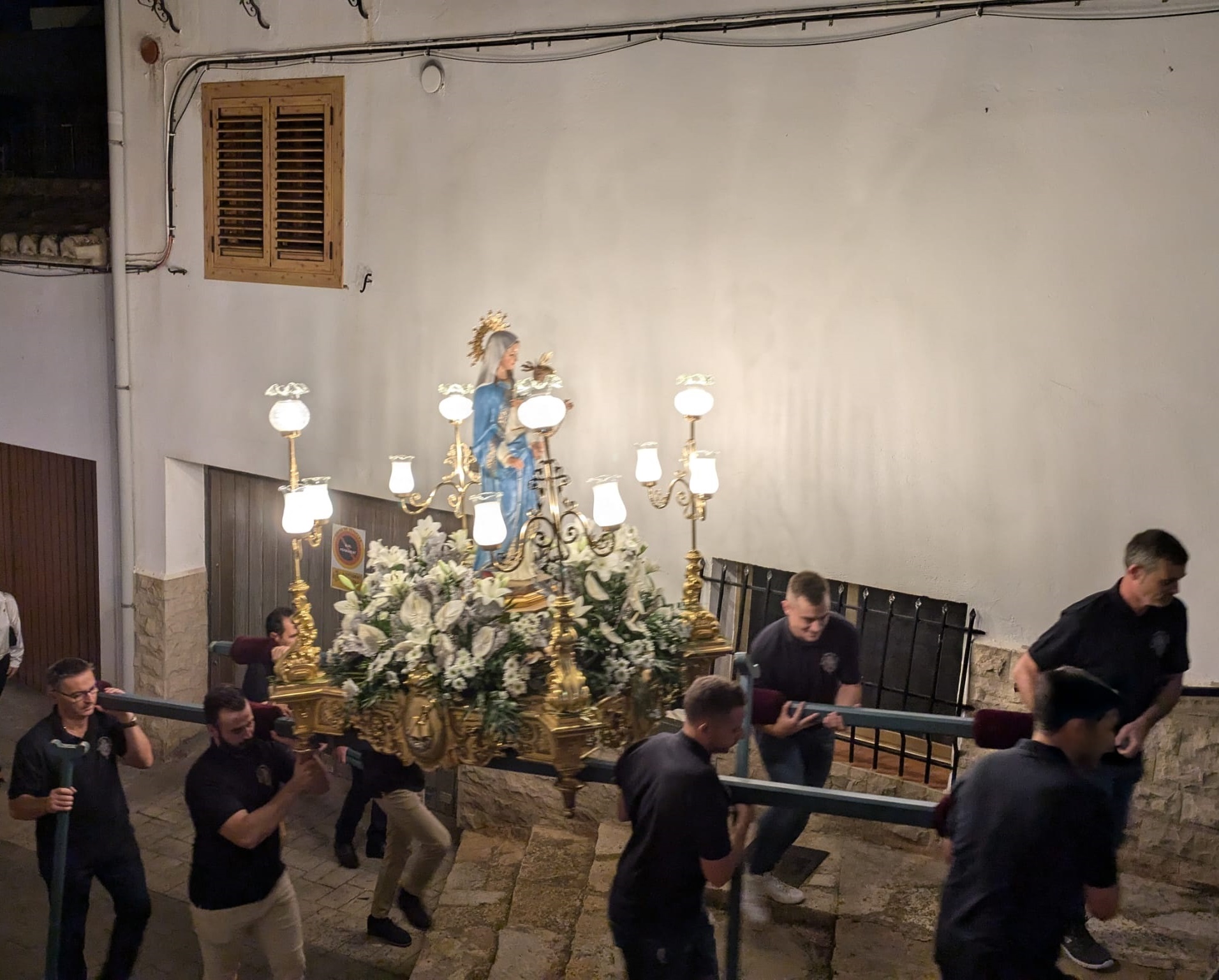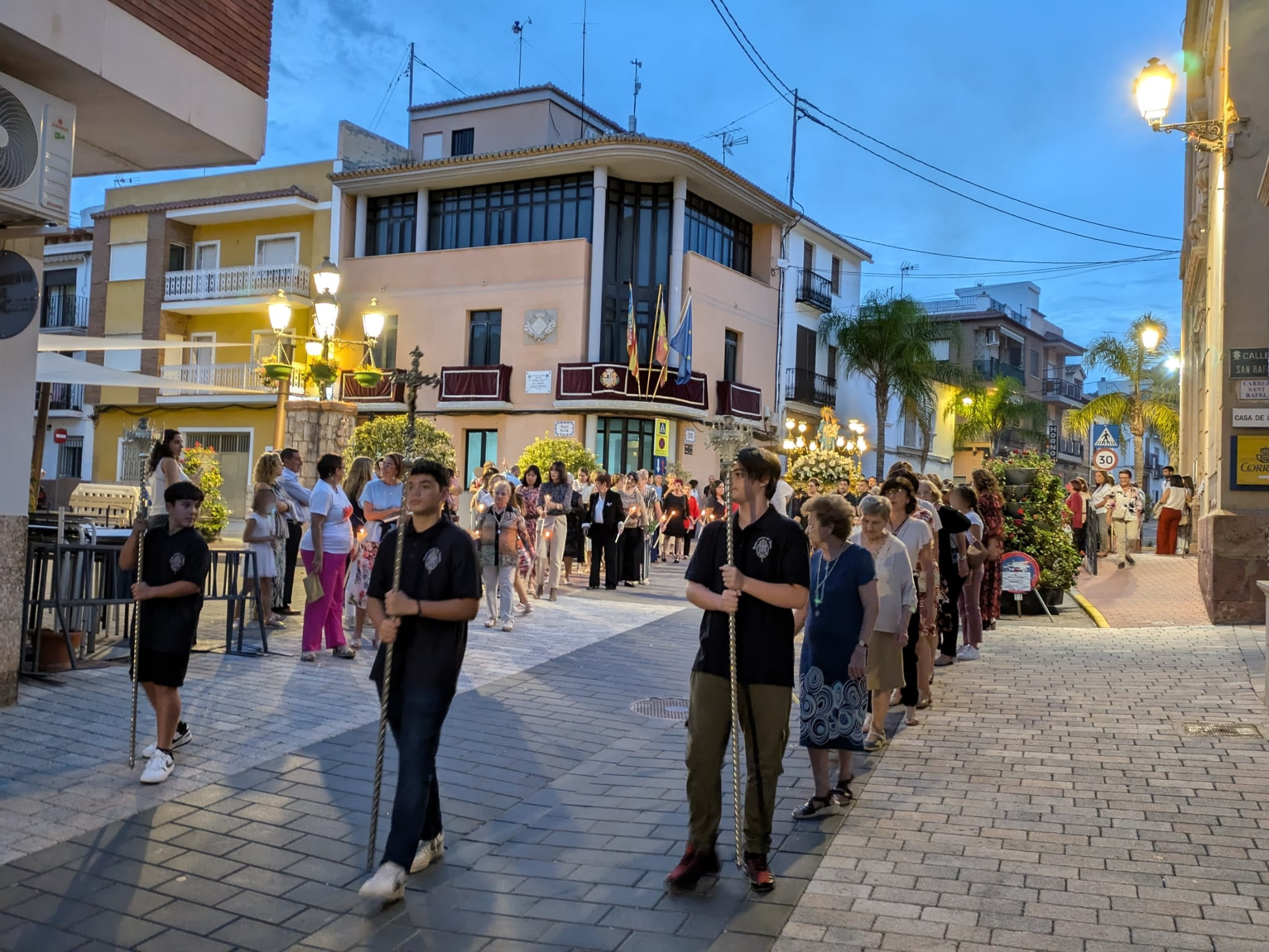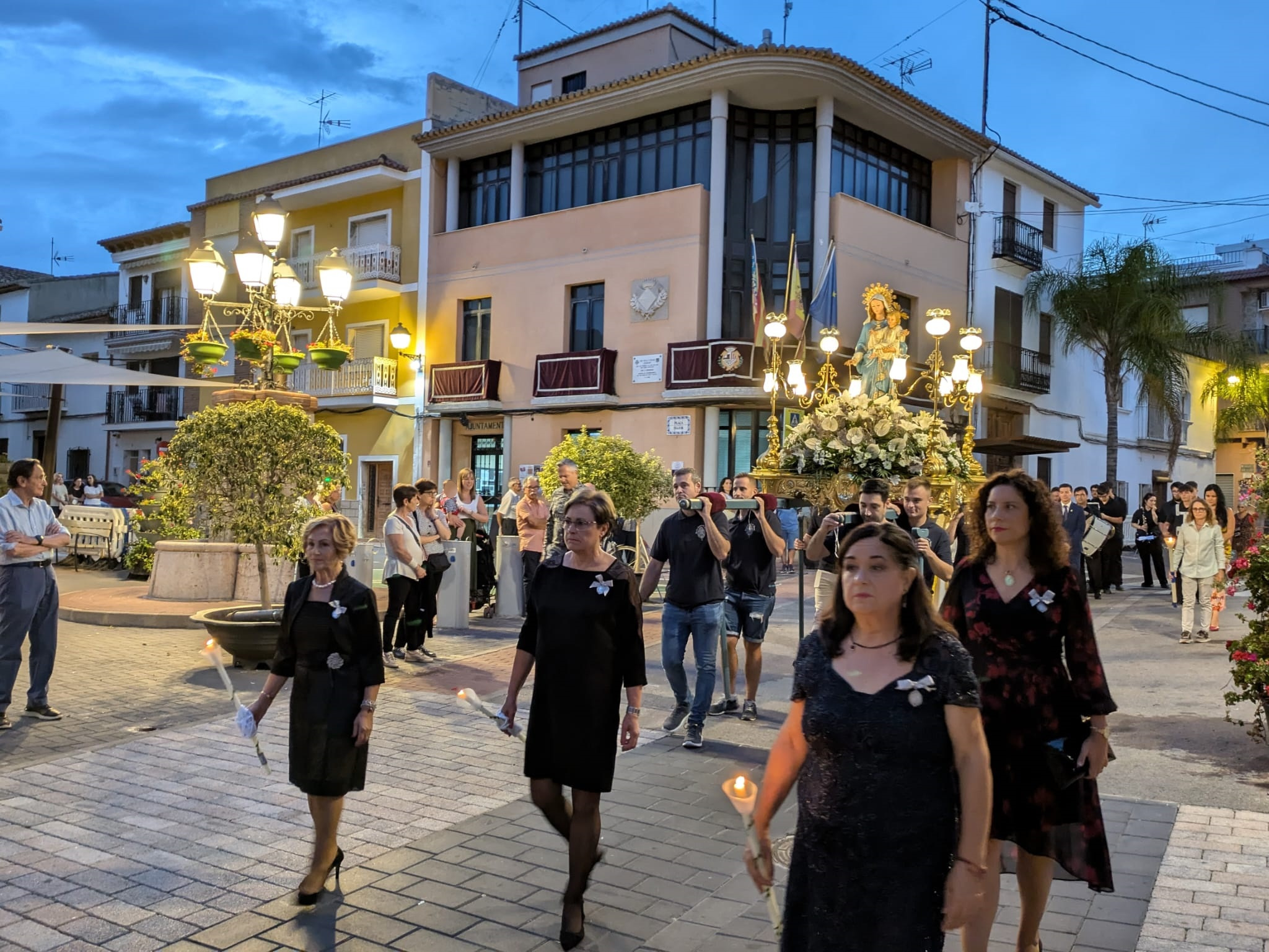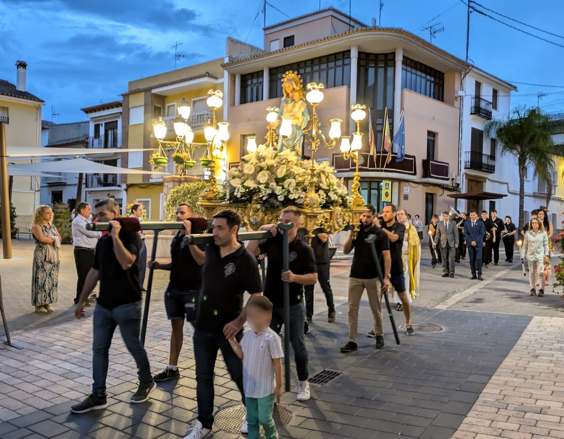Ya por la tarde, tuvo lugar la Procesión en honor a la Virgen del Rosario. Un recorrido que partió desde la Parroquia y en el que la localidad mostró su profunda devoción a la Patrona en un ambiente de respeto y emoción. Numerosos vecinos y vecinas participaron en el acto junto con la banda de la Agrupació Musical ‘La Melodia’.