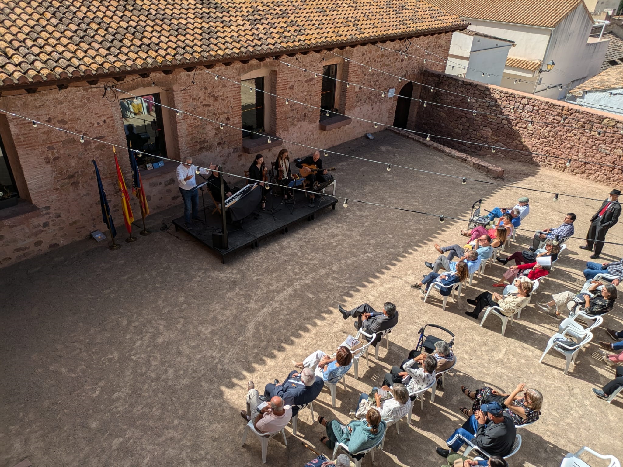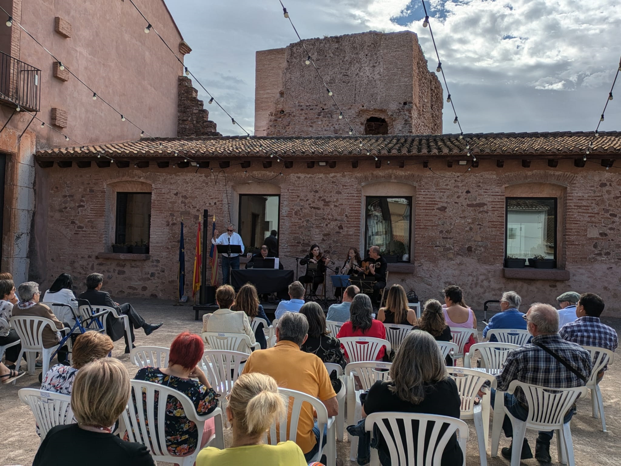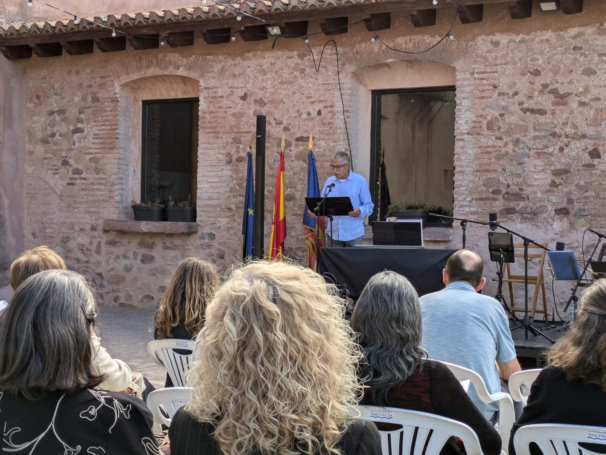 El patio de la Casa de la Senyoria ha acogido la primera cita del día, el Acto Institucional, que ha contado con la presencia del alcalde, Antonio Ropero; de los ediles Pascual Esteve, María José Guevara (quien se ha encargado de conducirlo), Desa Vilaplana, Olga Brínquez, José Paricio y Salvador Navarret; y, por parte del grupo político Compromís, del concejal Vicent Murgui.