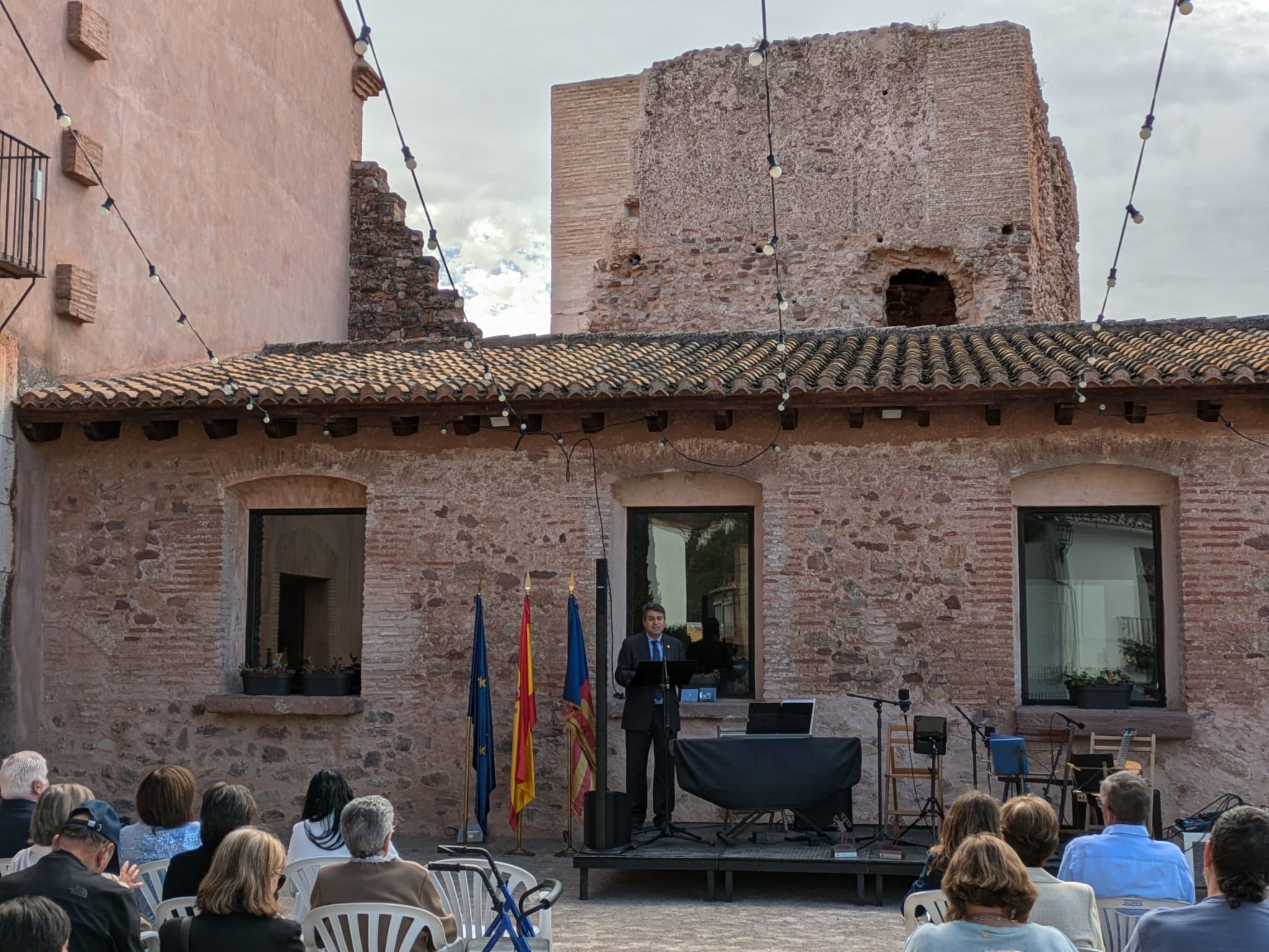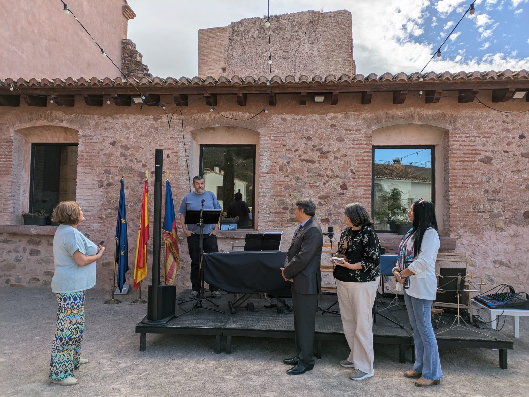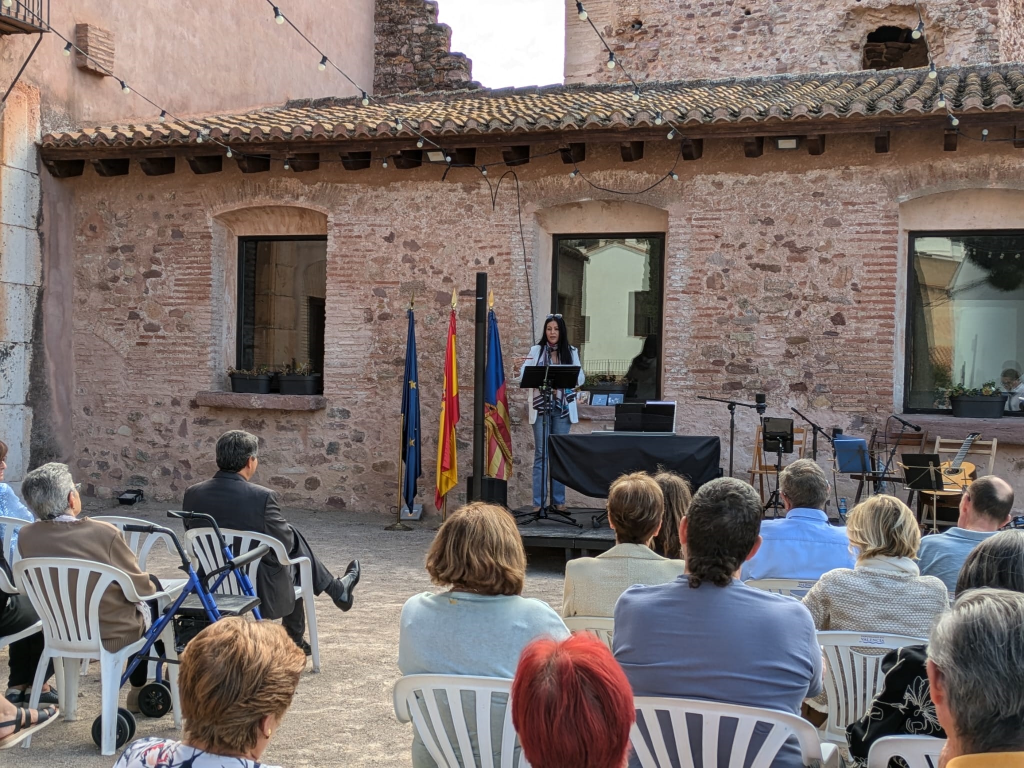 El patio de la Casa de la Senyoria ha acogido la primera cita del día, el Acto Institucional, que ha contado con la presencia del alcalde, Antonio Ropero; de los ediles Pascual Esteve, María José Guevara (quien se ha encargado de conducirlo), Desa Vilaplana, Olga Brínquez, José Paricio y Salvador Navarret; y, por parte del grupo político Compromís, del concejal Vicent Murgui.