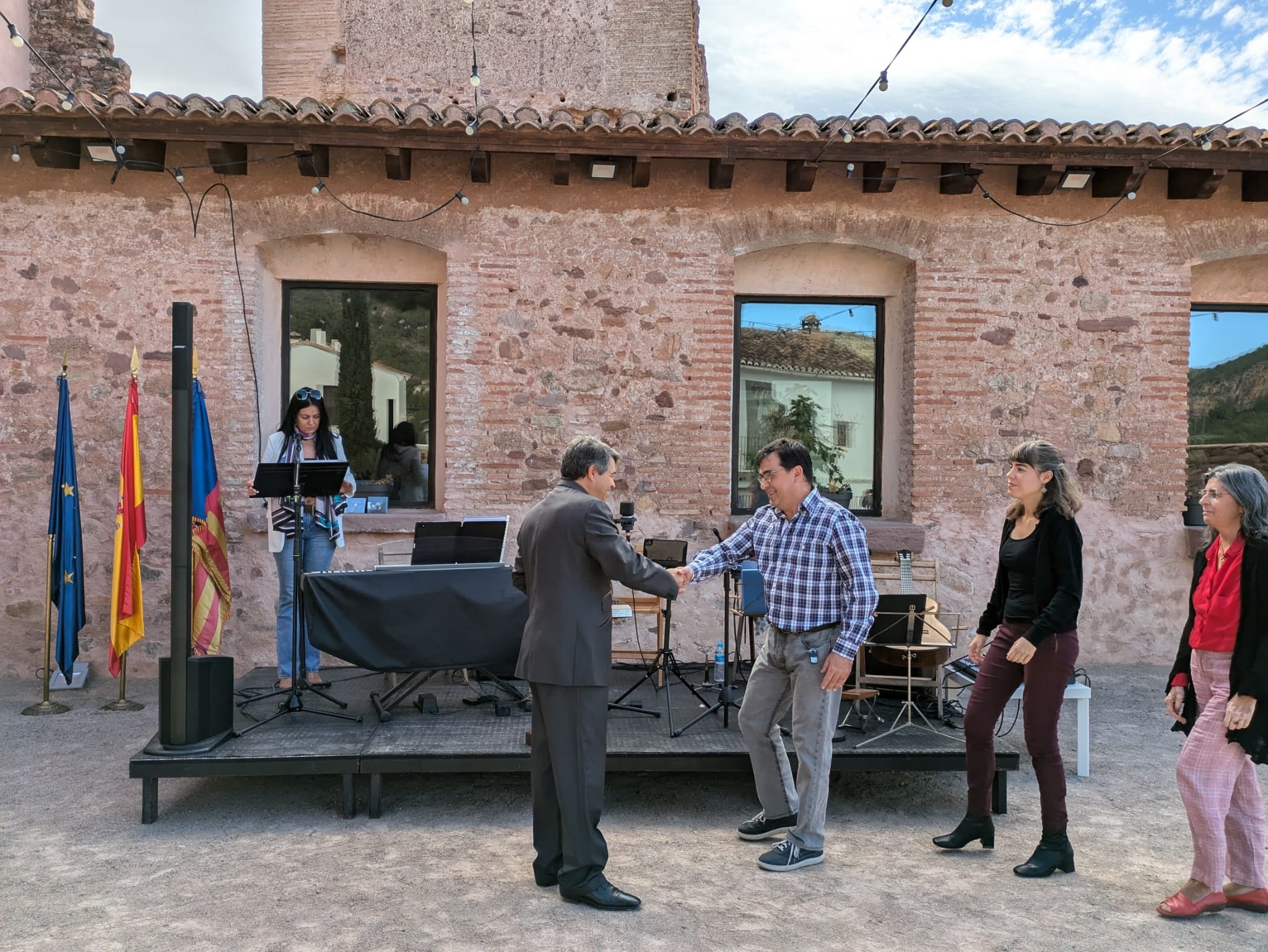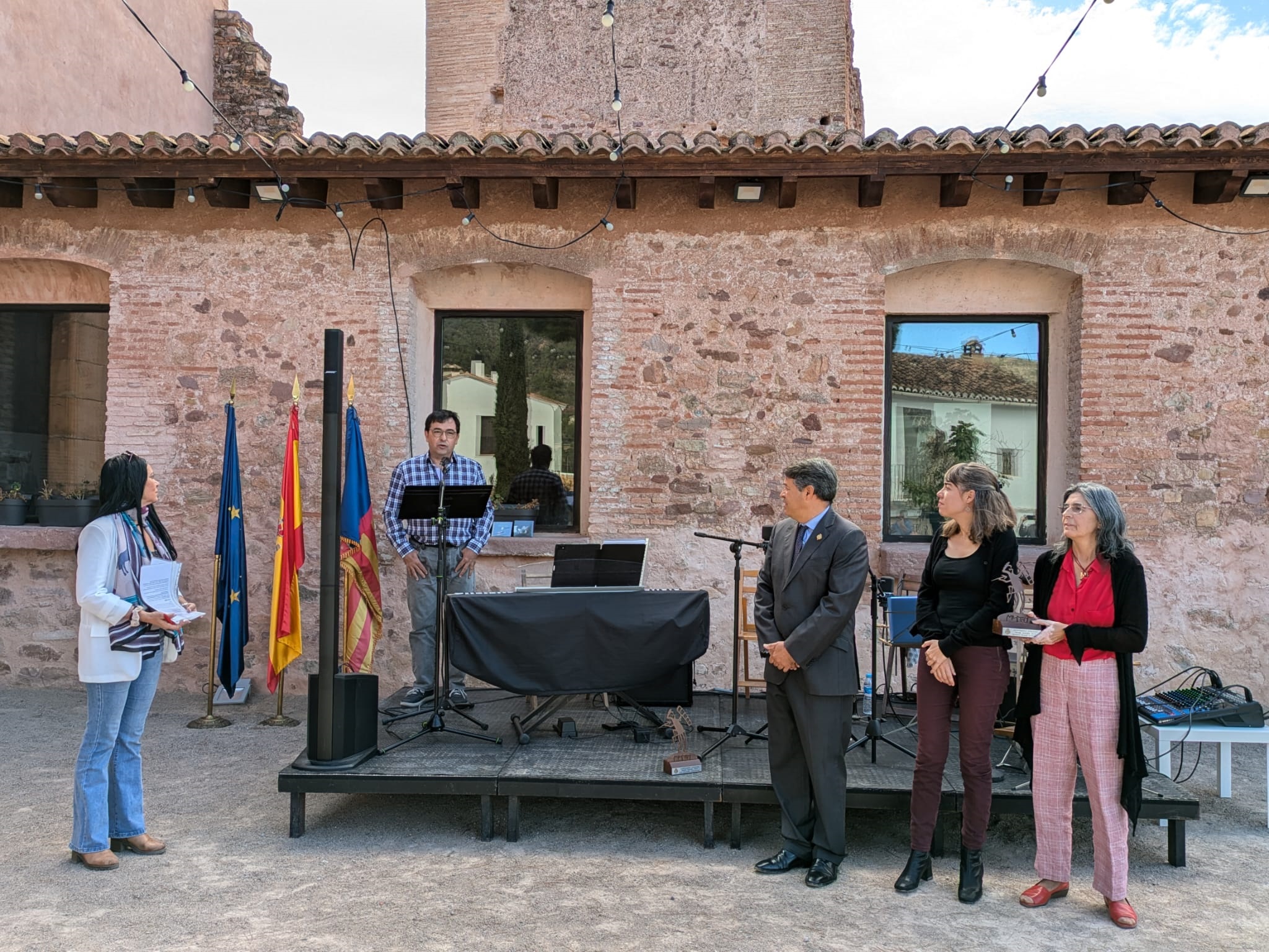 Después, se ha hecho entrega de estos galardones. En primer lugar, a la Agrupació Musical ‘La Melodia’ por la labor de promoción y formación en materia musical que lleva a cabo con la Banda, el Coro y la Escuela. Su director, Guillermo Berga, ha agradecido el reconocimiento, ha recordado a todas las personas que han formado y forman parte de ‘La Melodia’ y su contribución, y ha dado también las gracias a todo el pueblo y al Ayuntamiento por su apoyo. A continuación, se ha premiado a los impulsores de las ‘Biblioneveras’, de Pedralvilla, por la apuesta que con ellas se realiza en favor de la cultura, la sostenibilidad y el arte. Raúl Contreras y Pilar Gil han recogido el galardón y, en su discurso, Contreras ha querido expresar su gratitud a quienes colaboran con esta iniciativa, tanto de la urbanización como de otros lugares.
