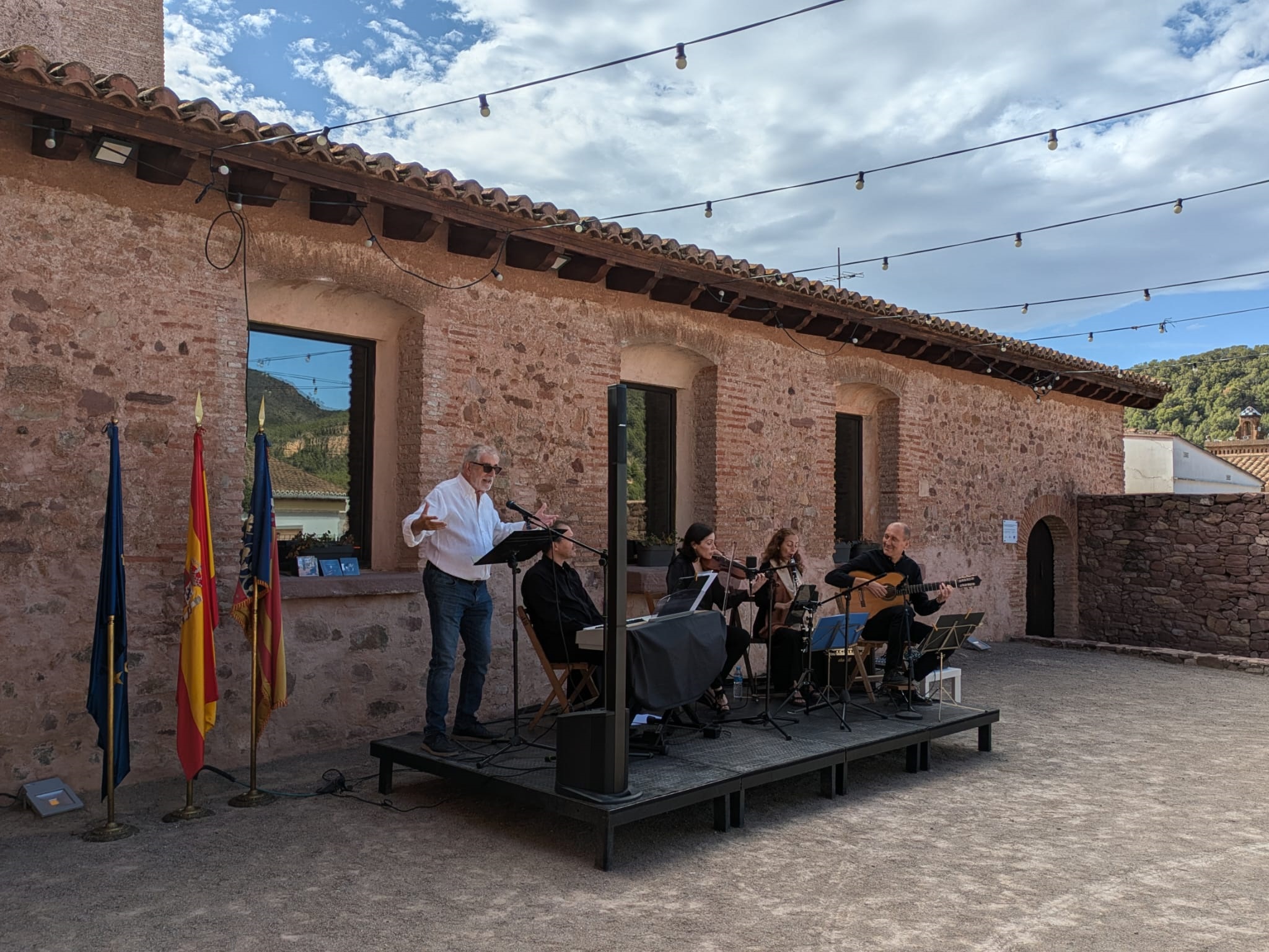Para finalizar, el grupo Melodemodomies ha ofrecido un espectáculo centrado igualmente en Estellés en el que la poesía y la música se han unido para crear una atmósfera única. Así, con su actuación, Tomàs Llopis (rapsoda), Miquel Pérez (guitarra y música), Sandra Alfonso (violín), Maria Moreno (clarinete) y Francisco José Pérez (piano) han transmitido al público la emoción, el sentimiento y la intensidad que caracterizan a la obra de uno de los más grandes escritores valencianos de la historia.