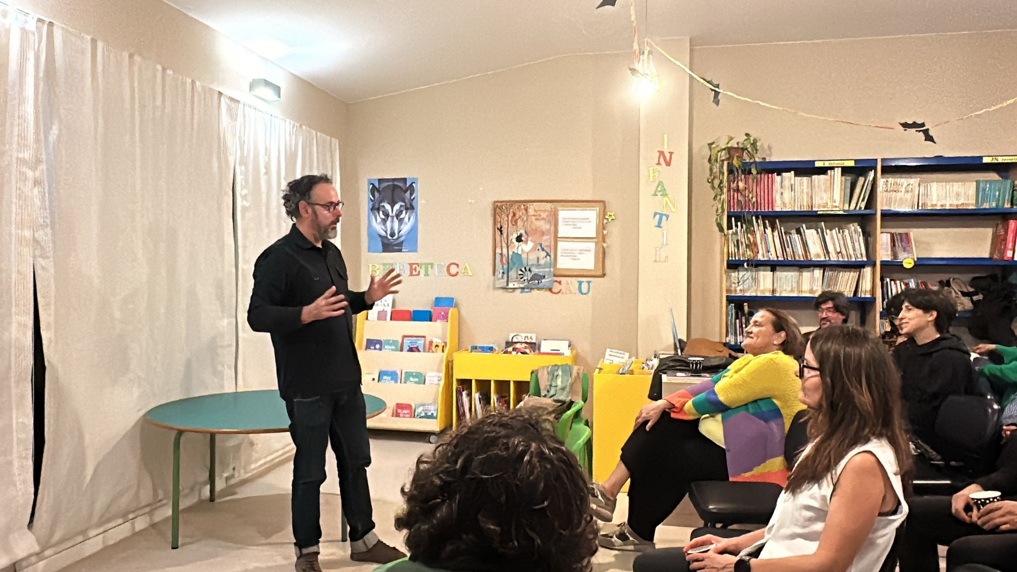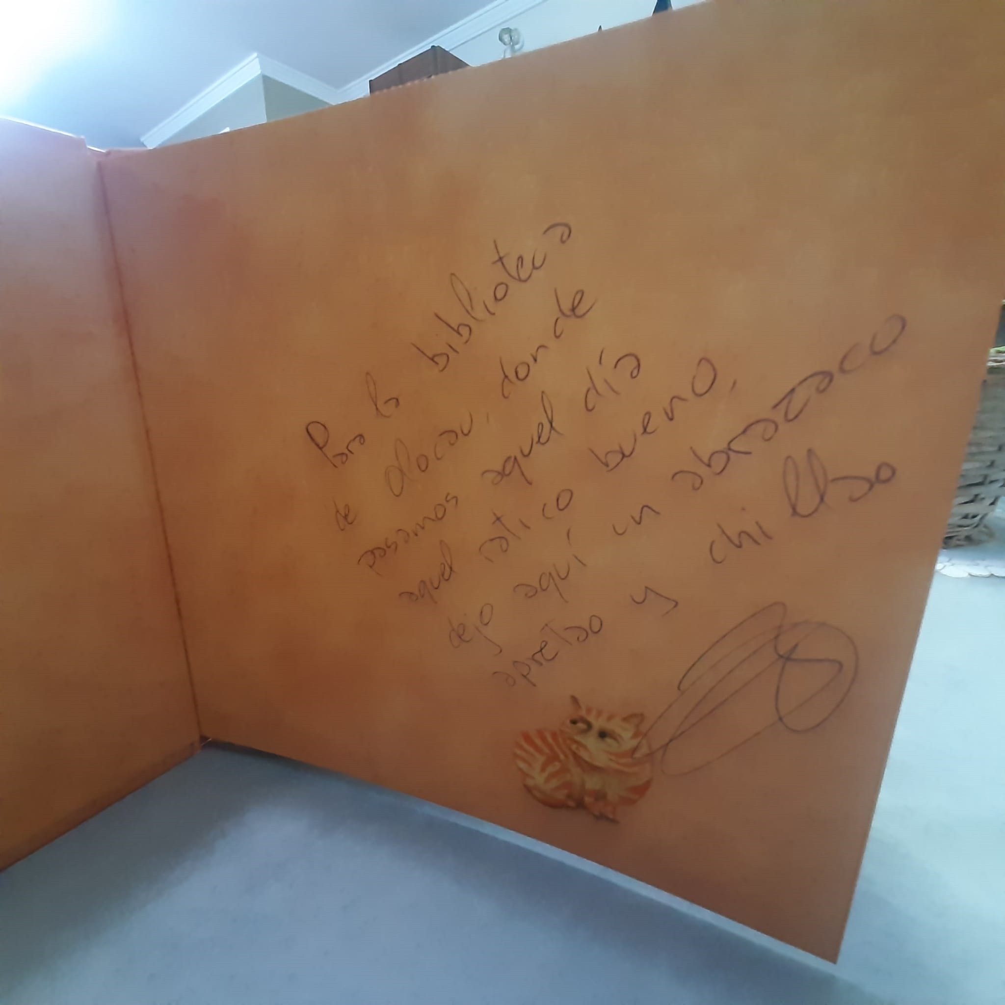Además, Albo llevó algunos de sus libros y dejó uno de ellos, titulado ‘Un gato en el árbol’, firmado para los usuarios y usuarias de la Biblioteca.