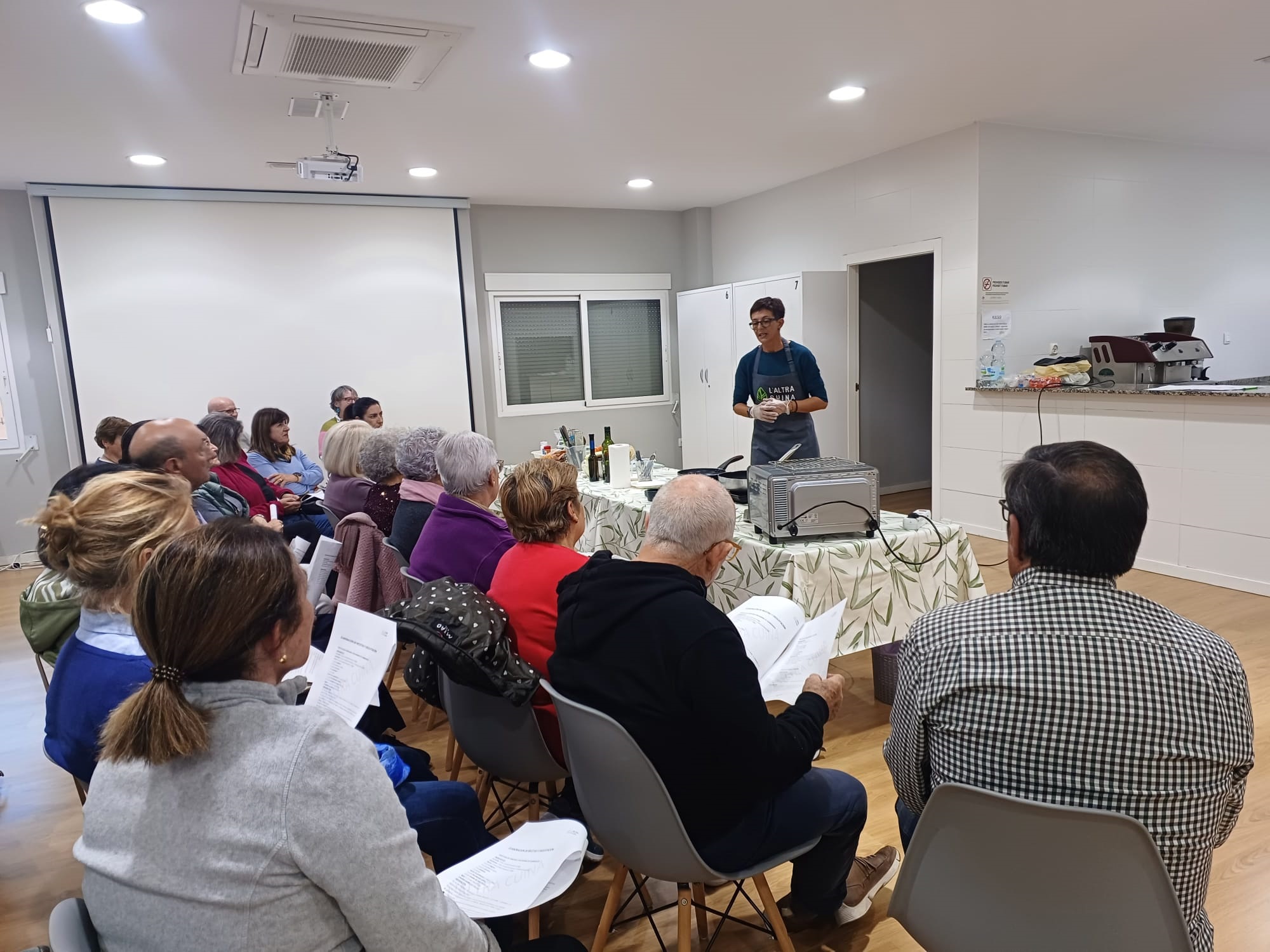 La iniciativa, organizada por la Concejalía de Servicios Sociales e impartida por la dietista Cristina Bochons, impulsora del proyecto L’Altra Cuina, tuvo un carácter teórico-práctico y sirvió para que los asistentes descubrieran deliciosas elaboraciones que podrán preparar en estas fiestas navideñas, como los miniconos rellenos de aguacate, el paté exprés de alcachofas o la salsa de yogur y menta.