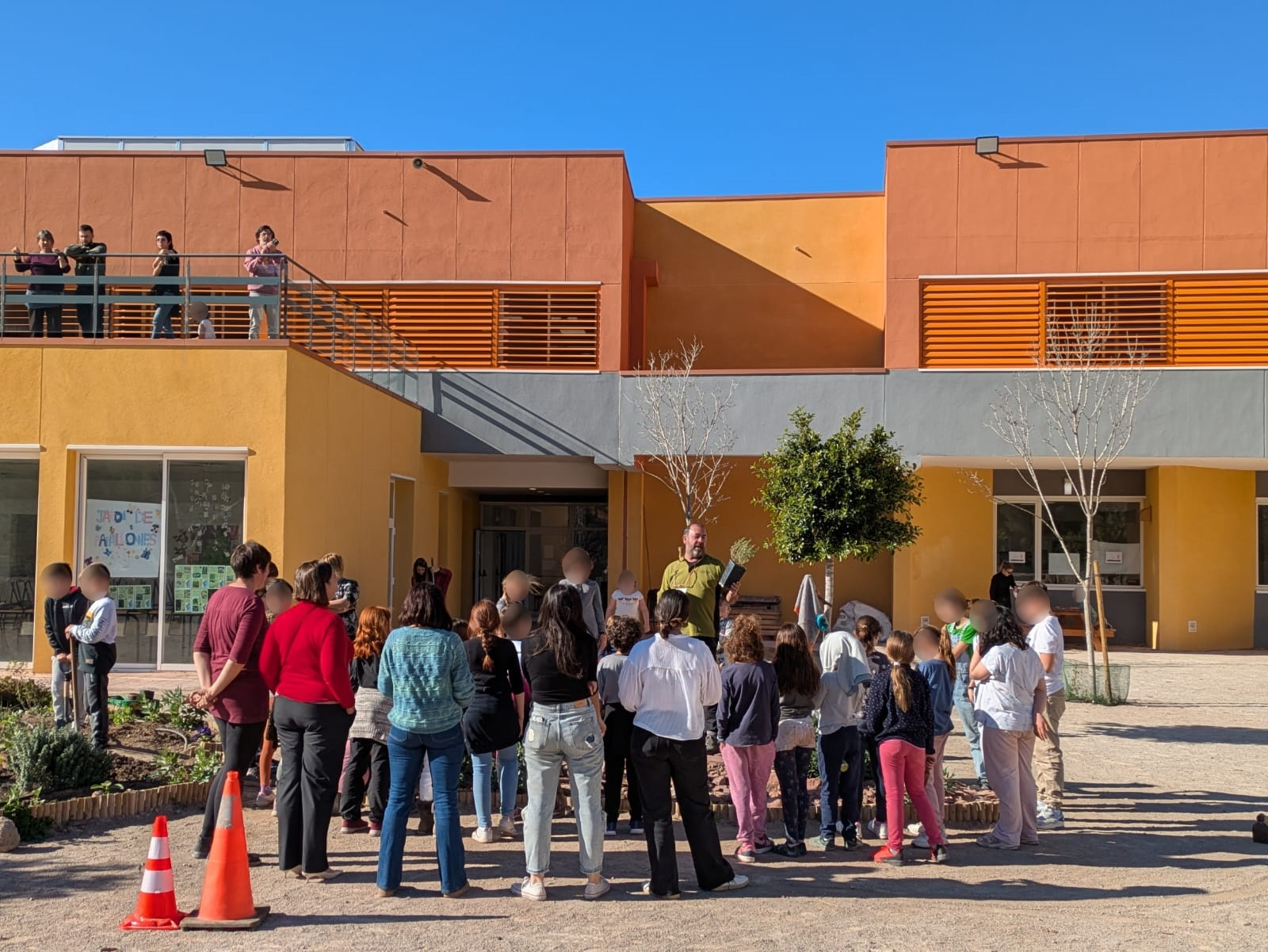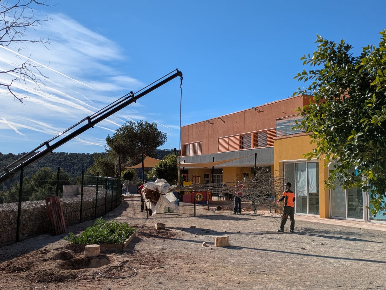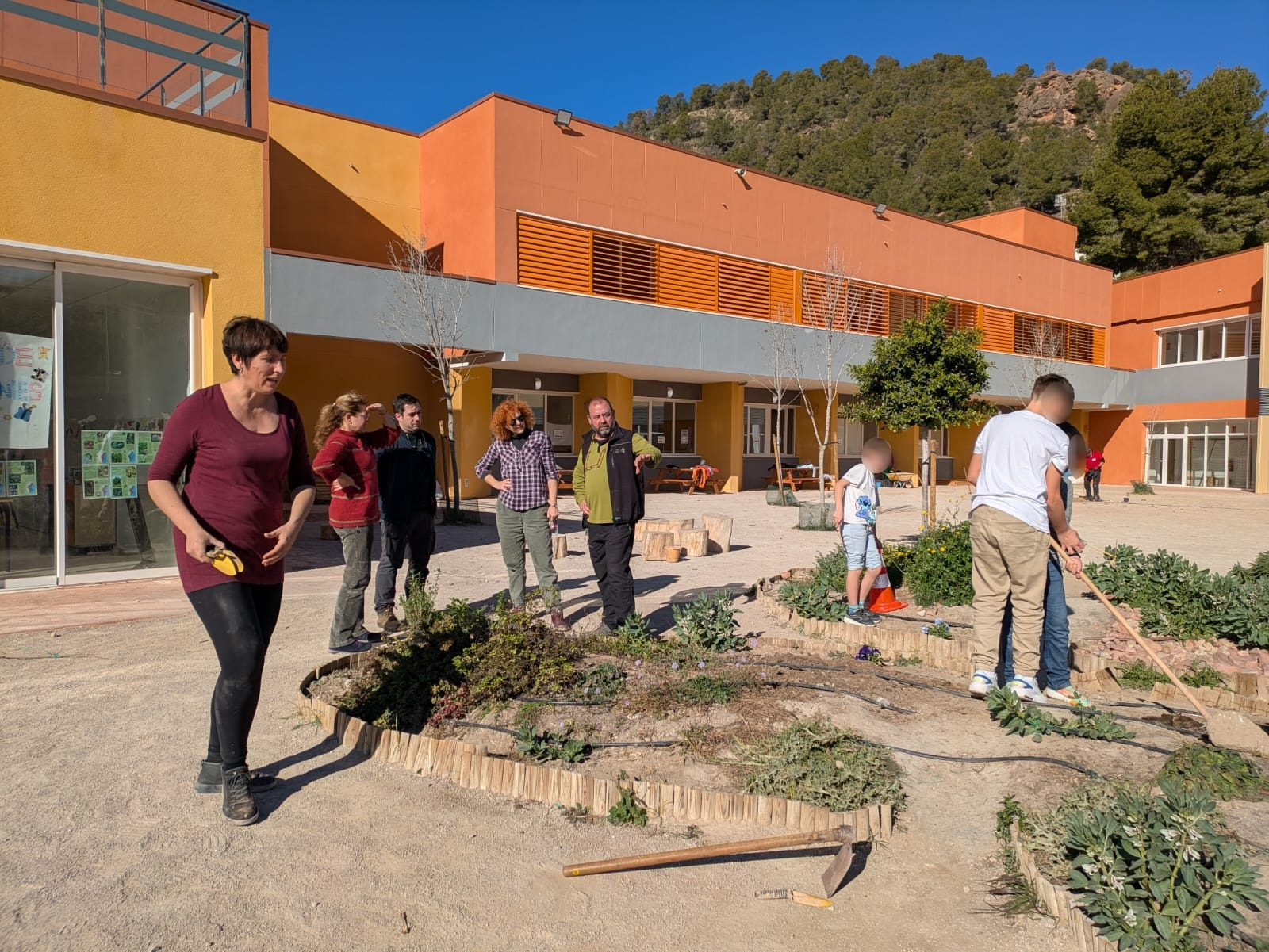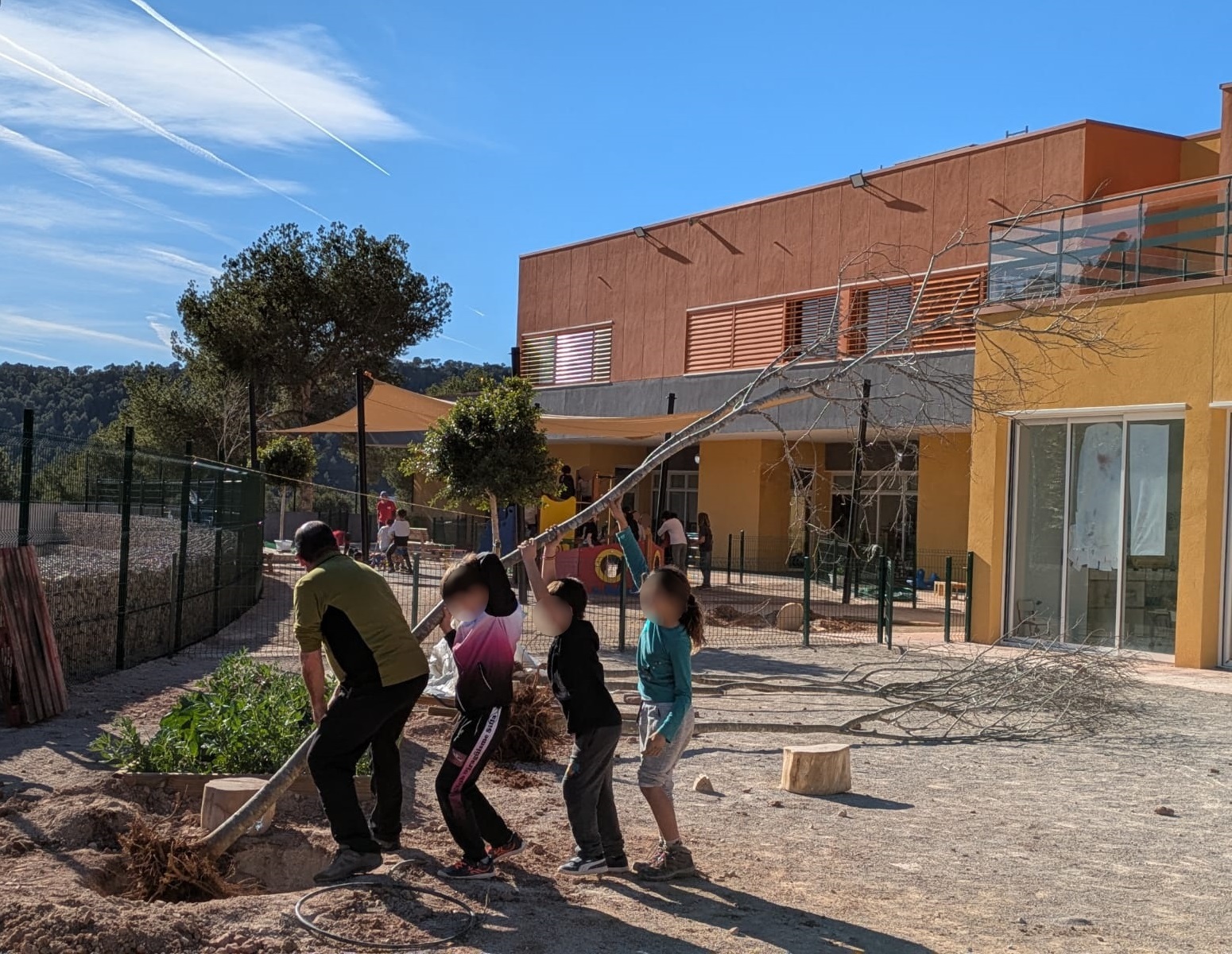 A continuación, ha llegado el momento de los árboles, con almeces y fresnos que se han situado en diferentes puntos del patio. Una tarea de equipo en la que todos los allí presentes han cooperado para contribuir a seguir mejorando el colegio al mismo tiempo que se promovía el cuidado y el respeto a la naturaleza.