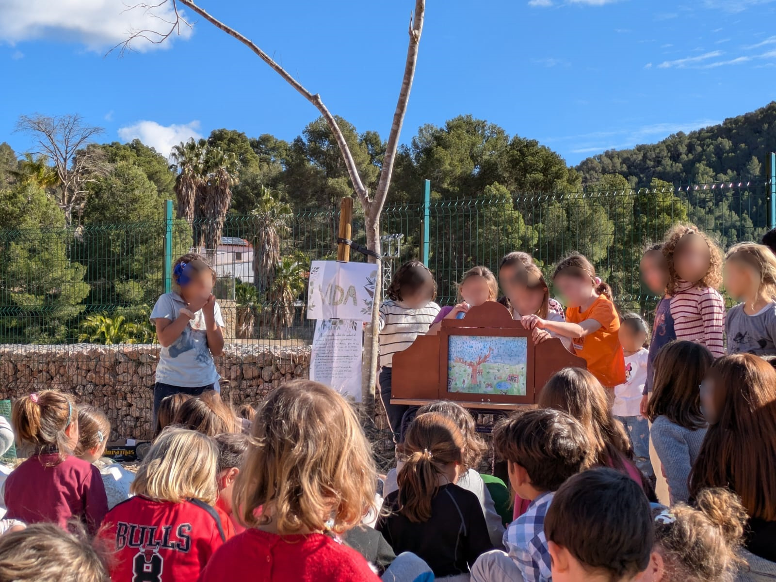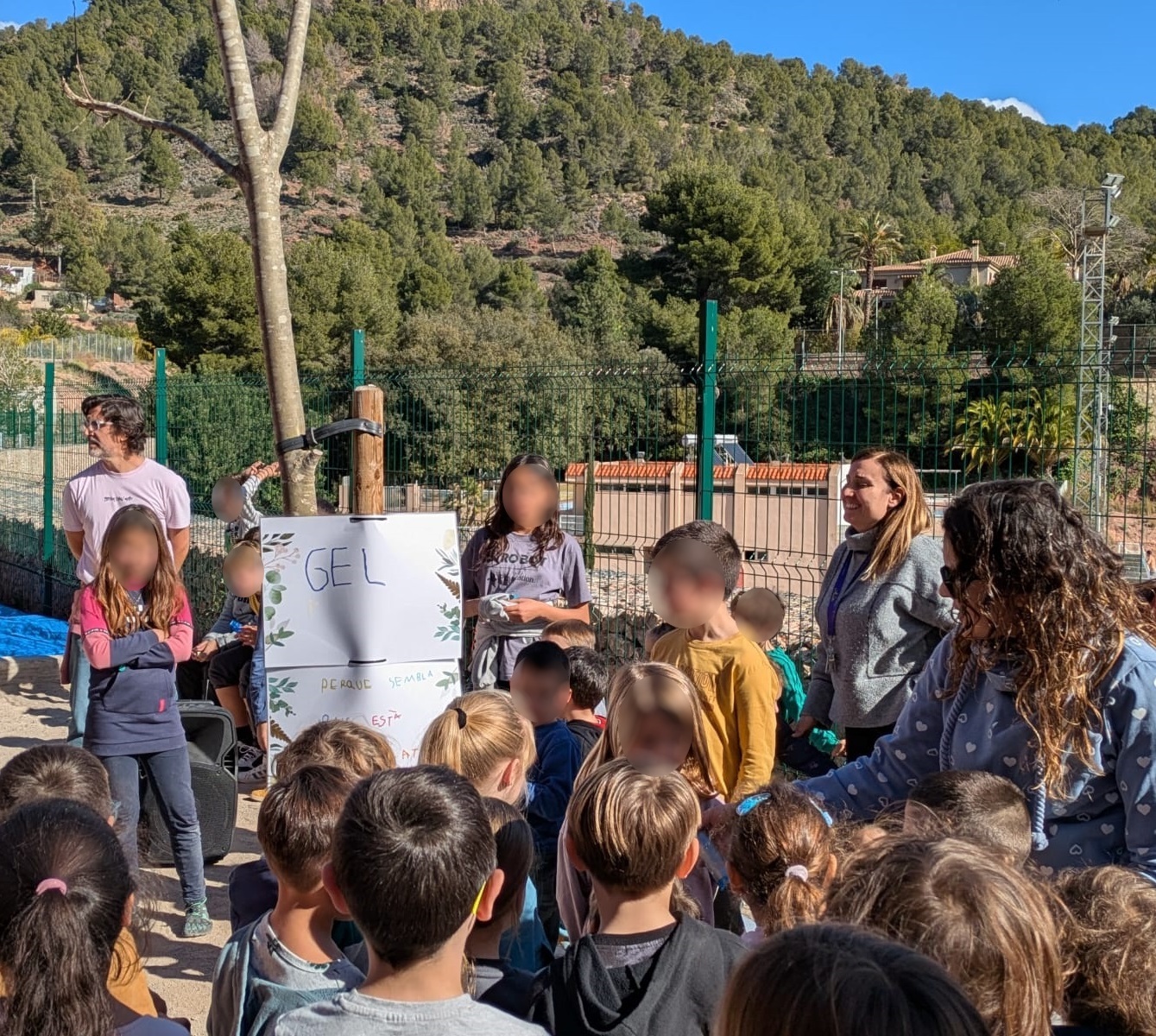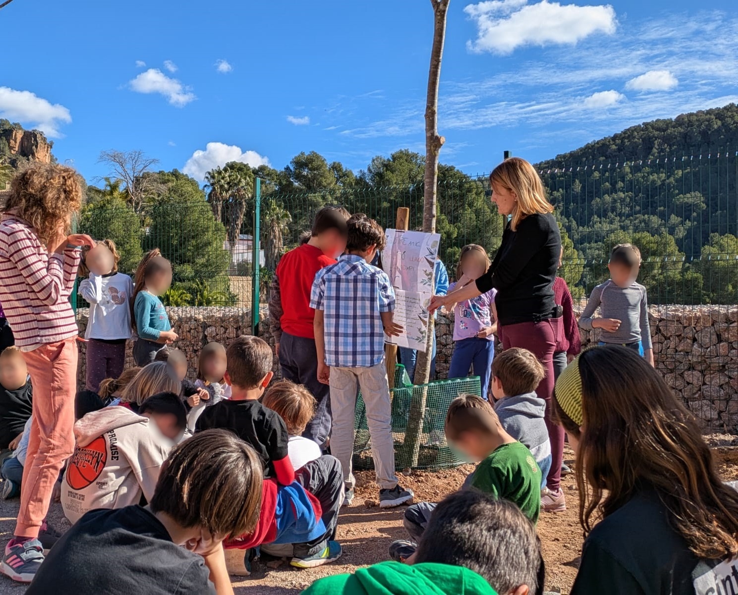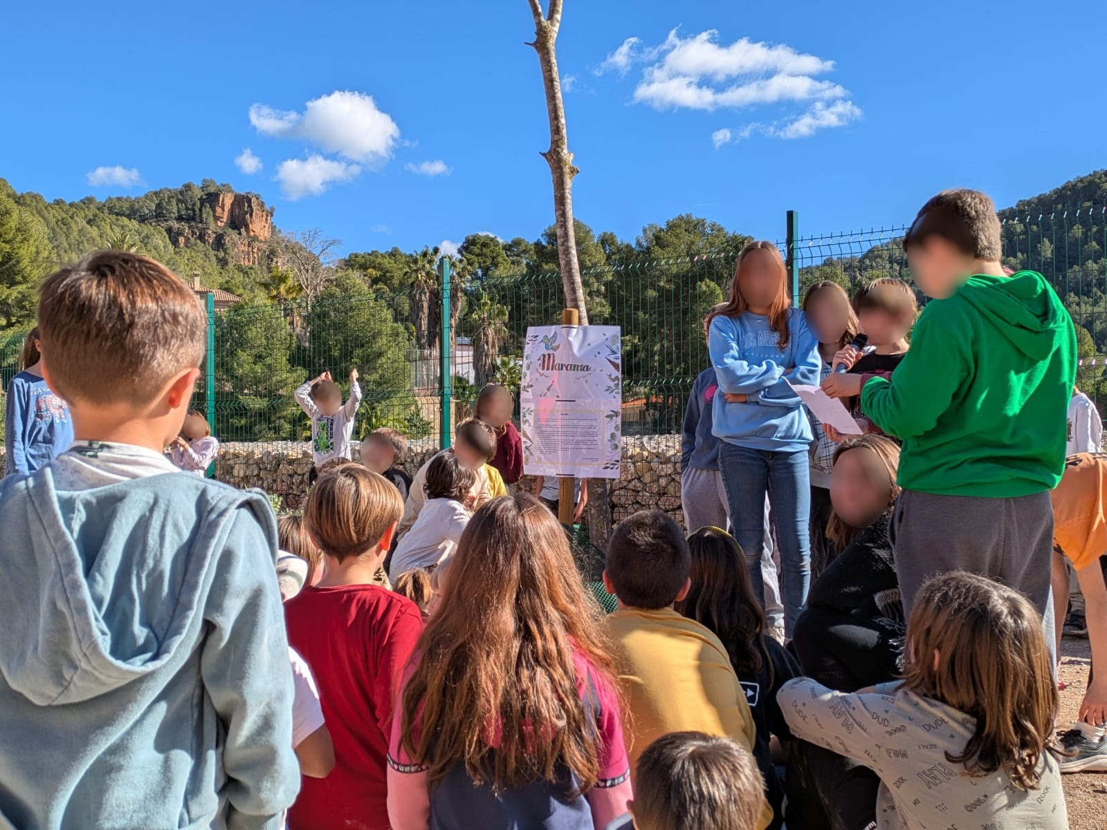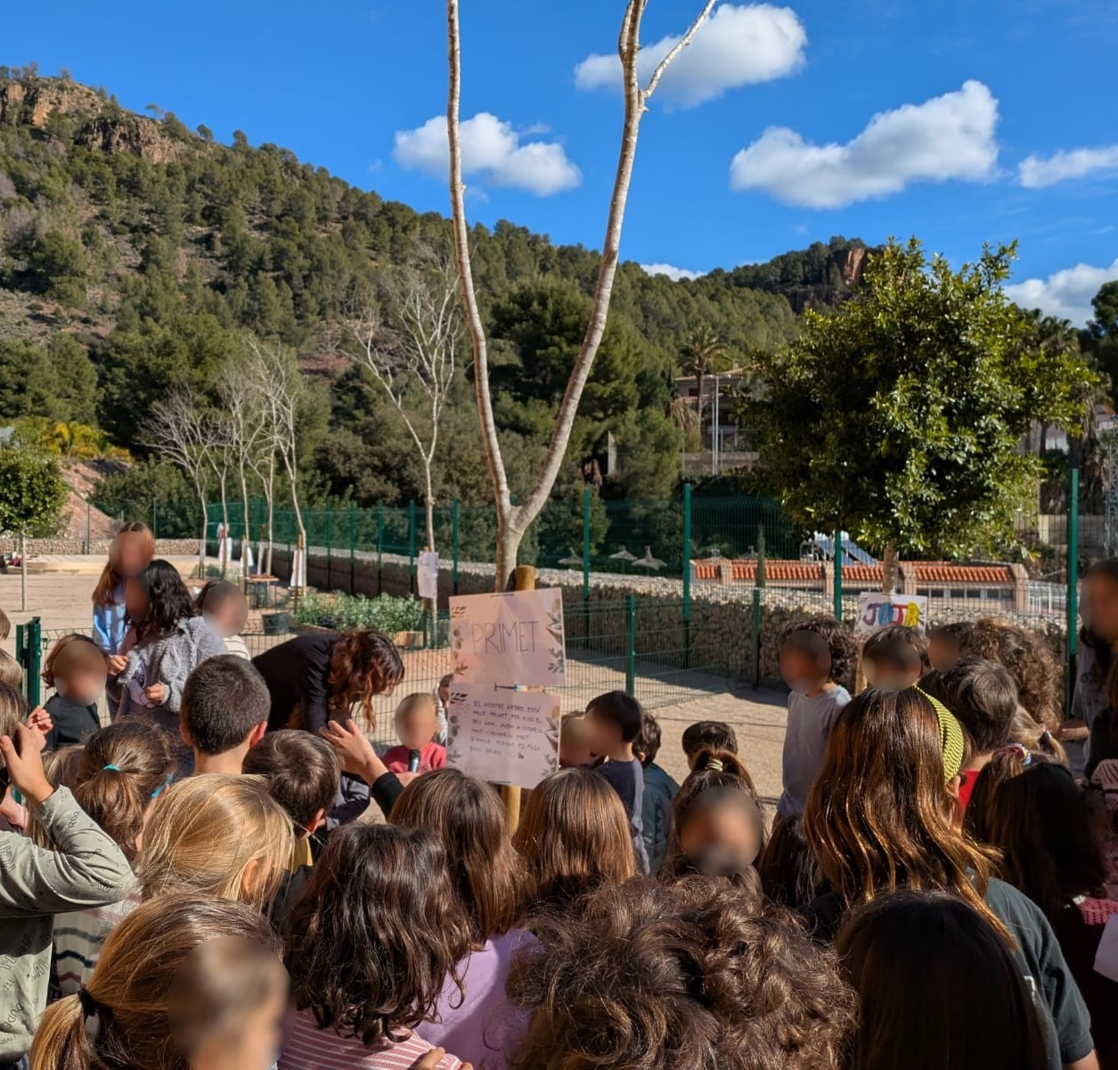 Al mediodía, ha tenido lugar el acto más entrañable. Así, miembros de cada clase han presentado los diferentes árboles (Joja, Primet, Bolet, Gel, Clarmiz, Natura, Llidó el Llegendari, Vida, El Guardià del Bosc y Marama) con explicaciones y narraciones de lo más originales que han llenado el patio de imaginación y que han entusiasmado a docentes y compañeros.